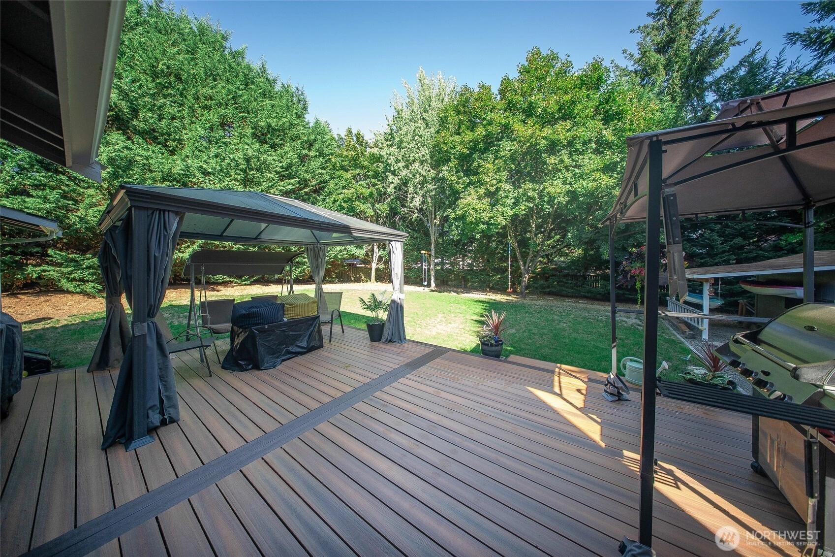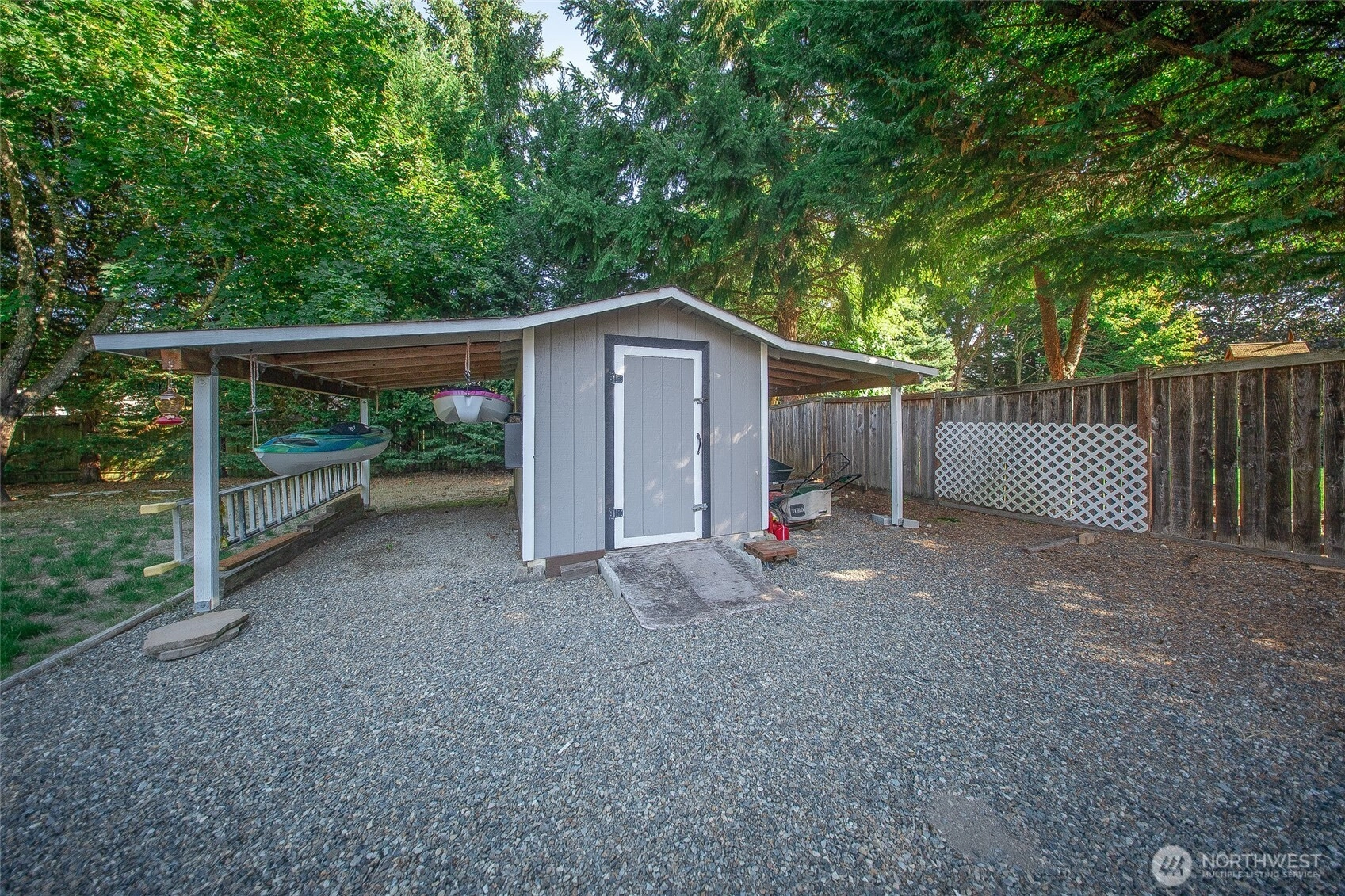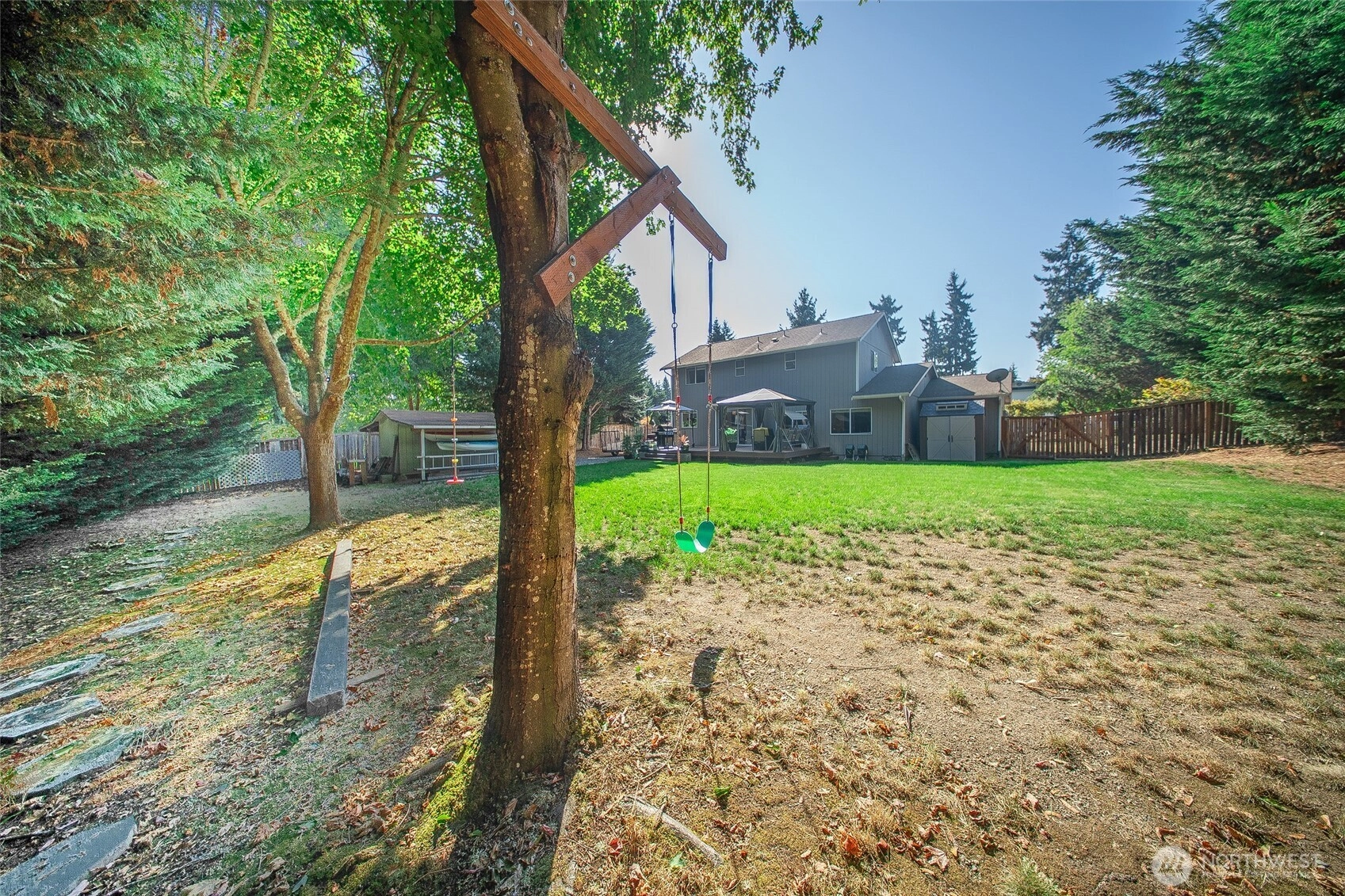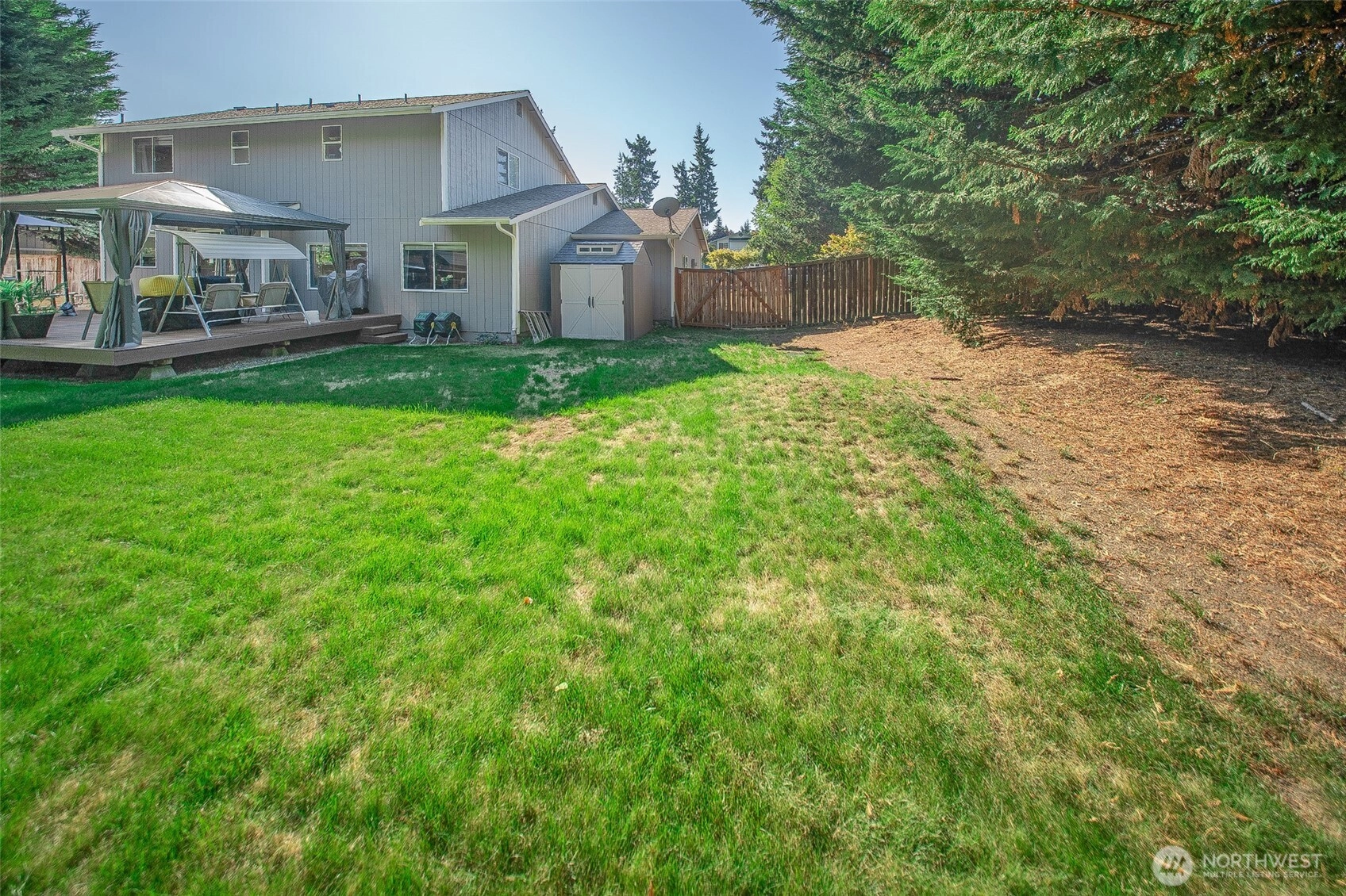 Lovely 3 bed, 2.5 bath home w/ 1,700+ sq ft on a quiet street in a well-kept neighborhood. Sitting on a 1/3+ acre lot, the fully fenced yard w/ a large gate, perfect for a boat, RV, or extra vehicles. 3-car garage w/ a versatile 3rd bay. Vaulted entry opens to a step-down living rm w/ newer hardwood flrs throughout. The updated kitchen boasts granite counters, stylish backsplash, & stainless appliances, flowing into an eating area w/ backyard access & a cozy family rm. Upstairs, find a master suite w/ full bath & walk-in closet, plus 2 spacious beds sharing a full bath. Outside, a large Timber Tech deck offers space for BBQs & furniture, w/sunny lawn, walk-in shed w/ covered storage, & a small mower shed. Perfect for privacy & entertaining!