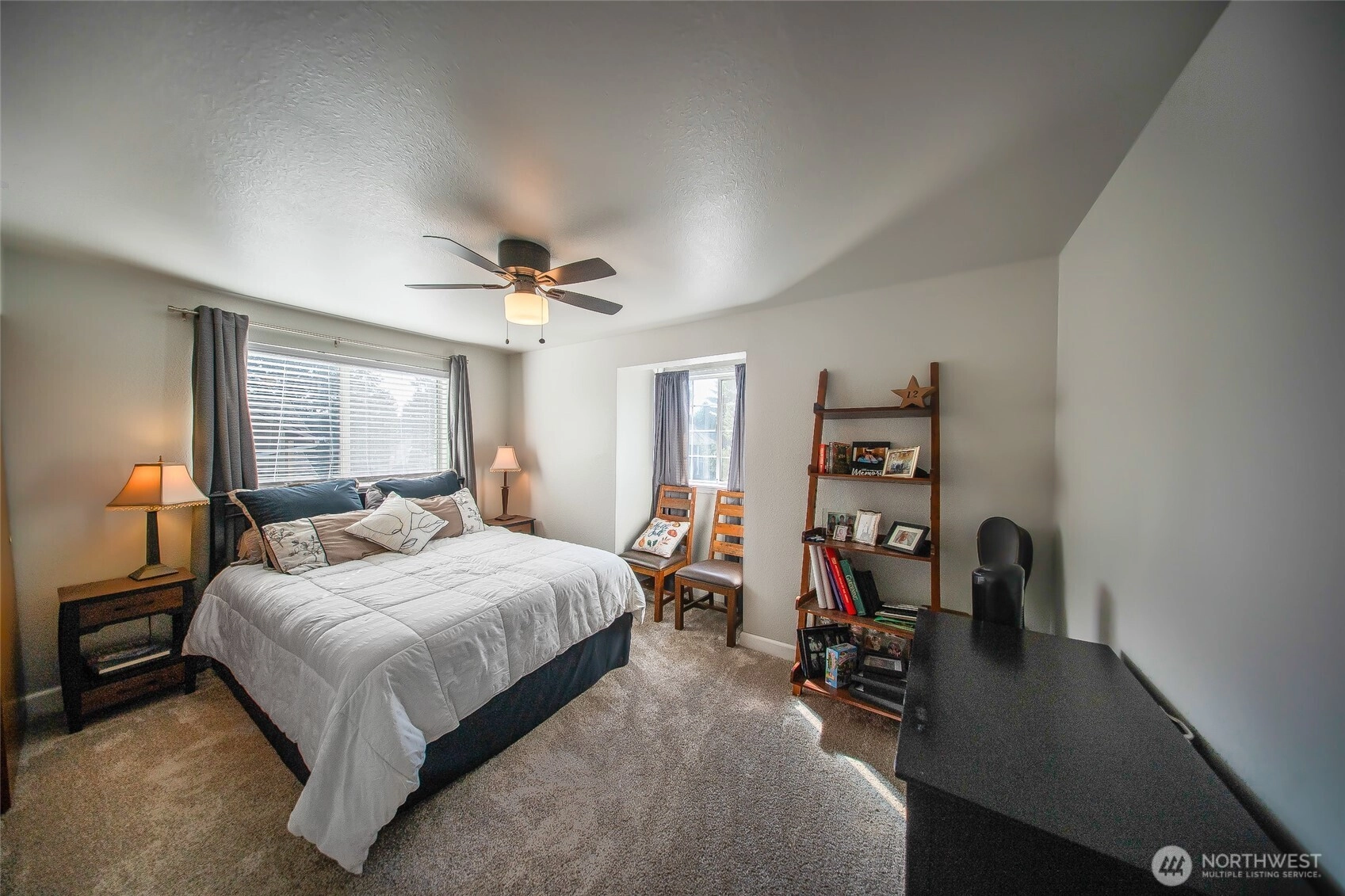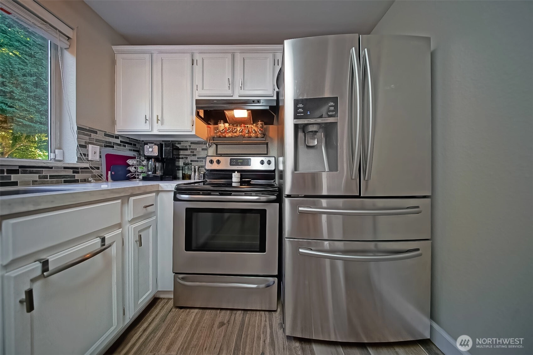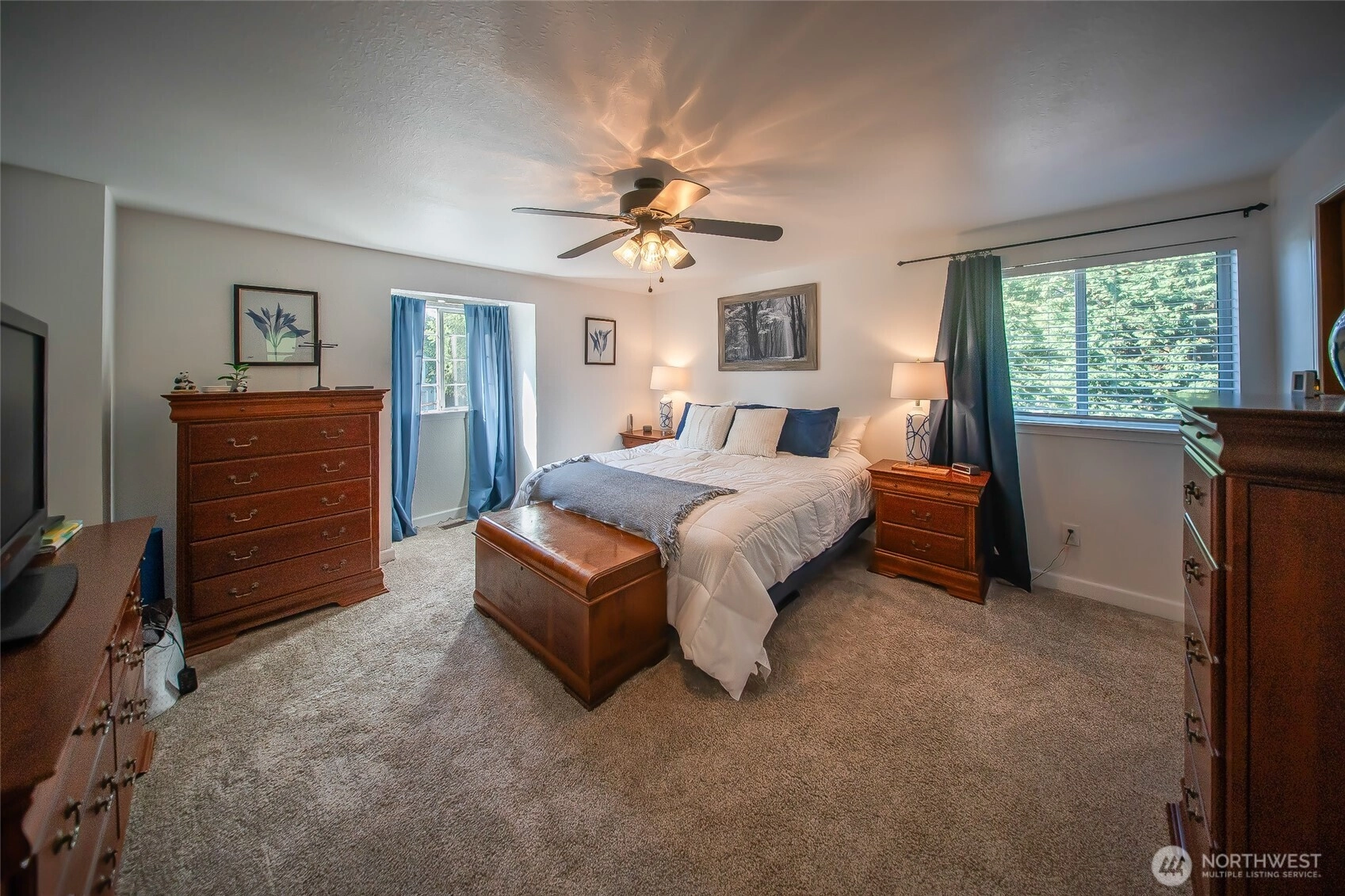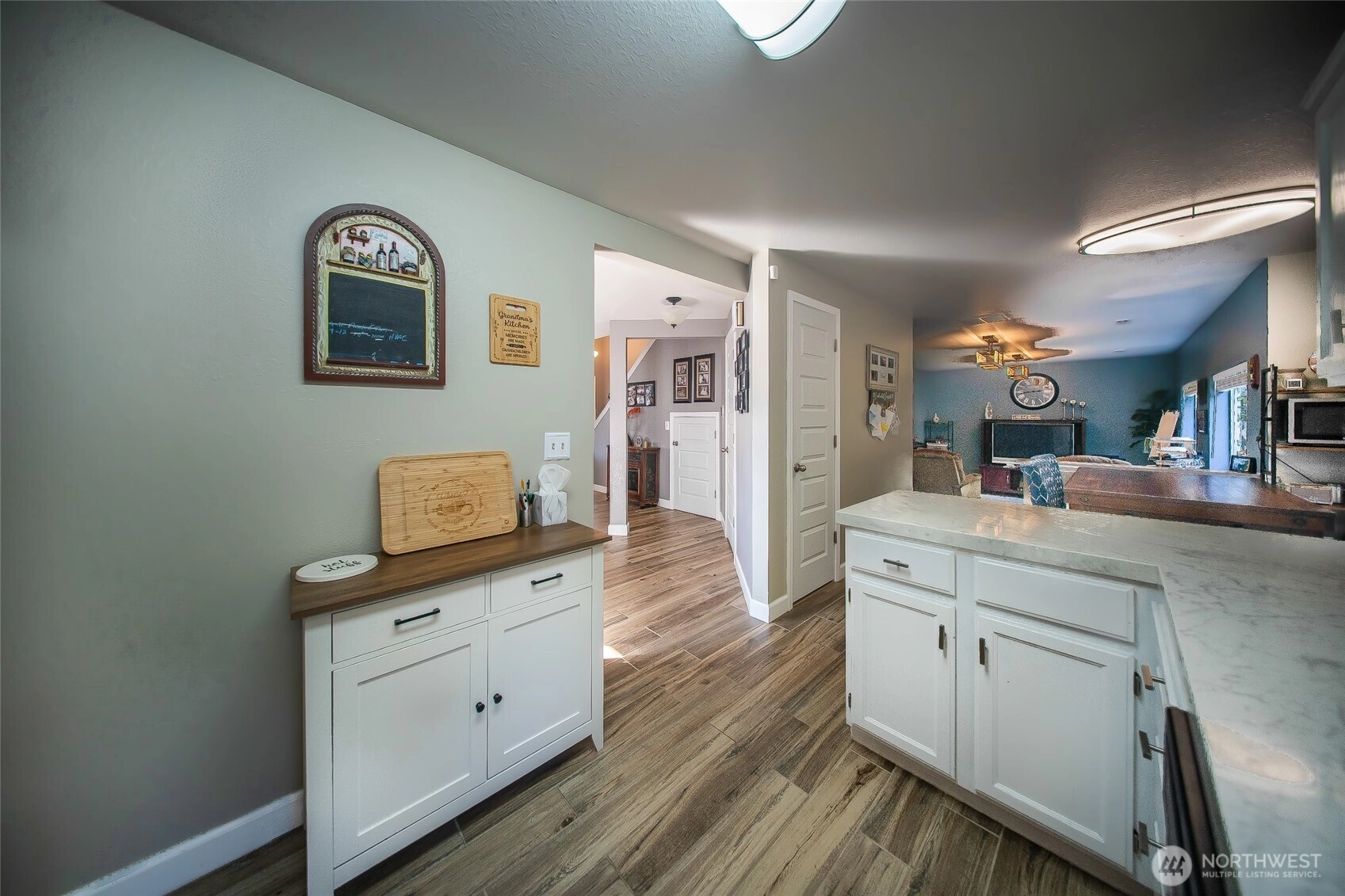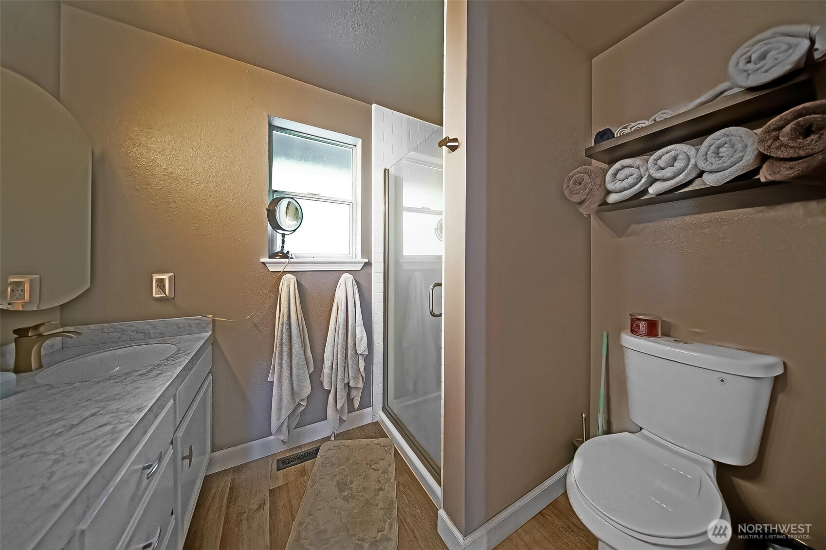 Lovely 3 bed, 2.5 bath home w/ 1,700+ sq ft on a quiet street in a well-kept neighborhood. Sitting on a 1/3+ acre lot, the fully fenced yard w/ a large gate, perfect for a boat, RV, or extra vehicles. 3-car garage w/ a versatile 3rd bay. Vaulted entry opens to a step-down living rm w/ newer hardwood flrs throughout. The updated kitchen boasts granite counters, stylish backsplash, & stainless appliances, flowing into an eating area w/ backyard access & a cozy family rm. Upstairs, find a master suite w/ full bath & walk-in closet, plus 2 spacious beds sharing a full bath. Outside, a large Timber Tech deck offers space for BBQs & furniture, w/sunny lawn, walk-in shed w/ covered storage, & a small mower shed. Perfect for privacy & entertaining!