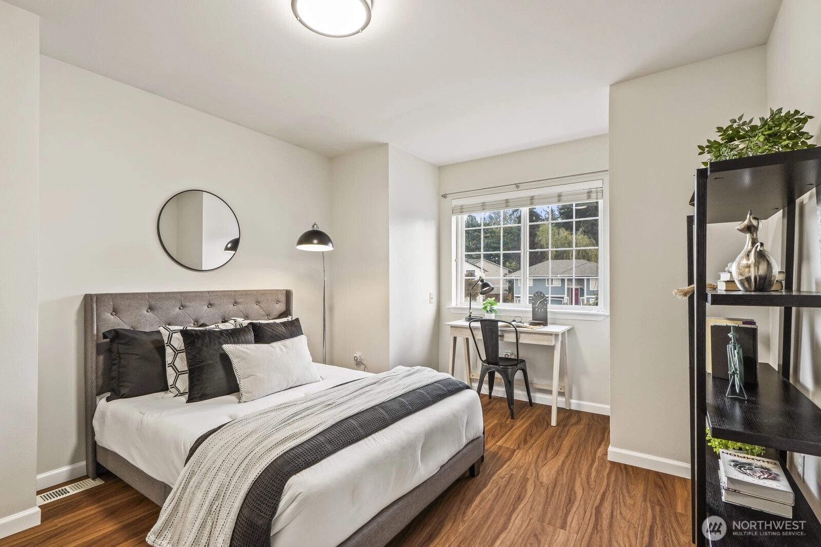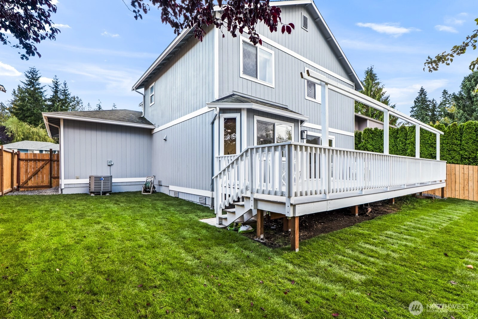 Better-than-new 3-bedroom, 2.5-bath home nestled on a private cul-de-sac, with a spacious 3-car garage with new openers. Recently renovated with fresh paint, new upstairs flooring, trim, modern bathroom sinks, faucets, mirrors, lighting, and sleek quartz countertops. The gourmet kitchen features upgraded appliances, and a convenient eating bar flows into a bright, open-concept living area. Stay cozy with two gas fireplaces (one in the primary bedroom), a newer gas furnace, heat pump/AC, and water heater. Step through oversized sliders to a large new composite deck with stairs at both ends, overlooking fresh landscaping, new grass, and new fencing around the entire yard. Enjoy easy access to shopping, dining, and schools. Move in and enjoy!