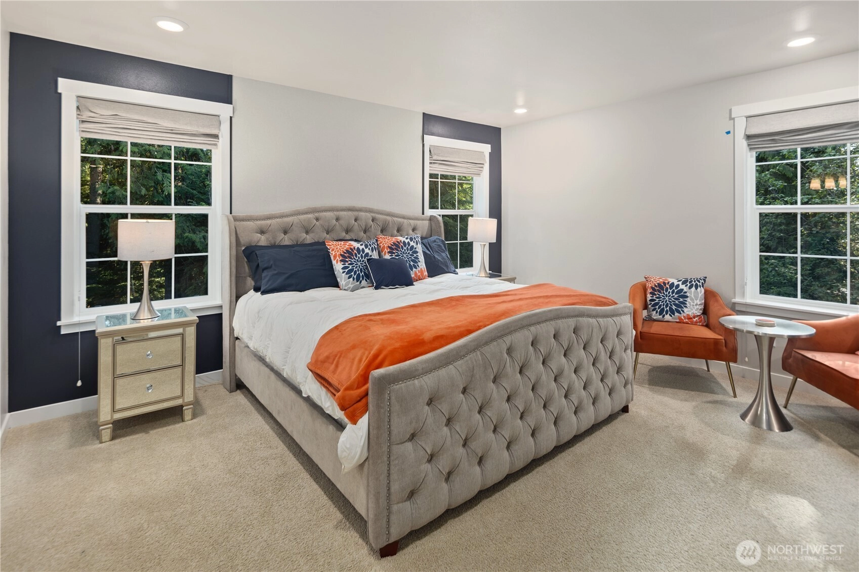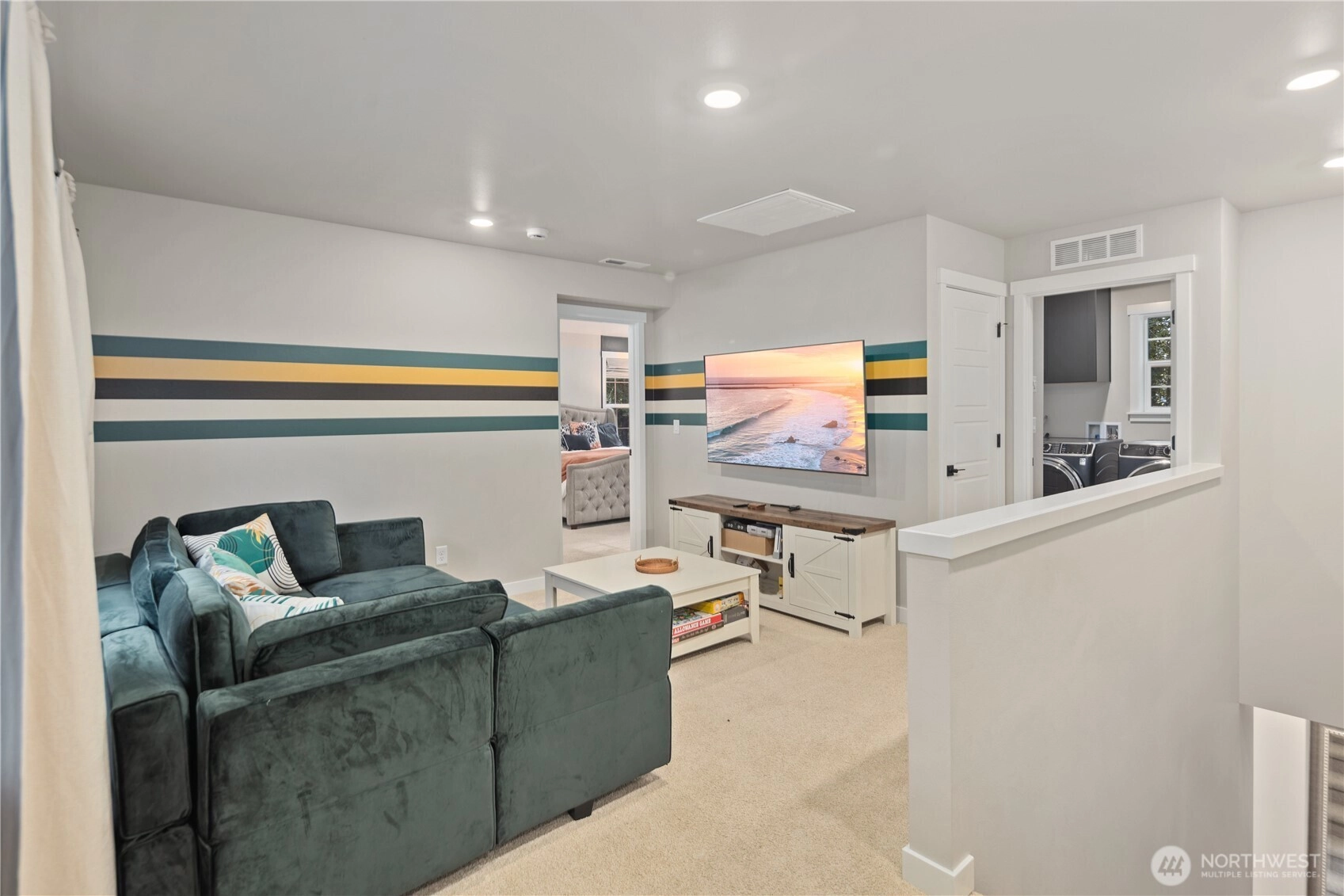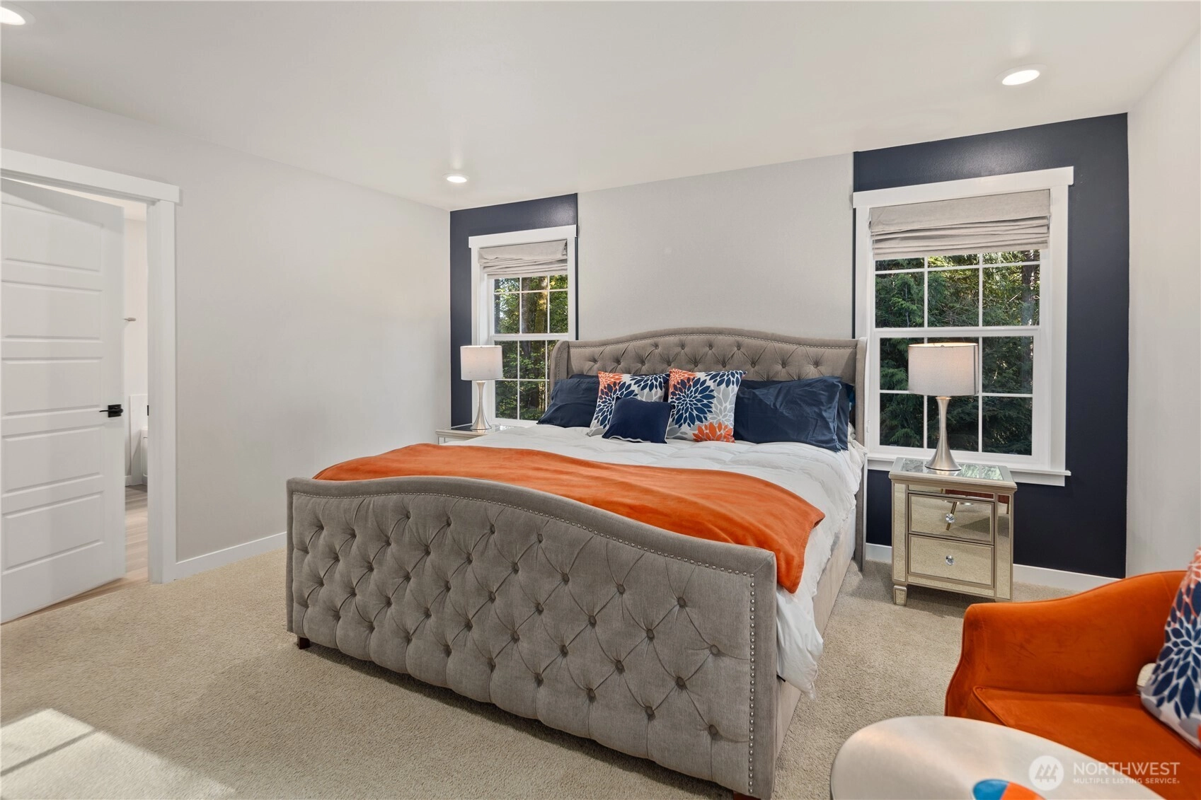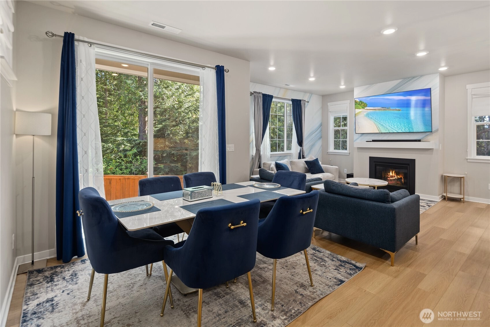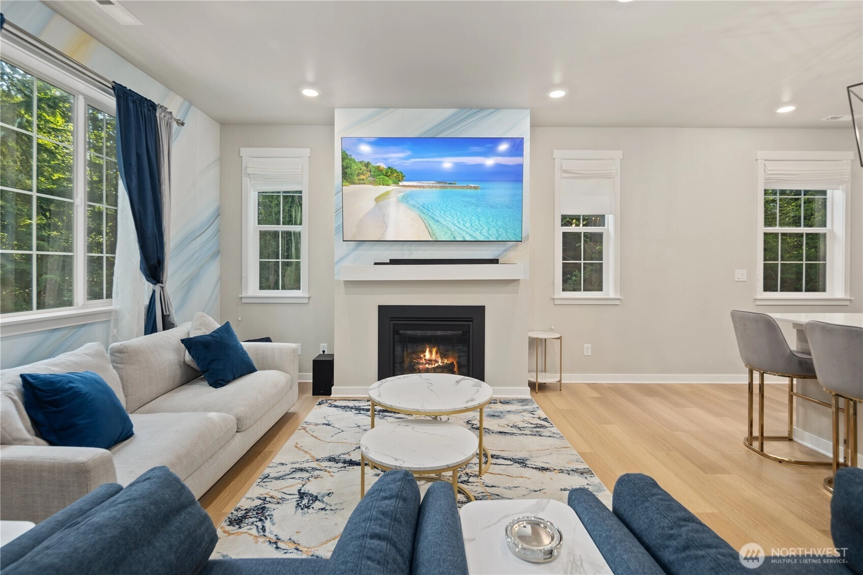 This stunning 'better than new' four-bedroom, 2.5-bathroom home in Duvall is located at the end of a cul-de-sac, offering privacy and functionality. The home boasts elevated ceilings that create a sense of openness and airiness, complementing the gourmet kitchen and cozy living area. The layout includes a loft separating the primary suite from other bedrooms, allowing for a private retreat. Unique upgrades enhance its appeal, including Roman shades, designer wallpaper, built-in closets, an EV charging station, and an in-duct air purifier for excellent air quality. The partially insulated garage adds versatility, offering space for a gym or workshop. This home is move-in ready—simply unpack and enjoy your new space. Welcome home!