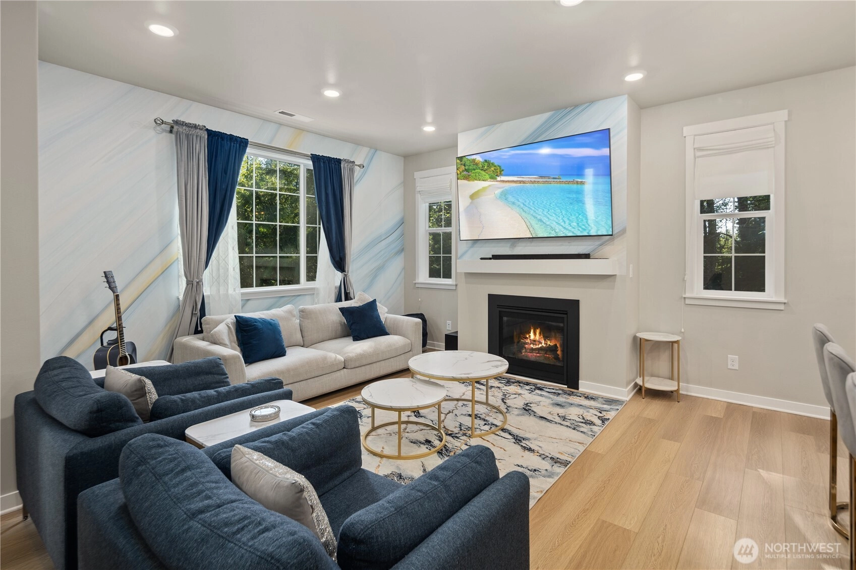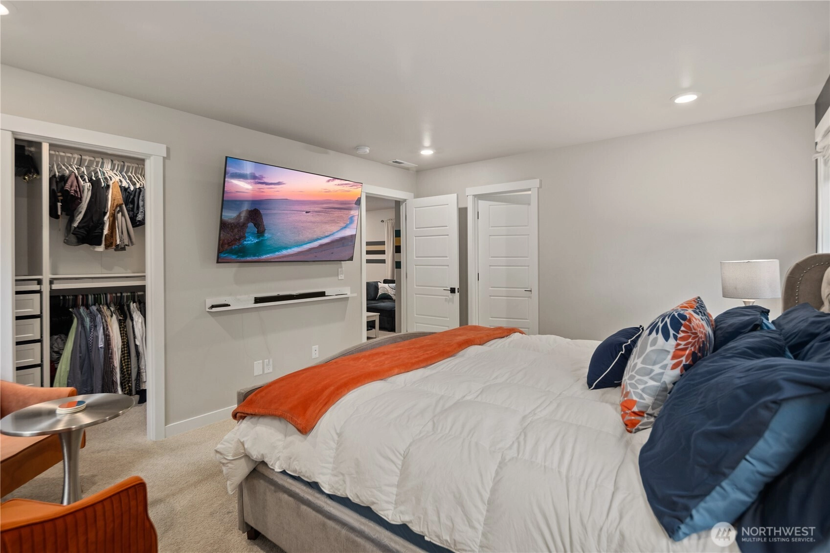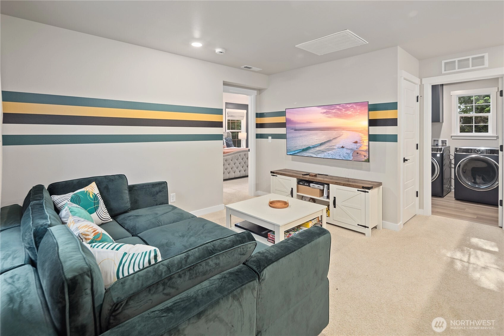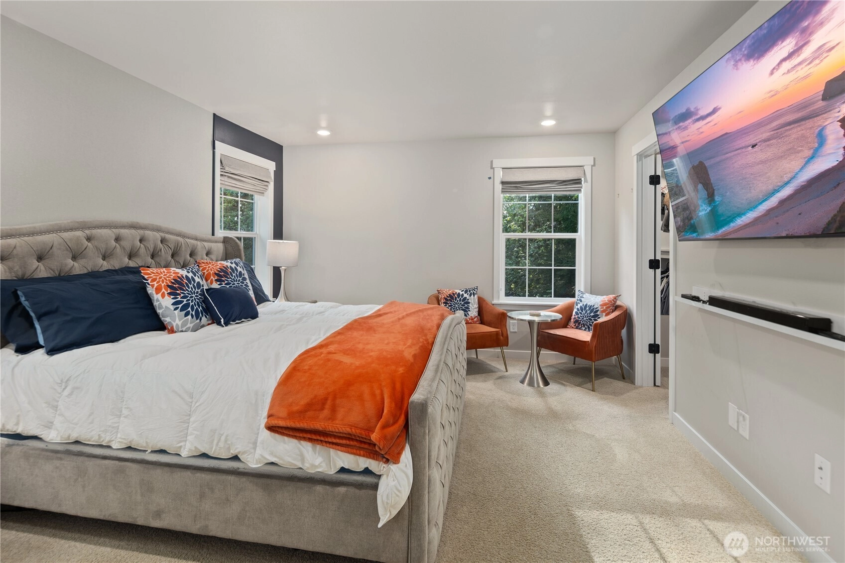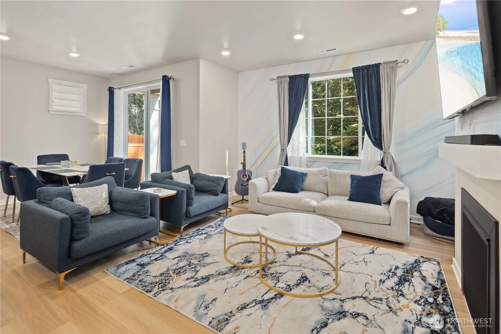This stunning 'better than new' four-bedroom, 2.5-bathroom home in Duvall is located at the end of a cul-de-sac, offering privacy and functionality. The home boasts elevated ceilings that create a sense of openness and airiness, complementing the gourmet kitchen and cozy living area. The layout includes a loft separating the primary suite from other bedrooms, allowing for a private retreat. Unique upgrades enhance its appeal, including Roman shades, designer wallpaper, built-in closets, an EV charging station, and an in-duct air purifier for excellent air quality. The partially insulated garage adds versatility, offering space for a gym or workshop. This home is move-in ready—simply unpack and enjoy your new space. Welcome home!