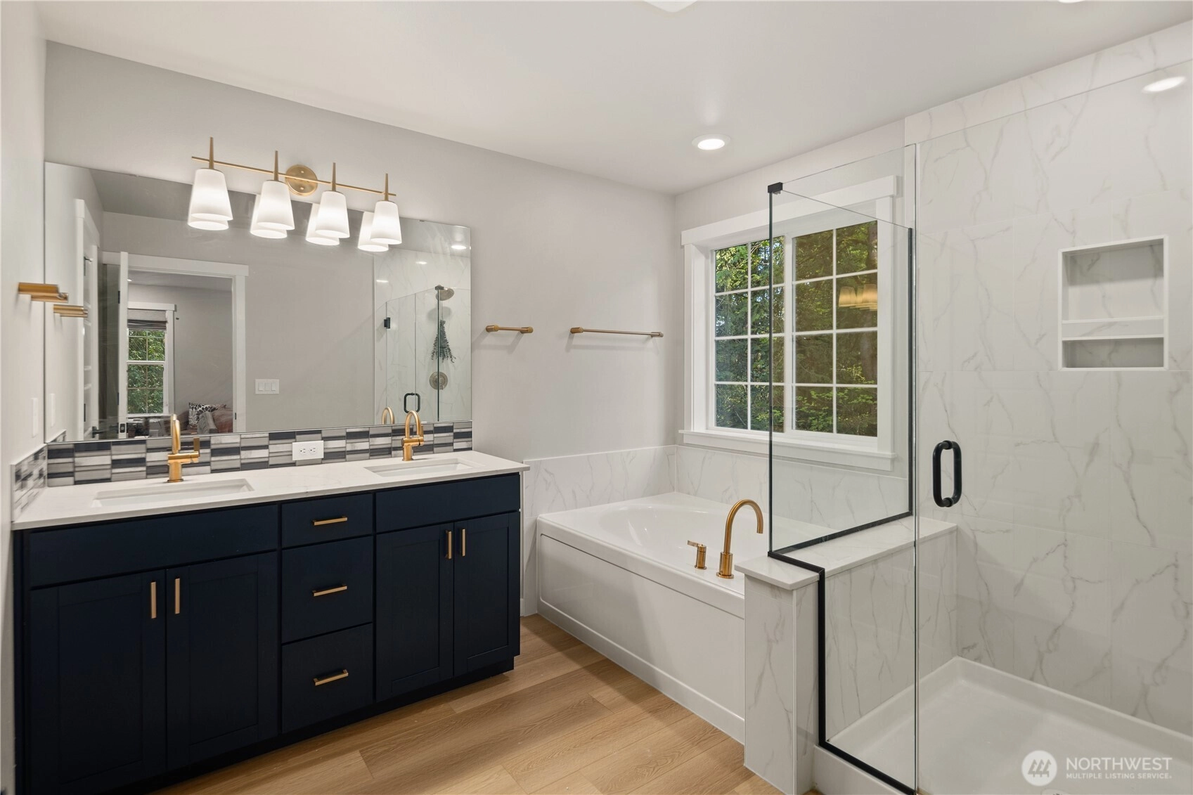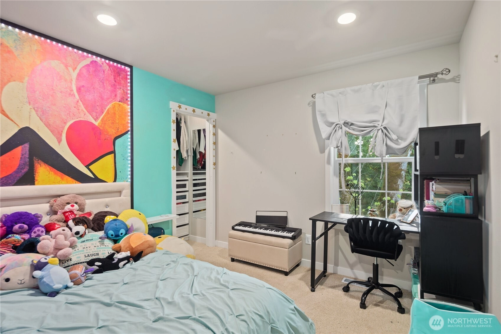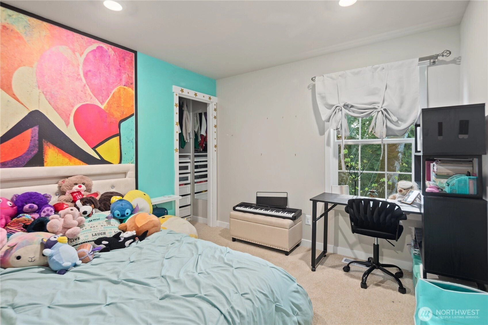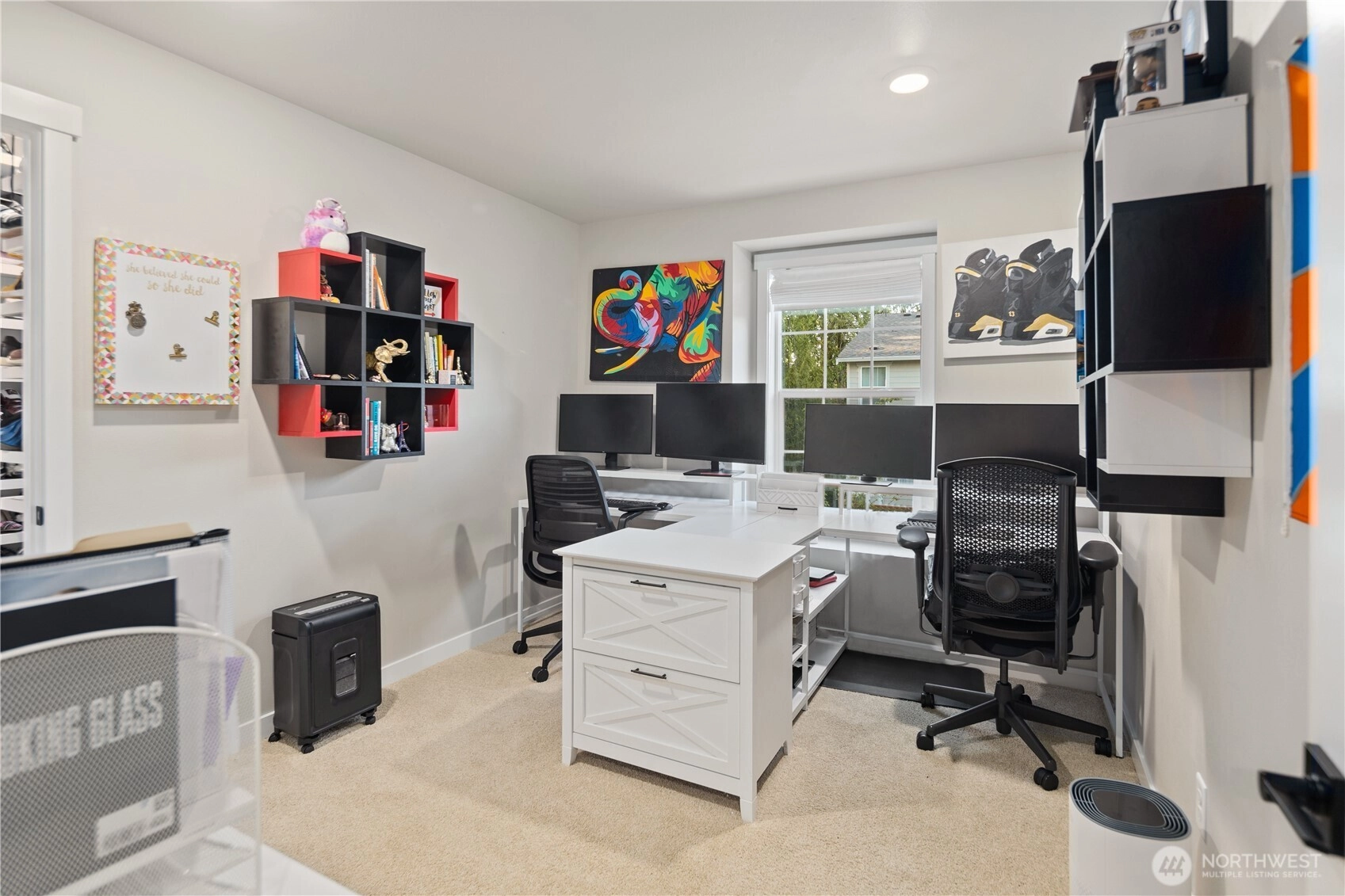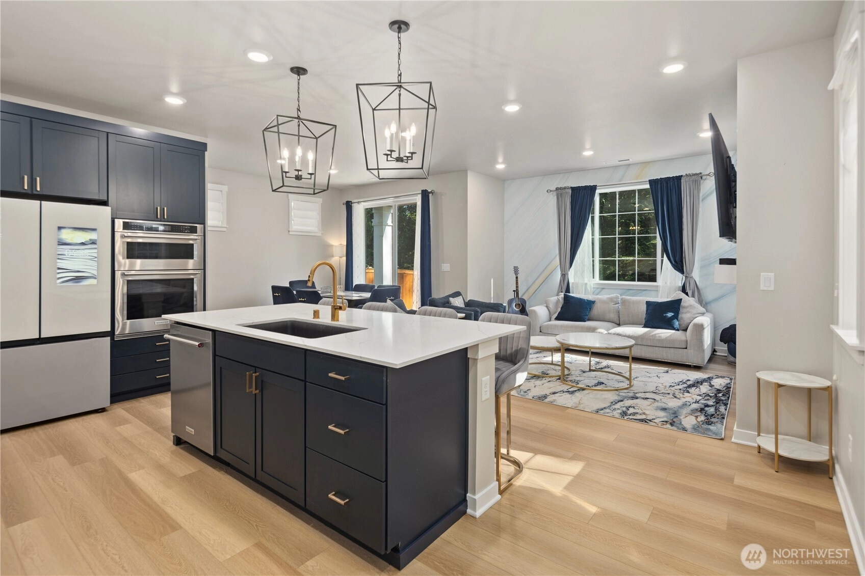 This stunning 'better than new' four-bedroom, 2.5-bathroom home in Duvall is located at the end of a cul-de-sac, offering privacy and functionality. The home boasts elevated ceilings that create a sense of openness and airiness, complementing the gourmet kitchen and cozy living area. The layout includes a loft separating the primary suite from other bedrooms, allowing for a private retreat. Unique upgrades enhance its appeal, including Roman shades, designer wallpaper, built-in closets, an EV charging station, and an in-duct air purifier for excellent air quality. The partially insulated garage adds versatility, offering space for a gym or workshop. This home is move-in ready—simply unpack and enjoy your new space. Welcome home!