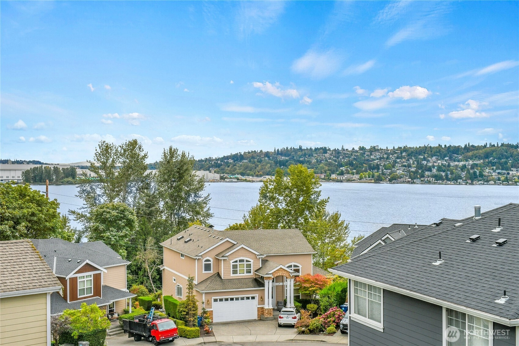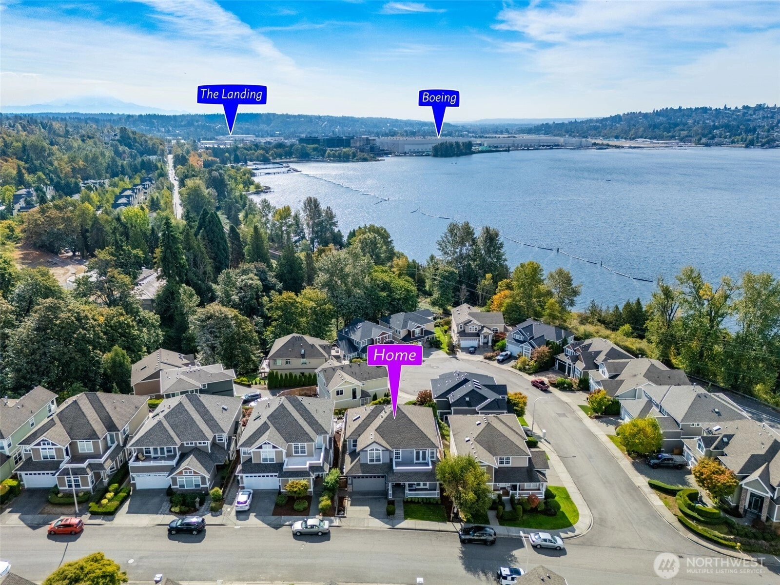 Beautifully updated 4-bedroom, 2.5-bath home, ideally situated in one of the area's most sought-after communities. Generous in scale & thoughtfully designed, featuring a spacious primary ensuite complete w/two walk-in closets & private bath. Recent upgrades include elegant luxury vinyl plank flooring, plush new carpet, fresh interior paint, & a suite of modern appliances tailored for the epicurean chef. Sun-drenched south-facing orientation offers views of Lake Washington creating a serene backdrop for everyday living. Enjoy access to The Landing’s vibrant shopping & dining scene, & the natural beauty of Coulon Beach Park—featuring boat launches, walking trails, tennis courts. Easy access to I-405, minutes to Bellevue, Renton, & Seattle.