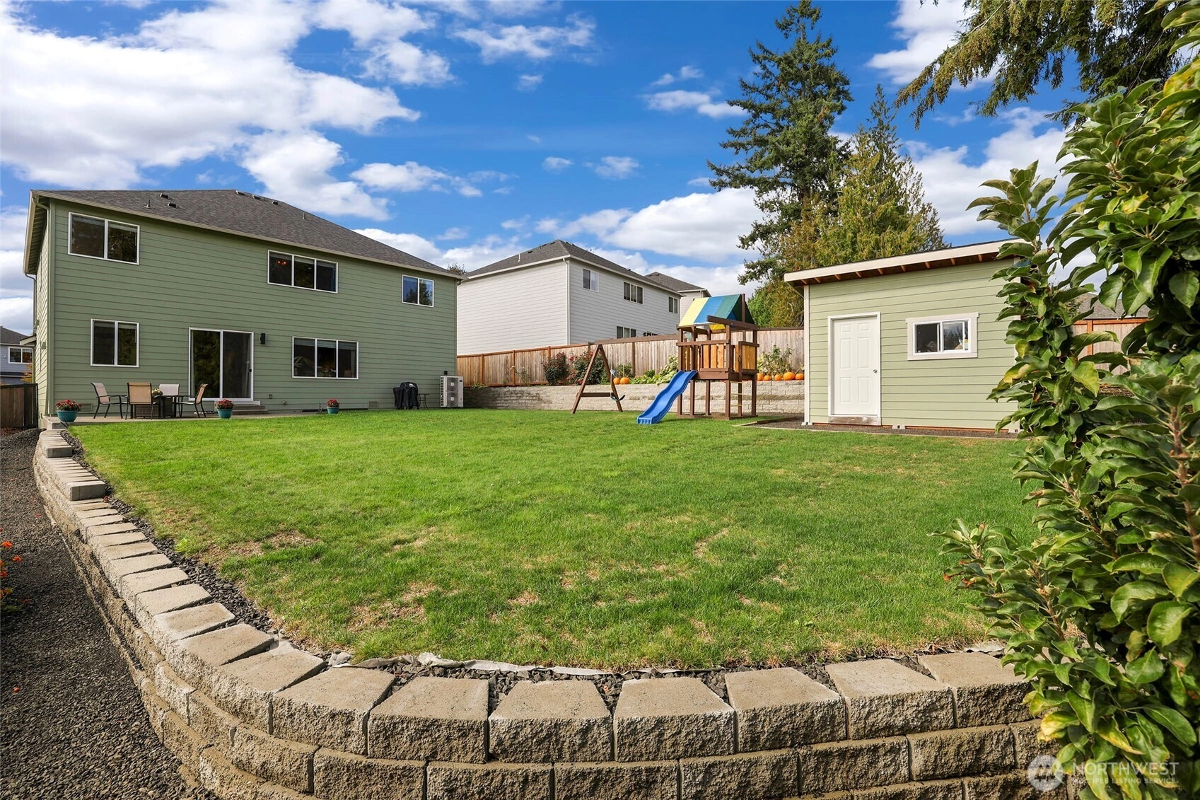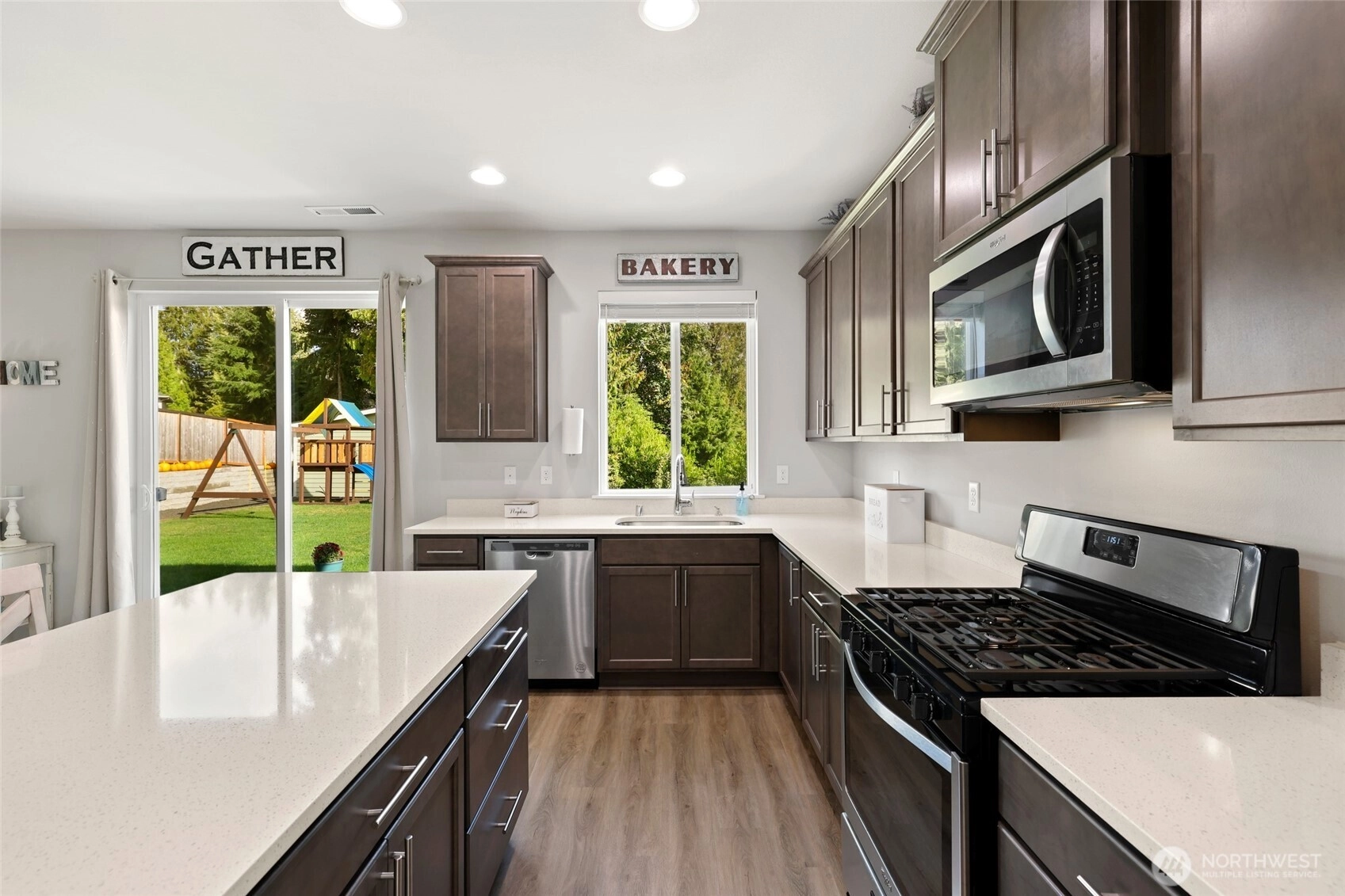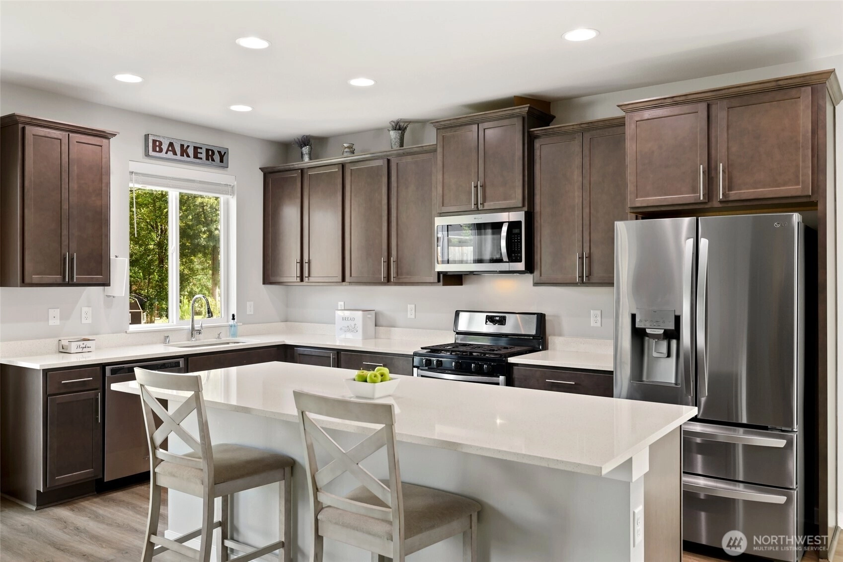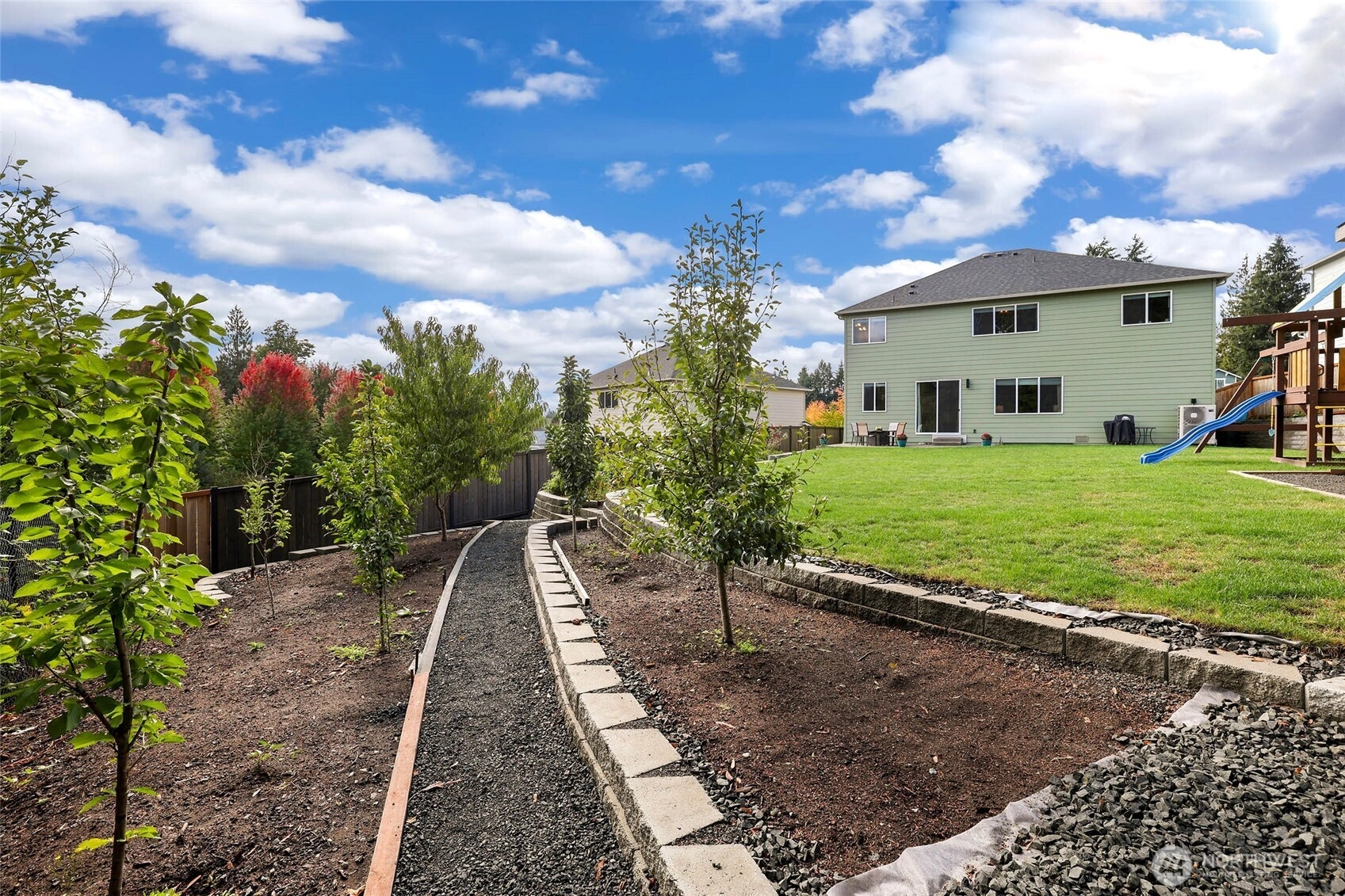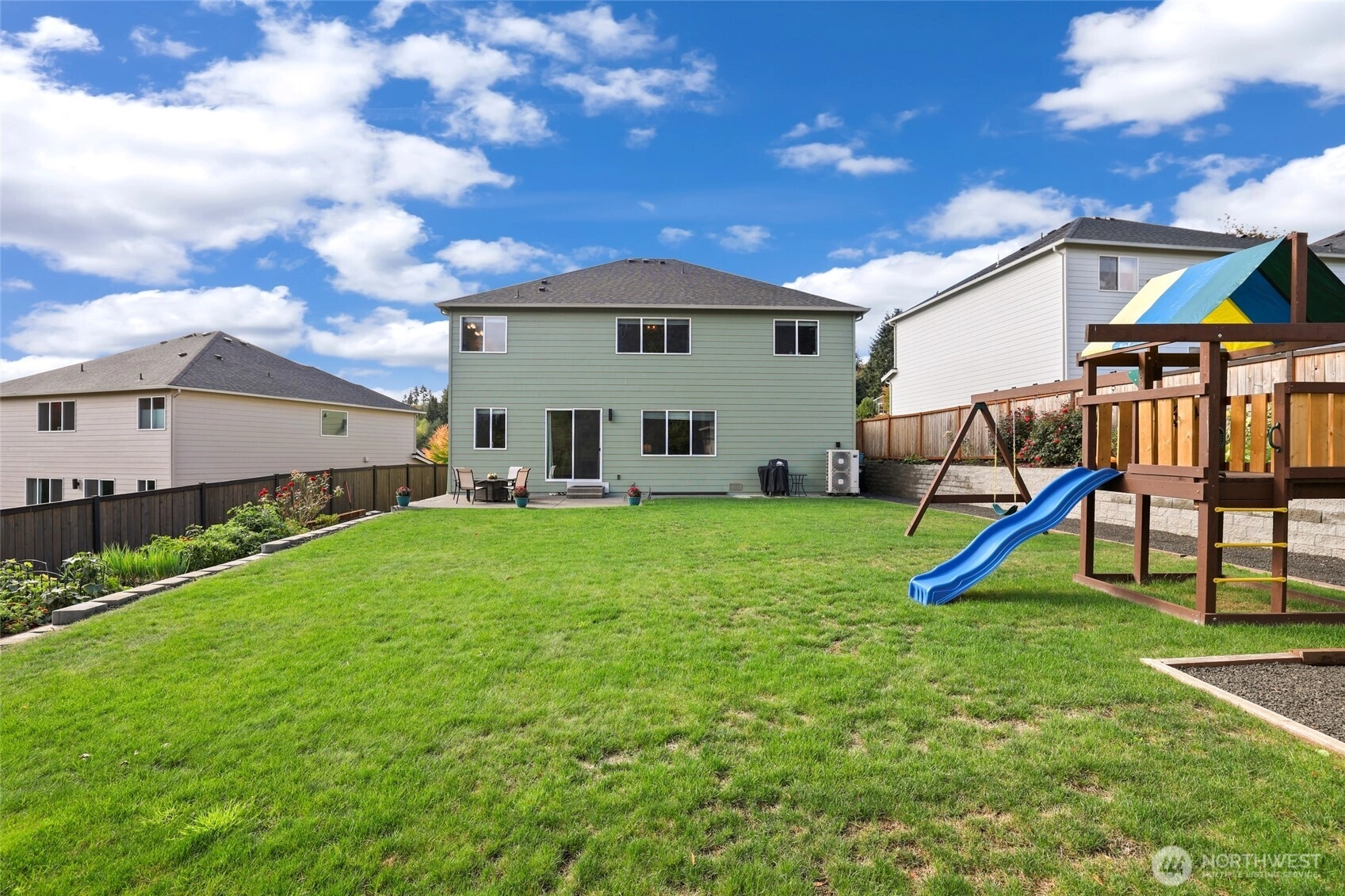 Located near Costco, Fred Meyer, the Tumwater Craft District, and the Deschutes River, this spacious 4-bedroom, 2.5-bath home offers close to 2,700 sq ft of comfortable living. The main level features a formal dining area with a convenient butler’s pantry, a chef’s kitchen with quartz counters and an oversized island, a large family room, and a powder bath. Upstairs, the primary suite boasts a 5-piece ensuite and walk-in closet, complemented by three additional bedrooms, a bonus room, laundry, and a full guest bath. The backyard is completely landscaped with a large patio, shed, fruit trees and plenty of space for gardening. A 3-car tandem garage and energy efficient heat pump with cooling complete this well-appointed home.