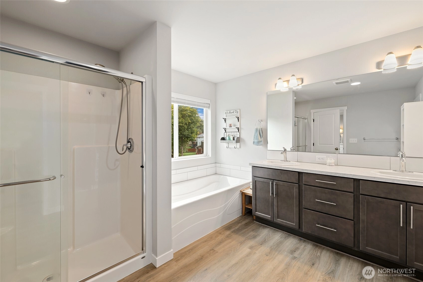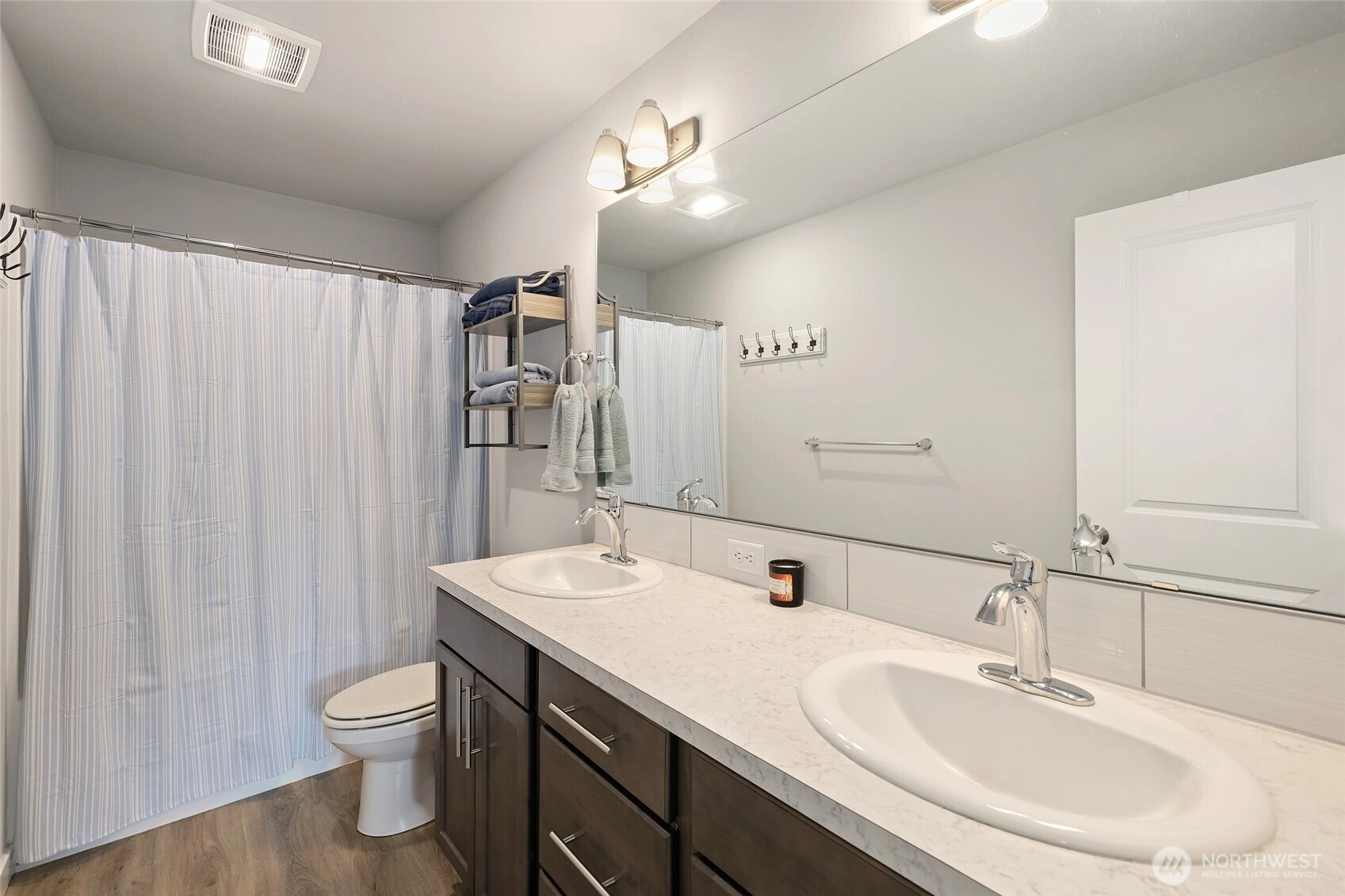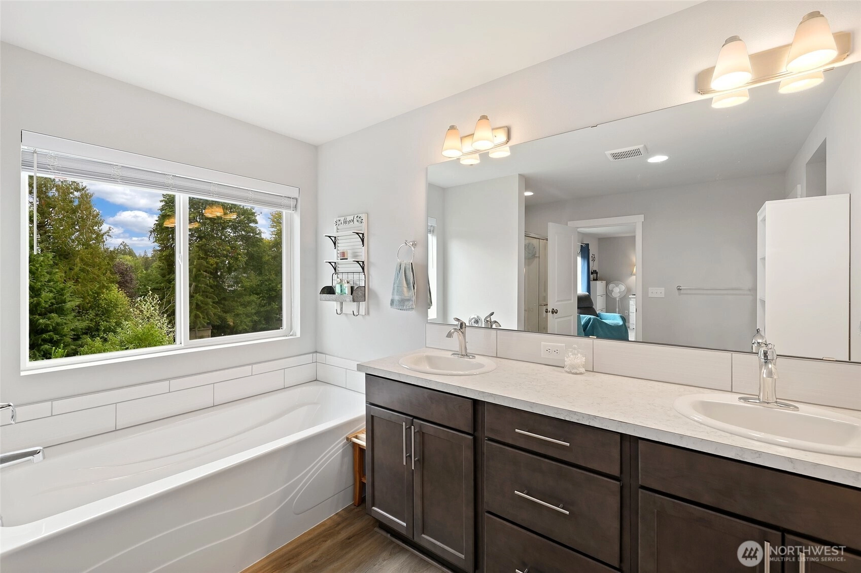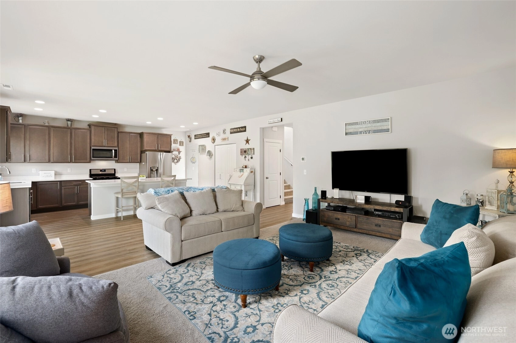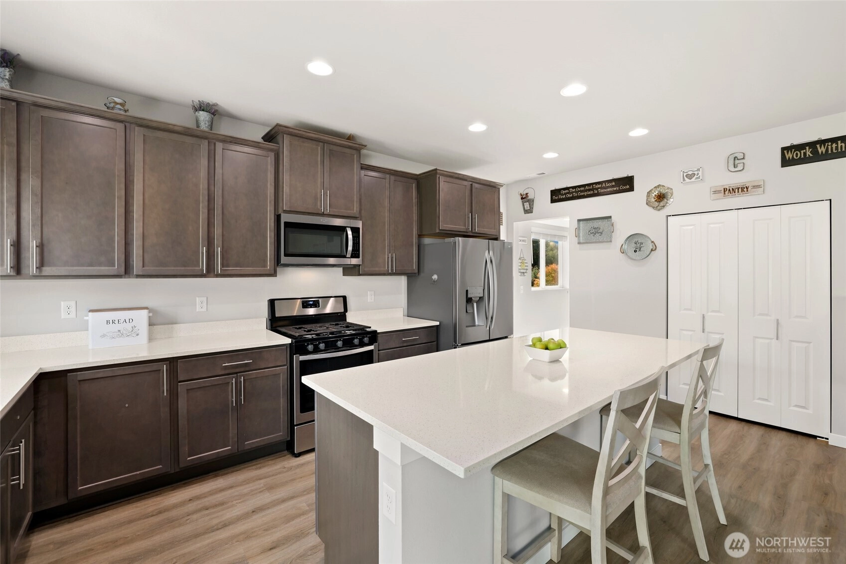 Located near Costco, Fred Meyer, the Tumwater Craft District, and the Deschutes River, this spacious 4-bedroom, 2.5-bath home offers close to 2,700 sq ft of comfortable living. The main level features a formal dining area with a convenient butler’s pantry, a chef’s kitchen with quartz counters and an oversized island, a large family room, and a powder bath. Upstairs, the primary suite boasts a 5-piece ensuite and walk-in closet, complemented by three additional bedrooms, a bonus room, laundry, and a full guest bath. The backyard is completely landscaped with a large patio, shed, fruit trees and plenty of space for gardening. A 3-car tandem garage and energy efficient heat pump with cooling complete this well-appointed home.