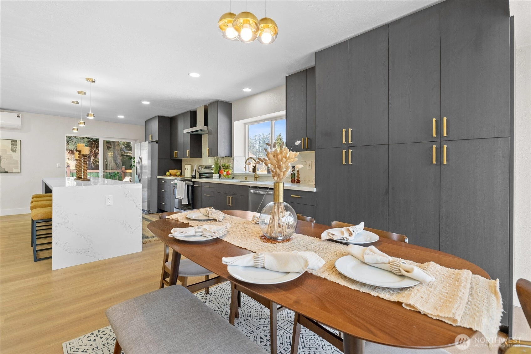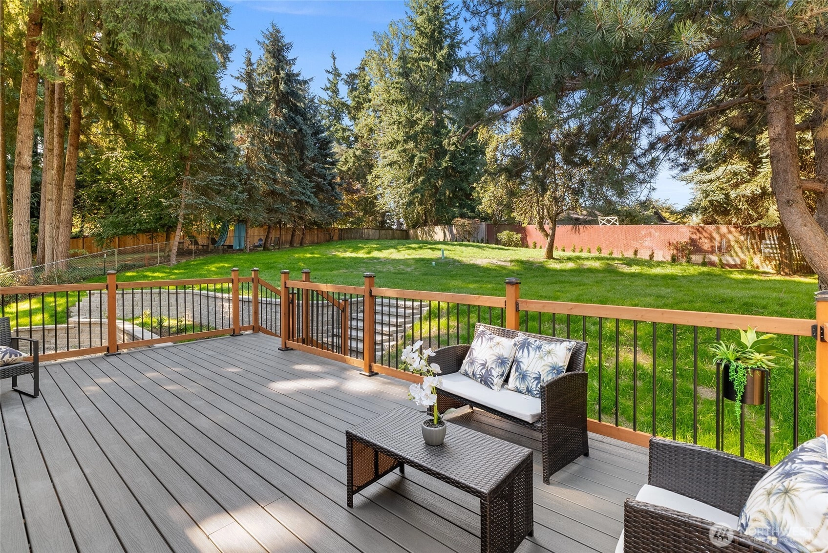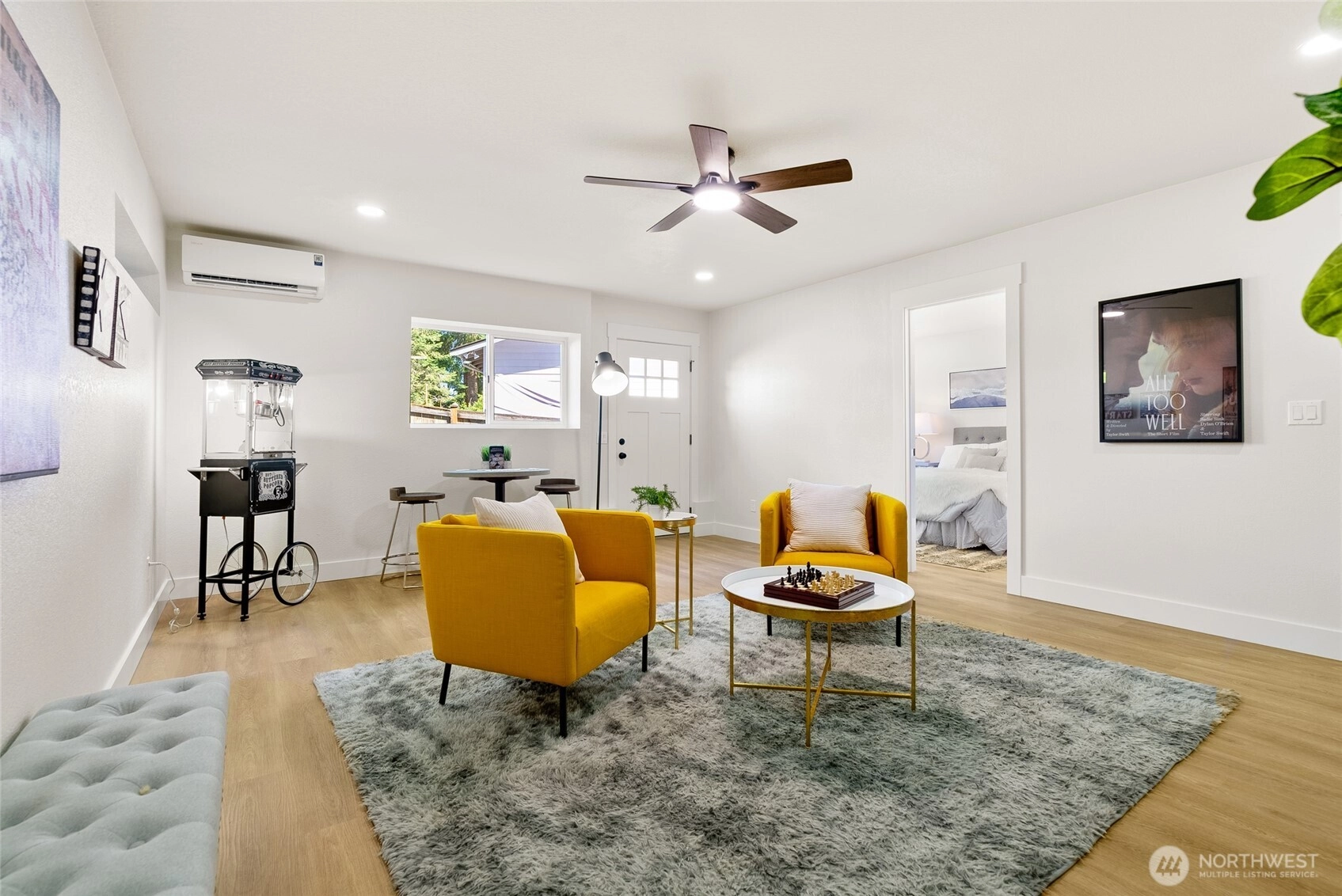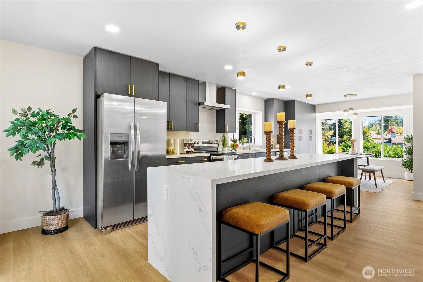 FULLY REMODELED Bothell retreat in the award-winning Northshore School District. This 3-bedroom, 2.75-bath split-level on a third of an acre offers modern comfort and flexible living. The main level features a remodeled kitchen with quartz counters, stainless appliances, sleek cabinetry, and an open living area with custom entertainment center, office/den and electric fireplace. The bay-windowed primary suite includes a walk-in tile shower and stylish finishes. The lower level provides a second living area with fireplace, bedroom, and laundry. Updates include remodeled baths, luxury vinyl flooring, fresh paint, new trim, upgraded heating, new A/C, and brand-new septic with warranty. Pre-inspected, move-in ready, includes a home warranty.