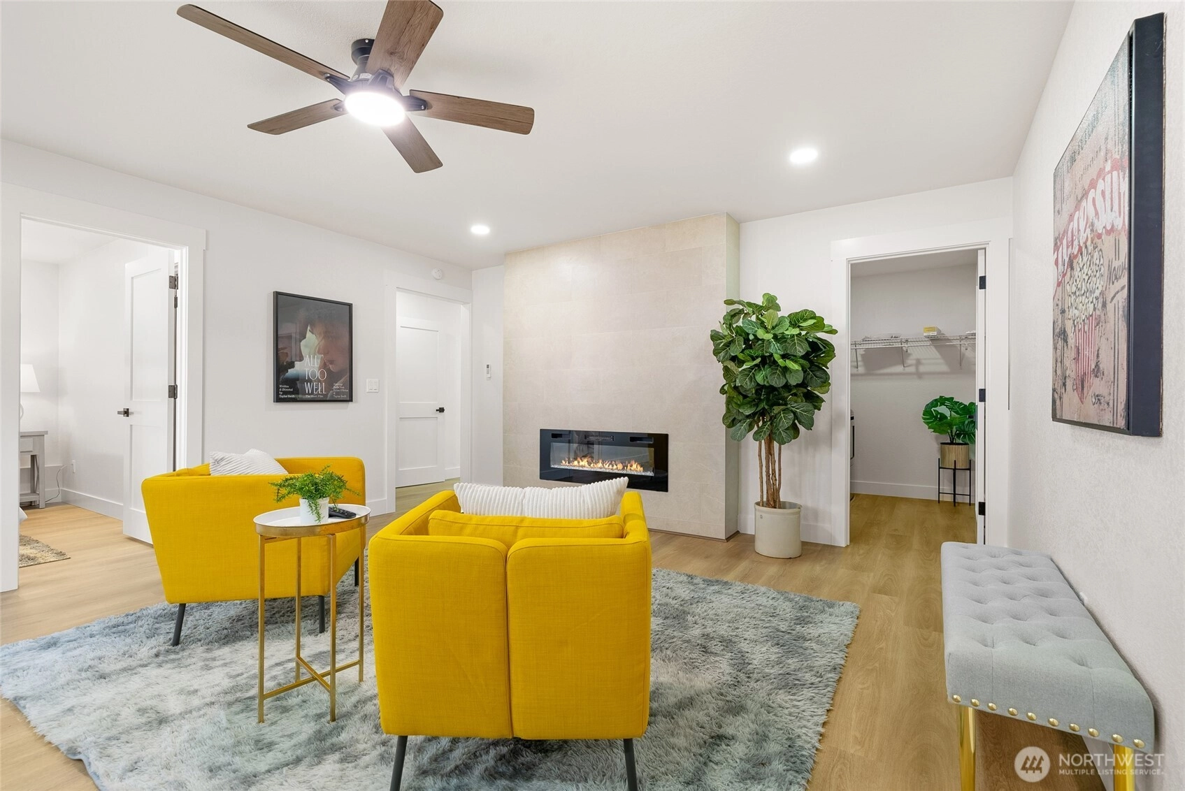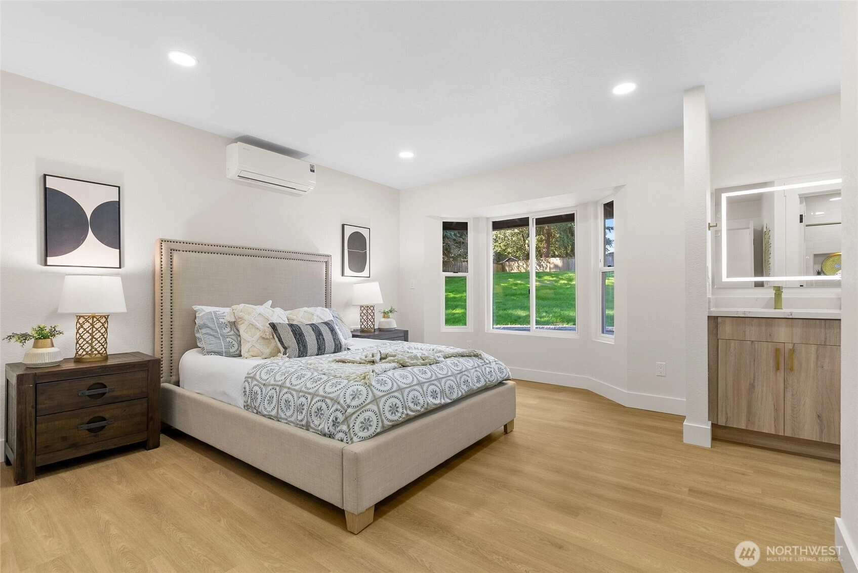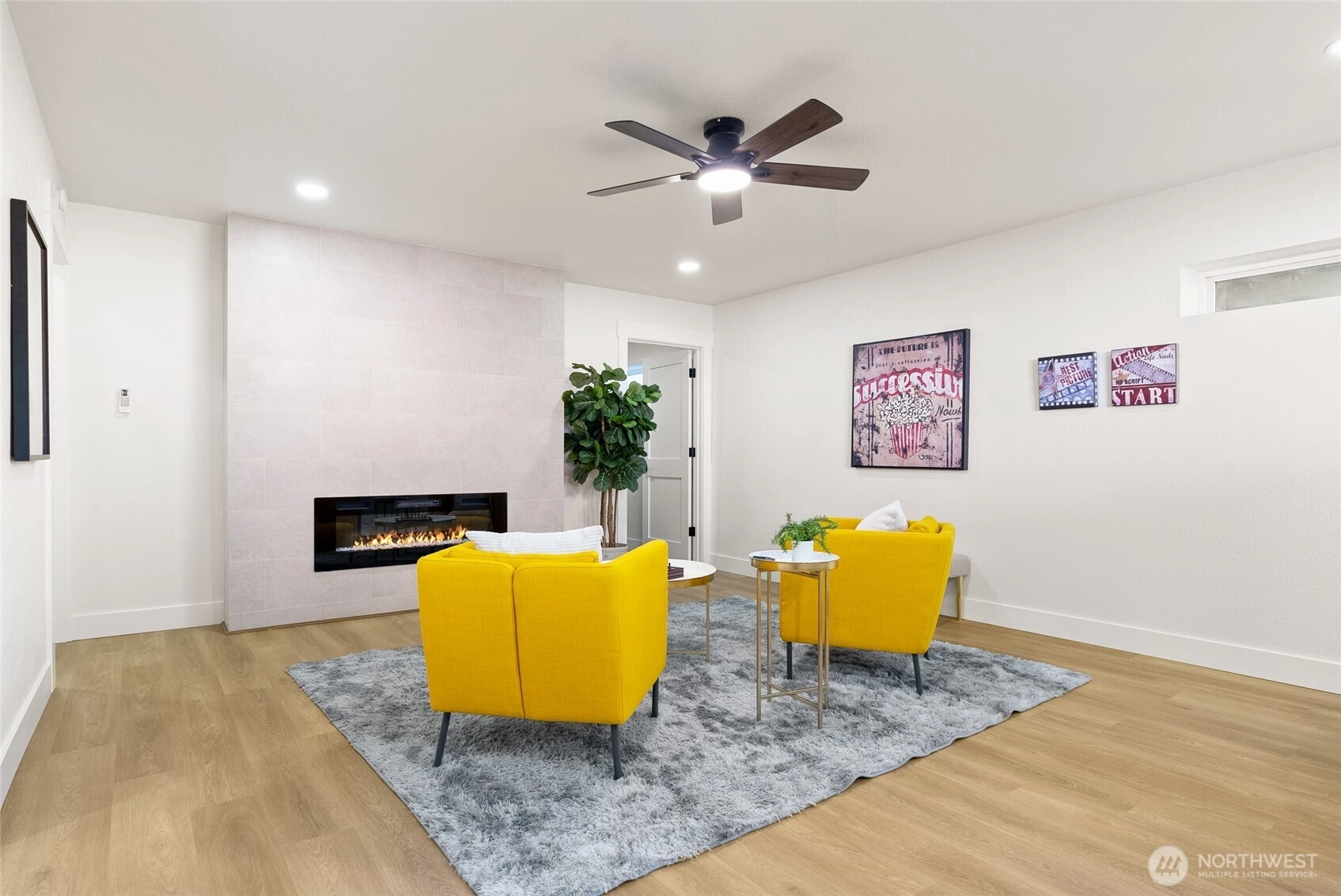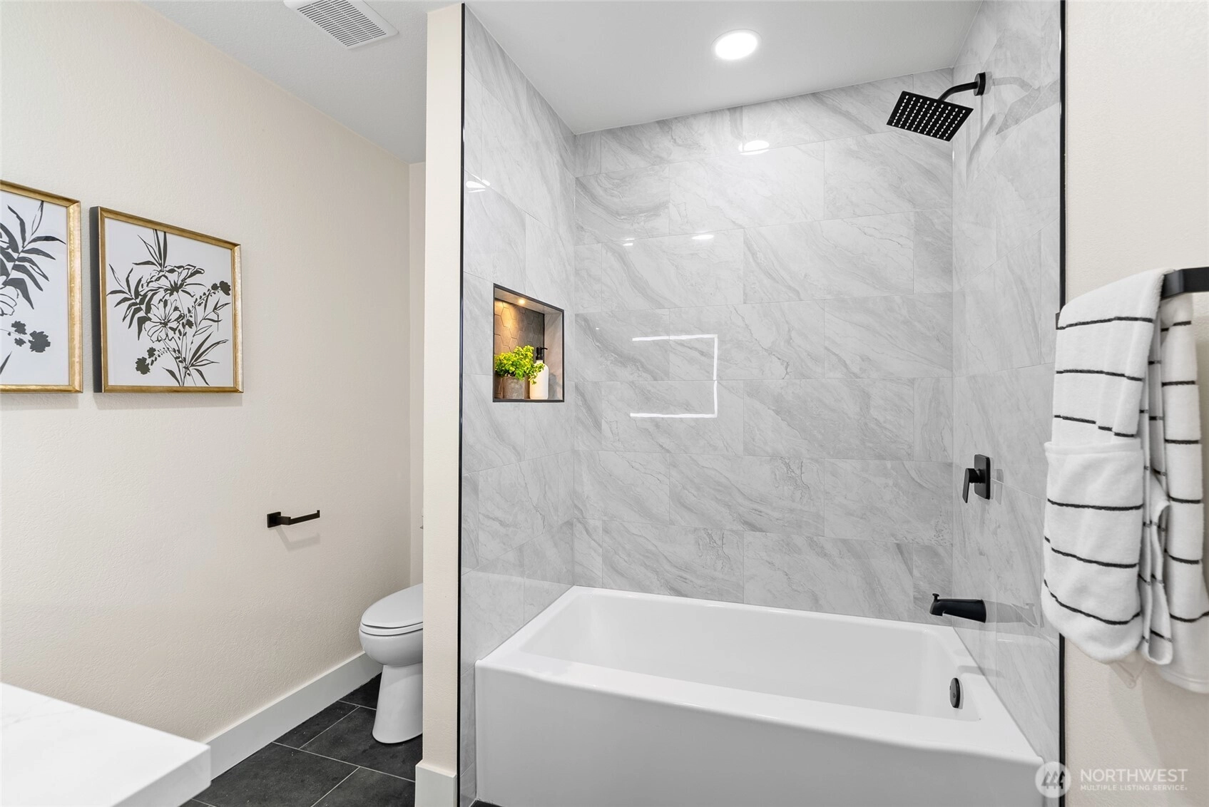 FULLY REMODELED Bothell retreat in the award-winning Northshore School District. This 3-bedroom, 2.75-bath split-level on a third of an acre offers modern comfort and flexible living. The main level features a remodeled kitchen with quartz counters, stainless appliances, sleek cabinetry, and an open living area with custom entertainment center, office/den and electric fireplace. The bay-windowed primary suite includes a walk-in tile shower and stylish finishes. The lower level provides a second living area with fireplace, bedroom, and laundry. Updates include remodeled baths, luxury vinyl flooring, fresh paint, new trim, upgraded heating, new A/C, and brand-new septic with warranty. Pre-inspected, move-in ready, includes a home warranty.