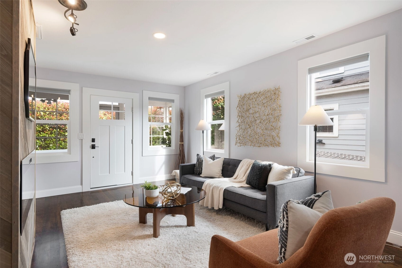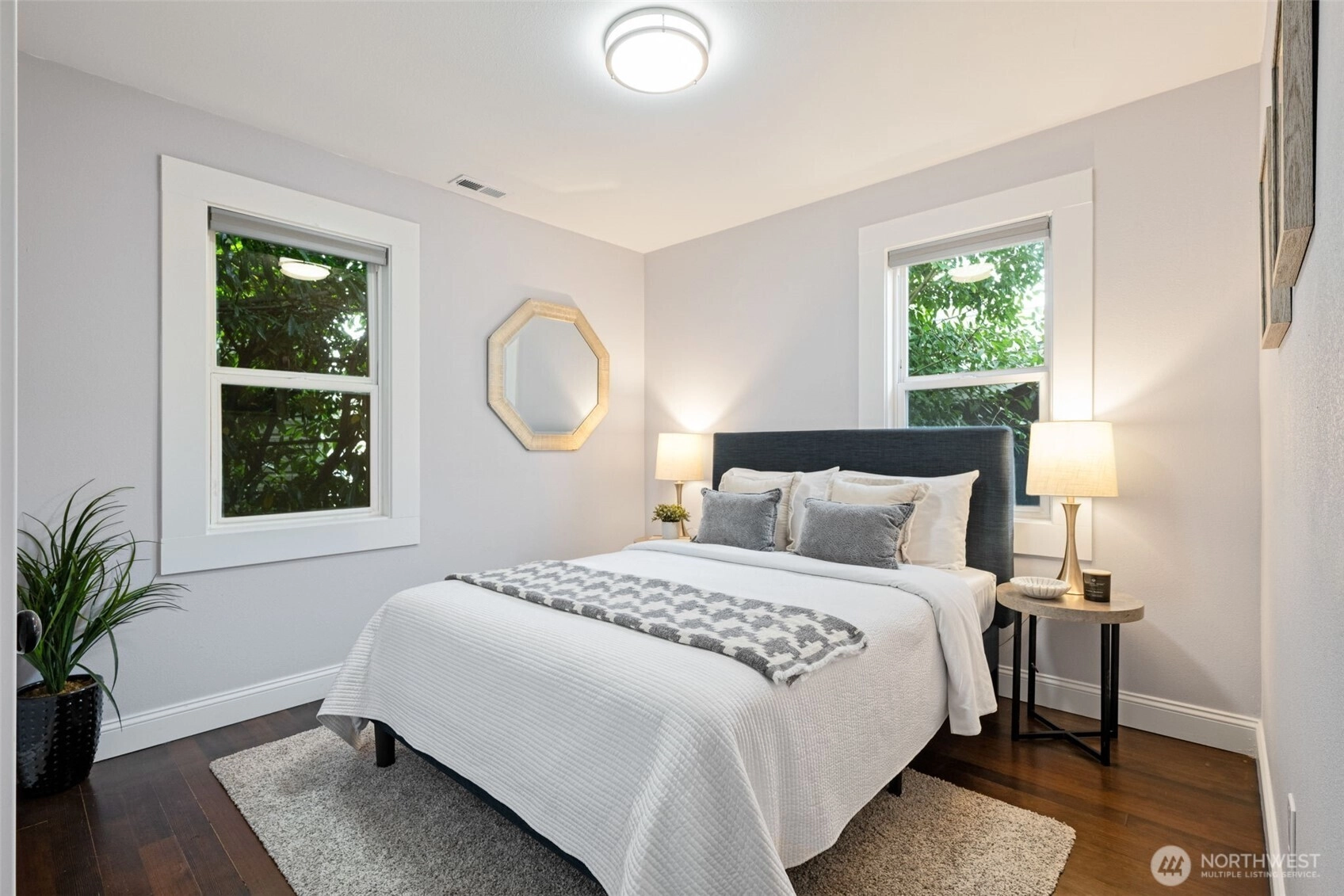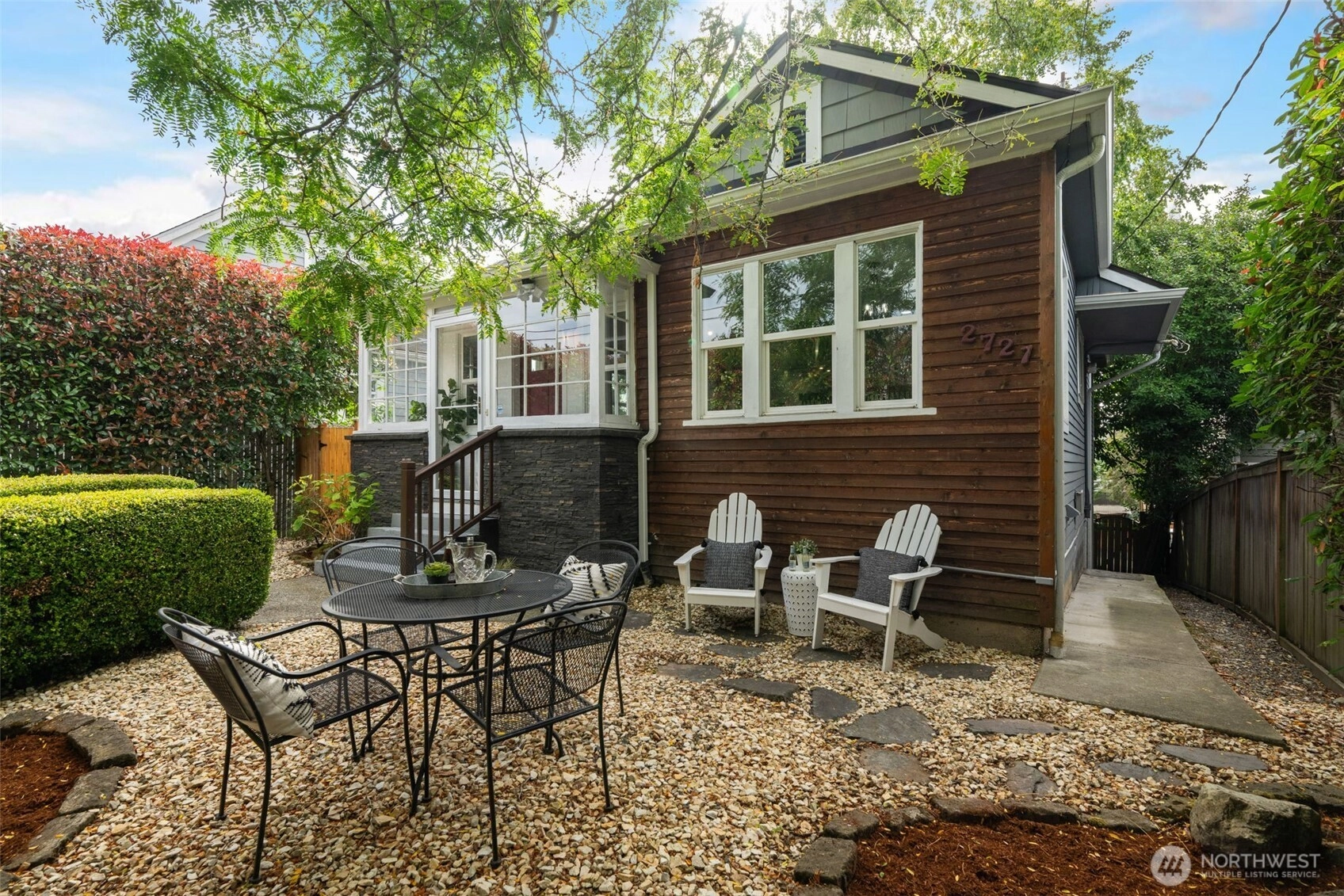 Just blocks from the new Judkins Park Station, this vintage charmer blends timeless character with modern updates. Step through the sun porch and into a light-filled living room. The kitchen shines with quartz counters, sleek new appliances, and generous storage. Two bedrooms on the main level. Renovated baths add fresh style, and the lower-level suite with wet bar offer flexibility for multi-generational living or short-term rental income. A home for all seasons - light-filled spaces will elevate your mood in the winter while central A/C keeps things cool in summer. Easy street parking or use dedicated parking spot off-alley. Enjoy a private, low-maintenance yard beneath a leafy canopy of trees - your urban retreat in the heart of it all.
