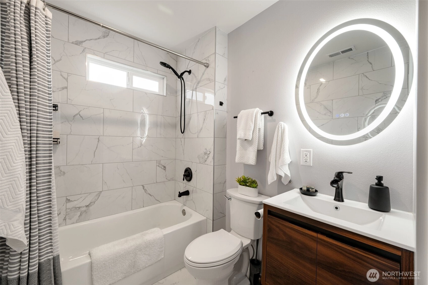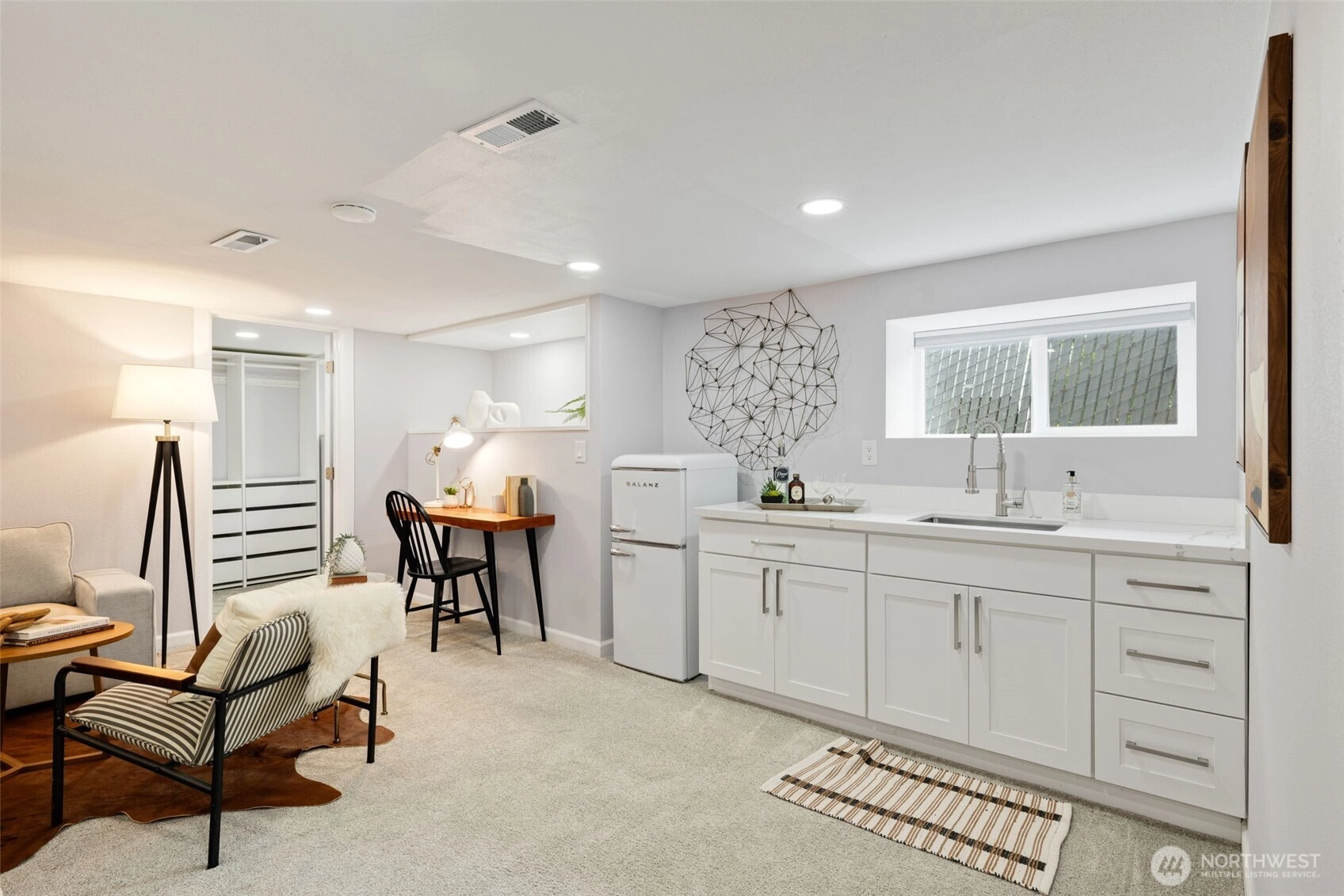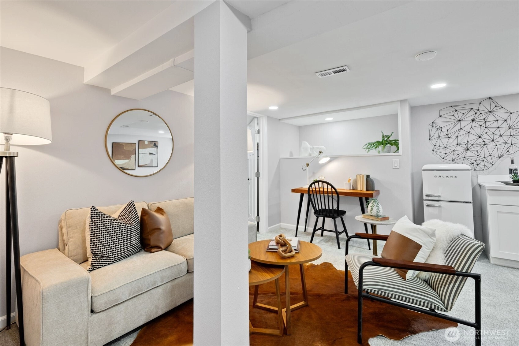 Just blocks from the new Judkins Park Station, this vintage charmer blends timeless character with modern updates. Step through the sun porch and into a light-filled living room. The kitchen shines with quartz counters, sleek new appliances, and generous storage. Two bedrooms on the main level. Renovated baths add fresh style, and the lower-level suite with wet bar offer flexibility for multi-generational living or short-term rental income. A home for all seasons - light-filled spaces will elevate your mood in the winter while central A/C keeps things cool in summer. Easy street parking or use dedicated parking spot off-alley. Enjoy a private, low-maintenance yard beneath a leafy canopy of trees - your urban retreat in the heart of it all.