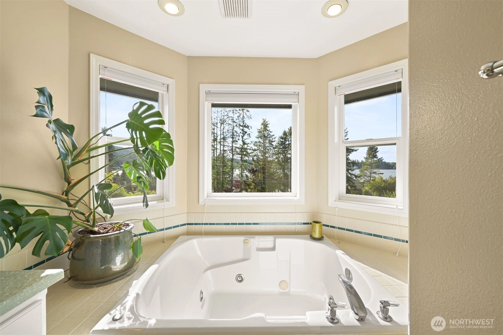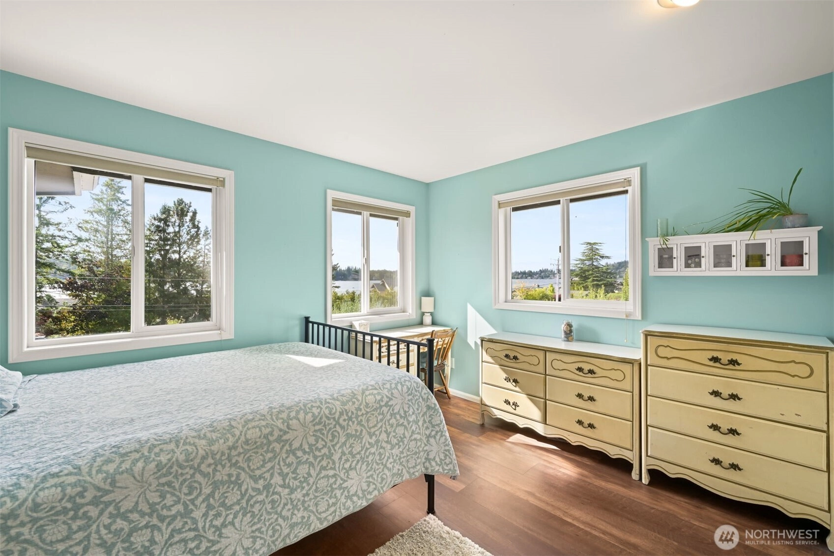 Craftsman home in sought after Silver beach neighborhood of Eagleridge. Views of Lake Whatcom from almost every room. This home sits on a flat lot shy of 1/2 an acre w/ 3 car garage & ample parking. Home features 2 generously sized living rooms, formal dining & open kitchen with granite counters, SS appliances & direct access to a large deck- an entertainers dream. Fully fenced backyard includes a number of fruit trees & beautiful stone patio. Upstairs includes primary w/private ensuite, 2 additional beds & oversized bonus room w/vaulted ceilings & wet bar. Recent upgrades include new flooring throughout, brand new remodeled bath w/tiled walk in shower, new hot water tank, furnace & more. 50 year presidential roof. Steps from Lake Whatcom.