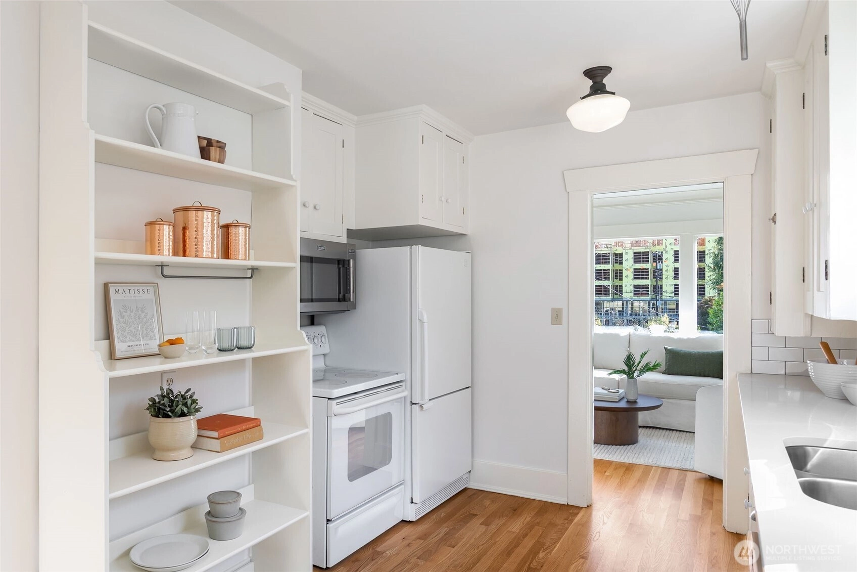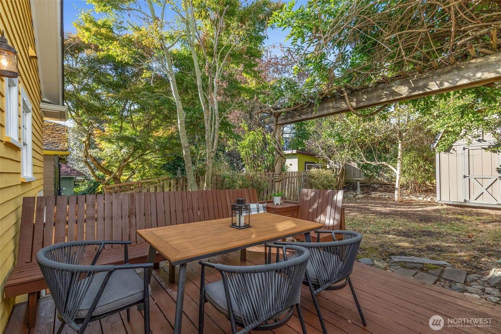 Light-filled 3 bed, 2 bath home in the heart of Seattle’s Roosevelt neighborhood! Built in 1924, this charming home blends classic details with modern updates—fresh paint, newly refinished hardwood floors, and solid surface kitchen counters. Primary suite includes a walk-in closet and deep soaking tub. Spacious back deck with built in seating walks onto a fully fenced yard. Large storage shed offers space for your gear, toys, or favorite projects. Just steps from the light rail—ideal for commuters—and a short walk to Green Lake, Whole Foods, cafes, bars, and dining. Easy access to I-5 adds extra convenience. A perfect mix of character, comfort, and location. Zoned LR3 (M2) allows for future development potential.