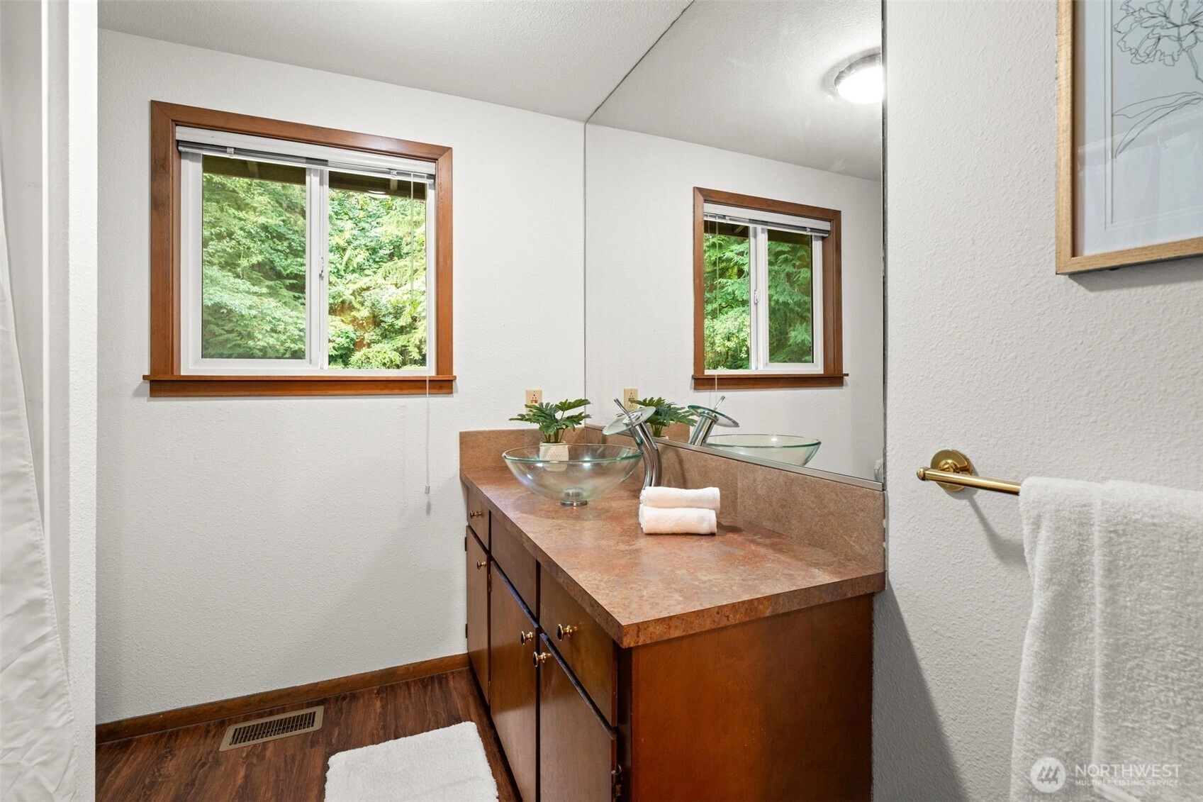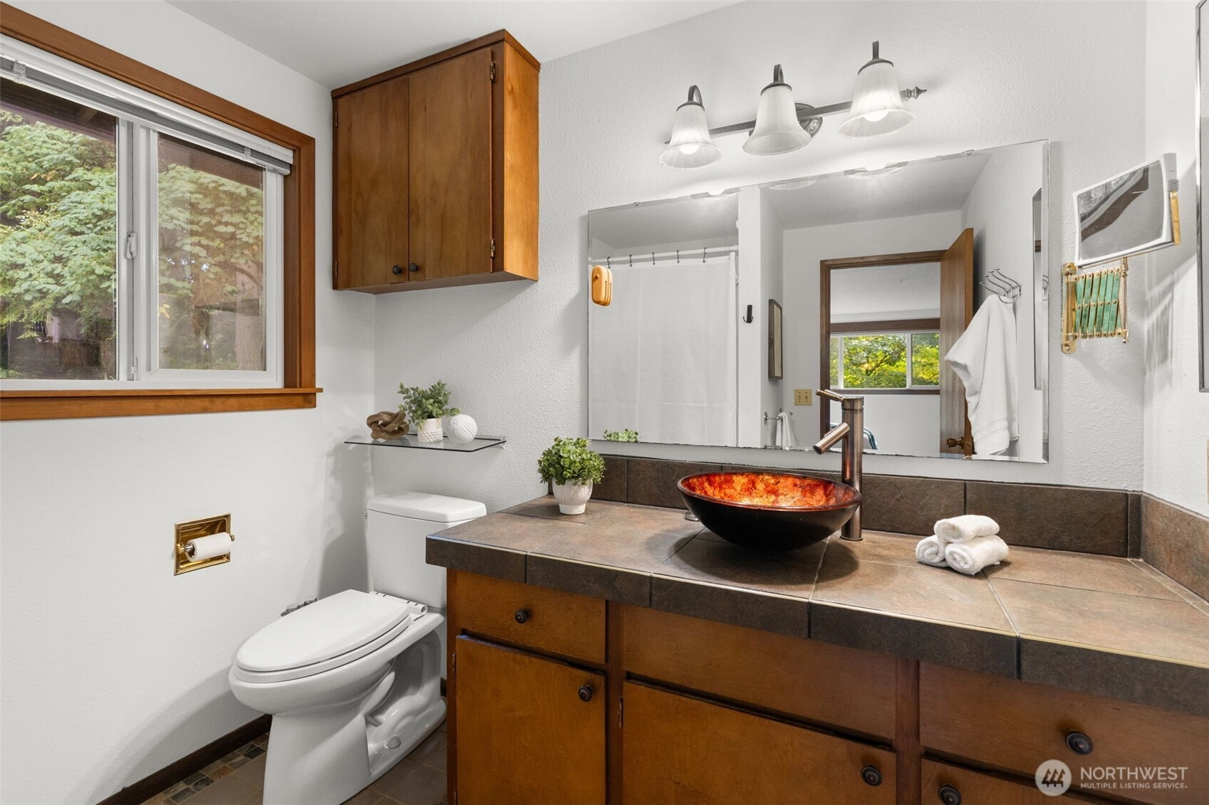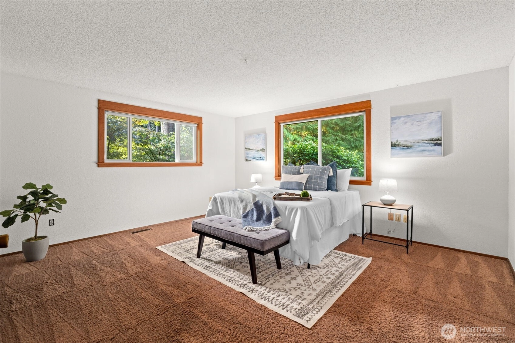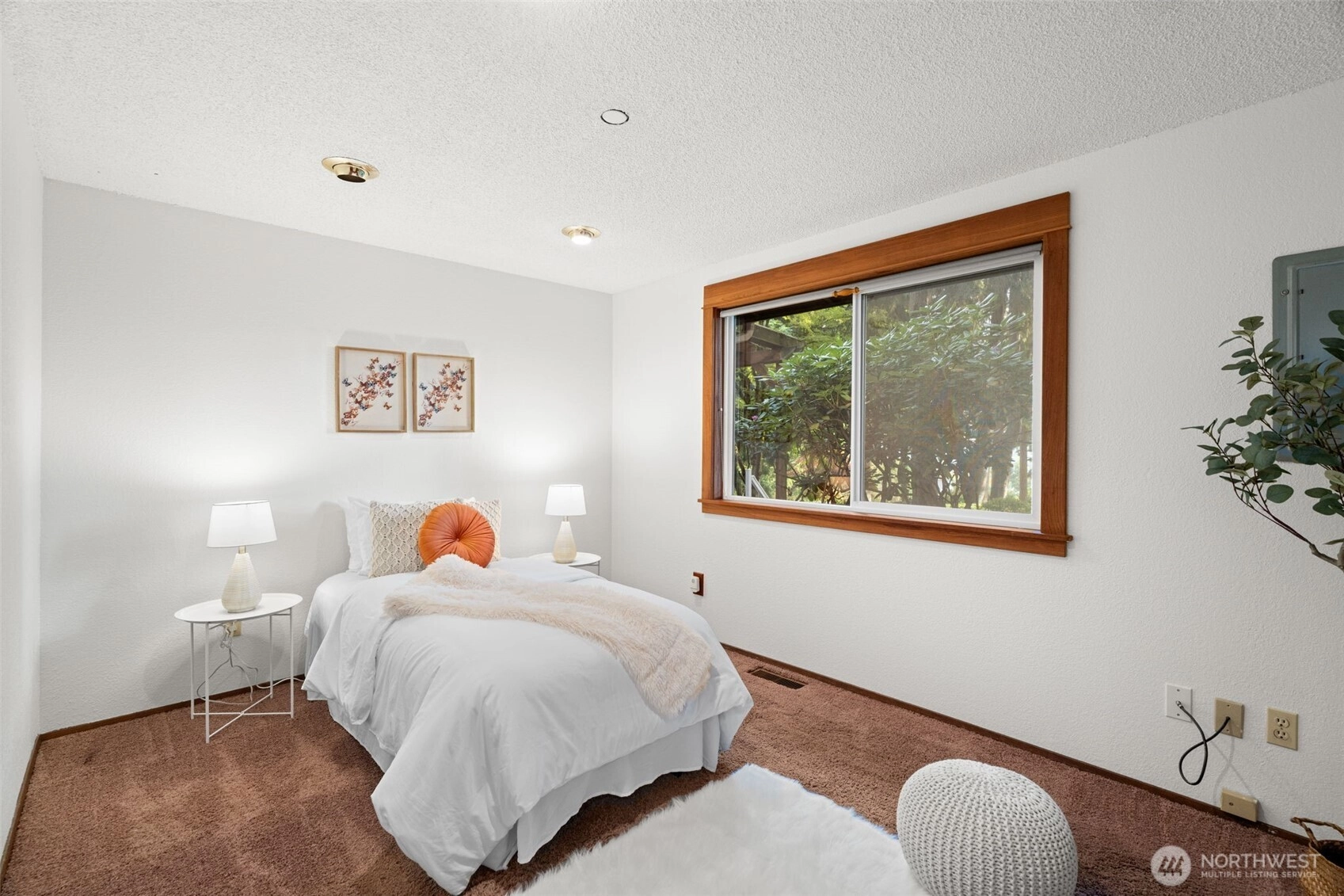 Set on 1.25 acres, this classic rambler has been lovingly cared for and is ready for your vision. Just minutes from downtown Gig Harbor, it features vaulted ceilings, a gas fireplace with marble hearth, and a wall of windows with partial Sound views. The spacious kitchen offers abundant storage and counter space, and the single-level layout makes everyday living easy. Outside, enjoy beautifully maintained grounds with a brick patio, flowering shrubs, and a vibrant garden. A three-car garage plus a carport for a small boat, along with a bonus room off the garage, add flexibility. The gated community beach club offers private waterfront access with a boat launch and playground—perfect for summer fun.