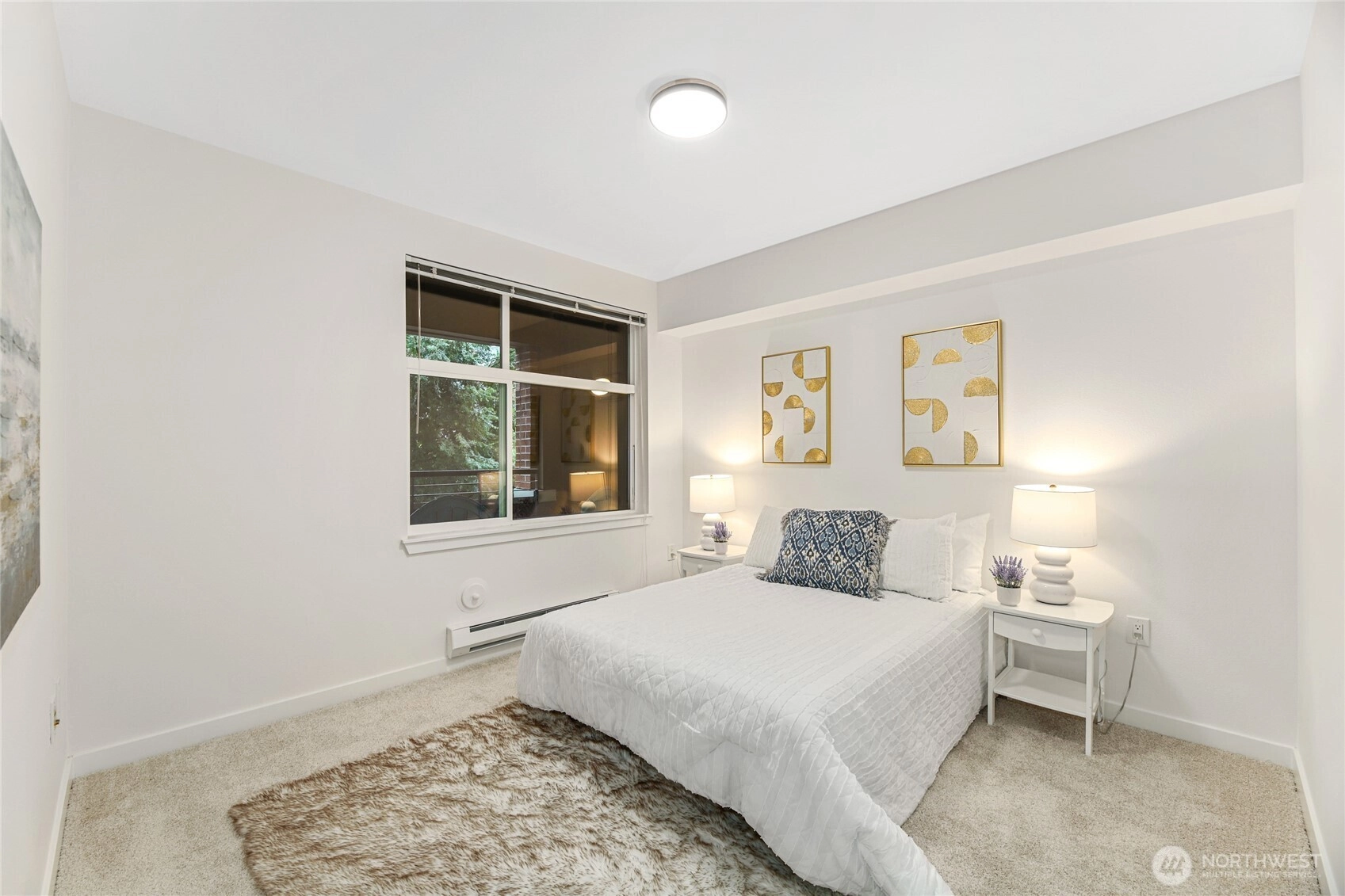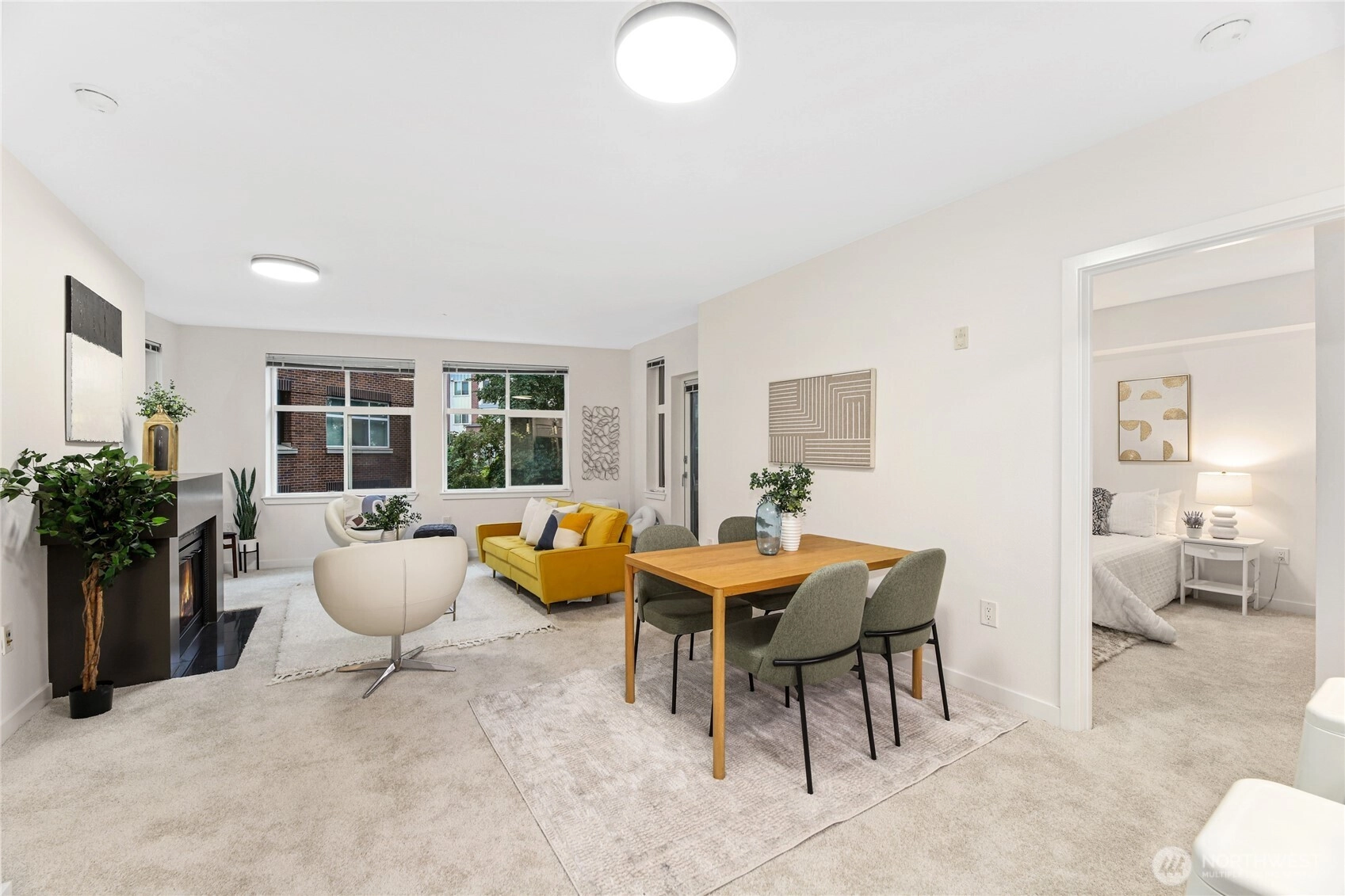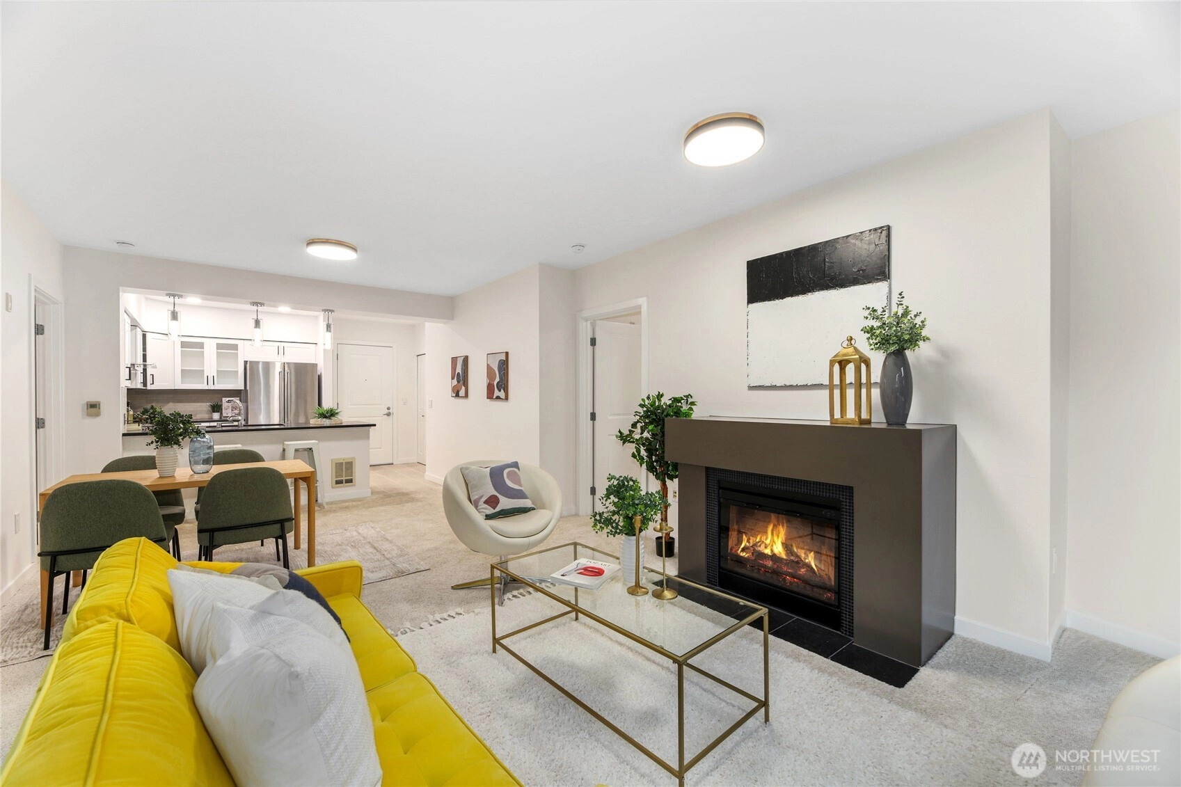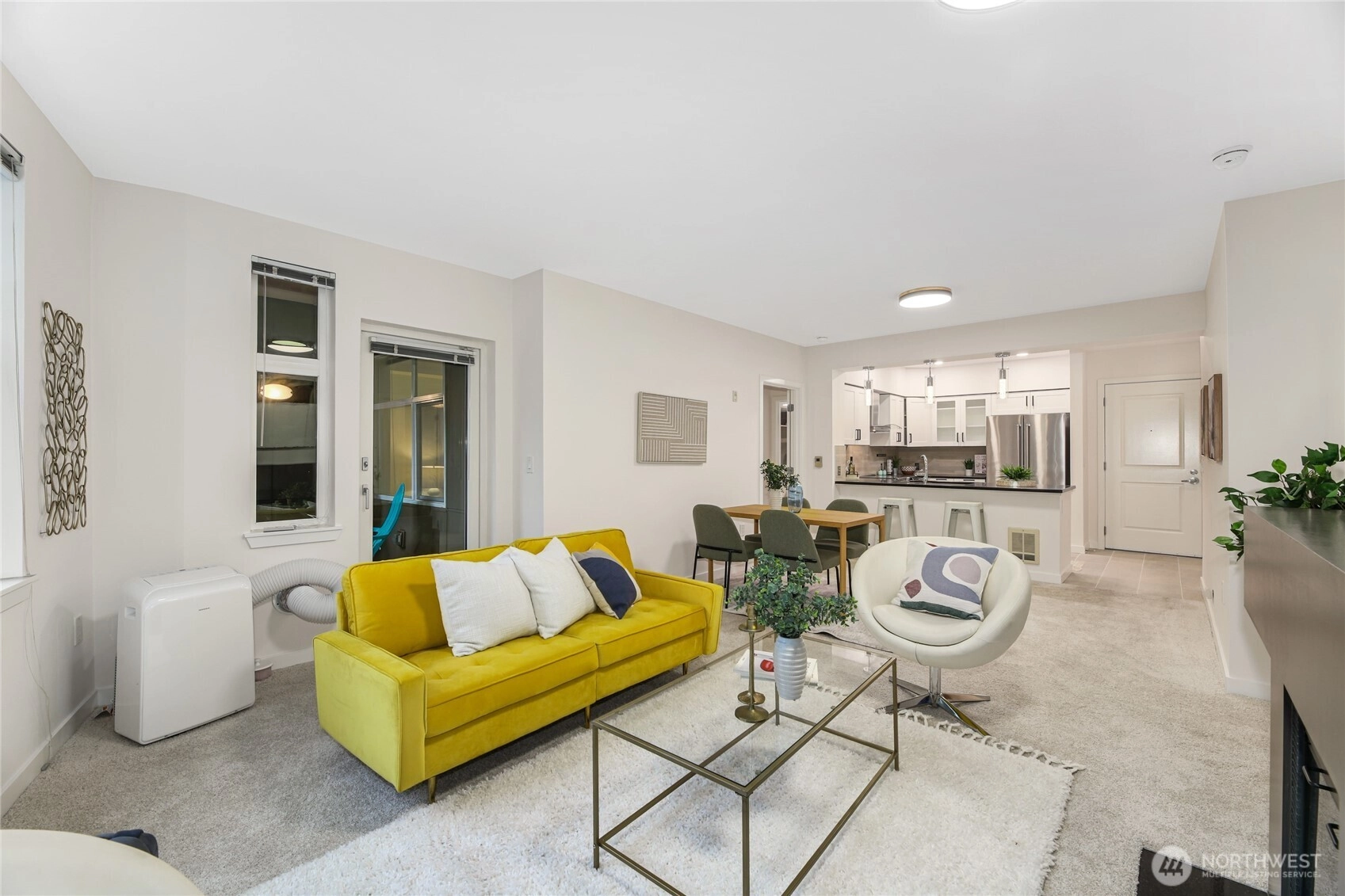 This is not your standard two bedroom condo! Completely newly renovated, this South facing condo enjoys plenty of natural sunlight and includes an additional 3rd room, ideal for your home office. Featuring a primary suite with spacious walk-in closet & 3/4 bathroom, a 2nd bedroom that has an attached full bathroom, electric fireplace, A/C unit stays to keep you cool in the summer, private South facing deck, two secure parking spaces in the common garage, a storage unit & in-unit washer & dryer. Canal Station is conveniently located in the heart of Downtown Ballard & includes resort style amenities such as concierge, fitness center, clubroom, hot tub, sauna, business center & private dog area.