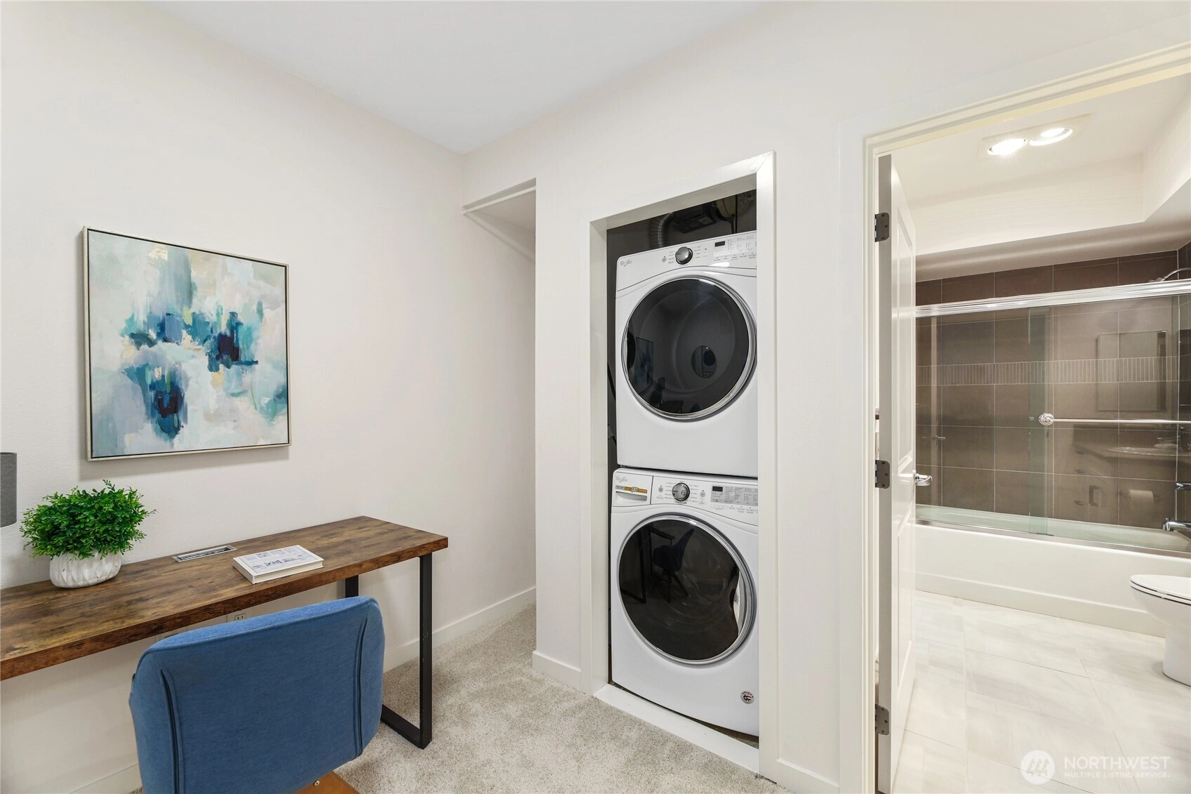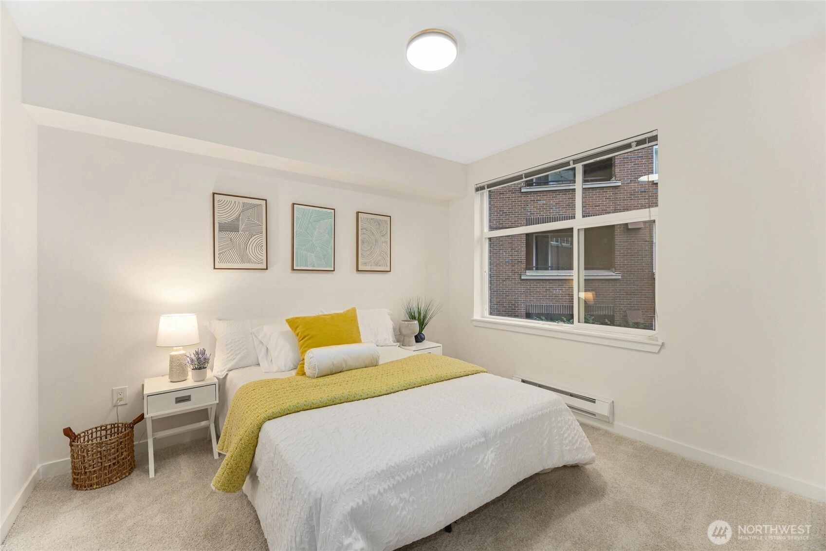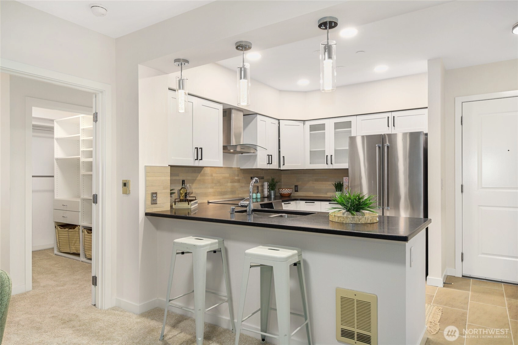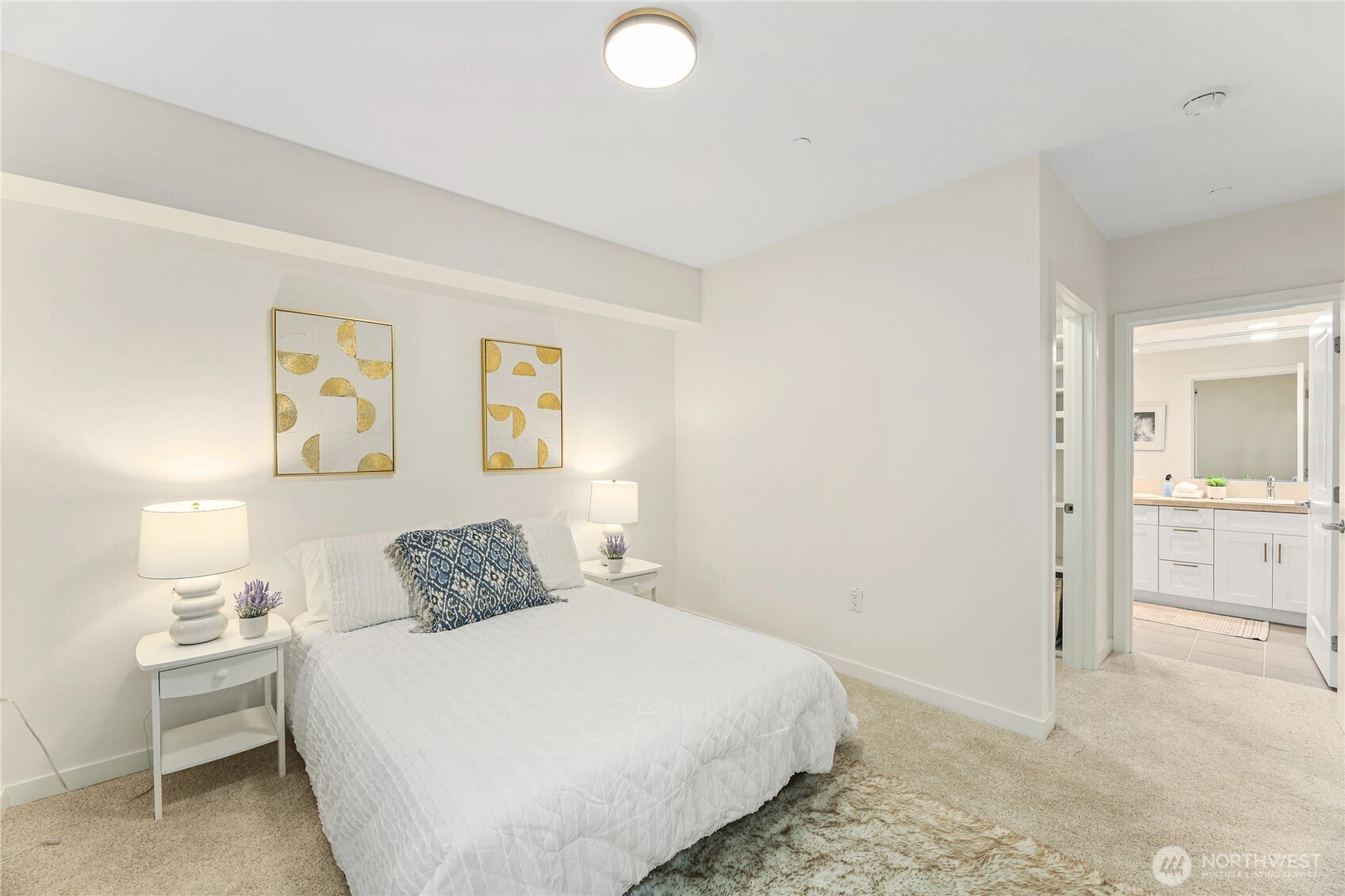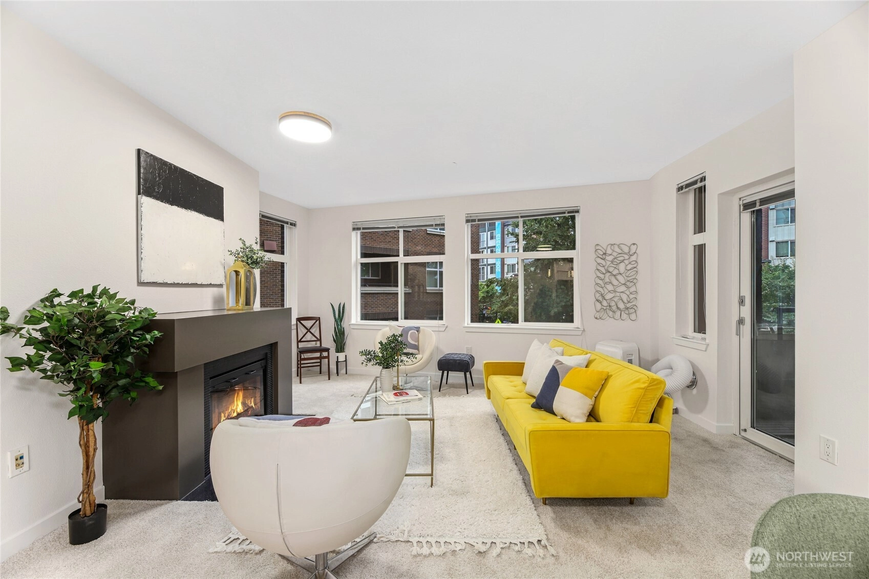 This is not your standard two bedroom condo! Completely newly renovated, this South facing condo enjoys plenty of natural sunlight and includes an additional 3rd room, ideal for your home office. Featuring a primary suite with spacious walk-in closet & 3/4 bathroom, a 2nd bedroom that has an attached full bathroom, electric fireplace, A/C unit stays to keep you cool in the summer, private South facing deck, two secure parking spaces in the common garage, a storage unit & in-unit washer & dryer. Canal Station is conveniently located in the heart of Downtown Ballard & includes resort style amenities such as concierge, fitness center, clubroom, hot tub, sauna, business center & private dog area.