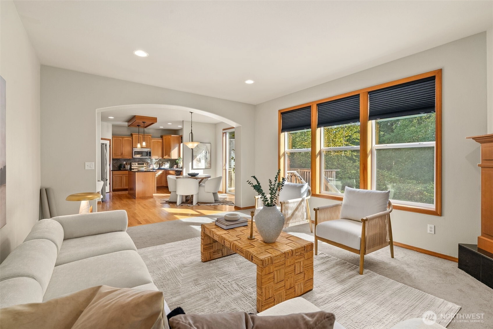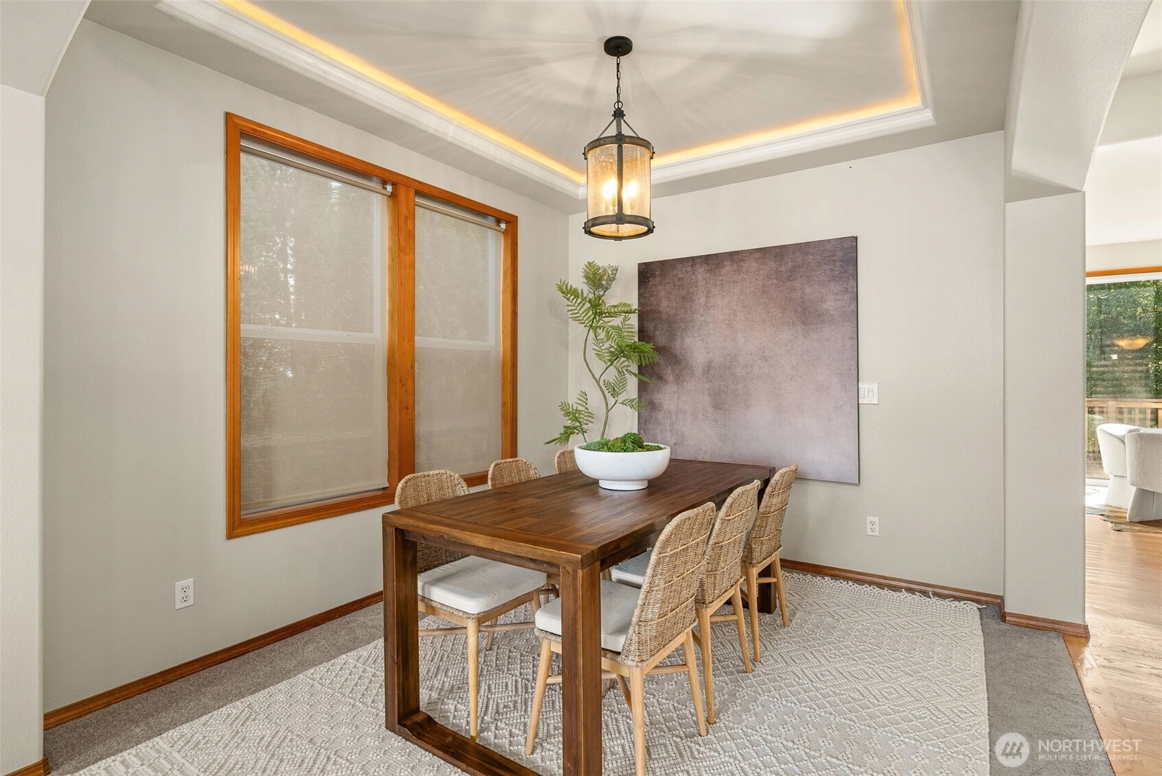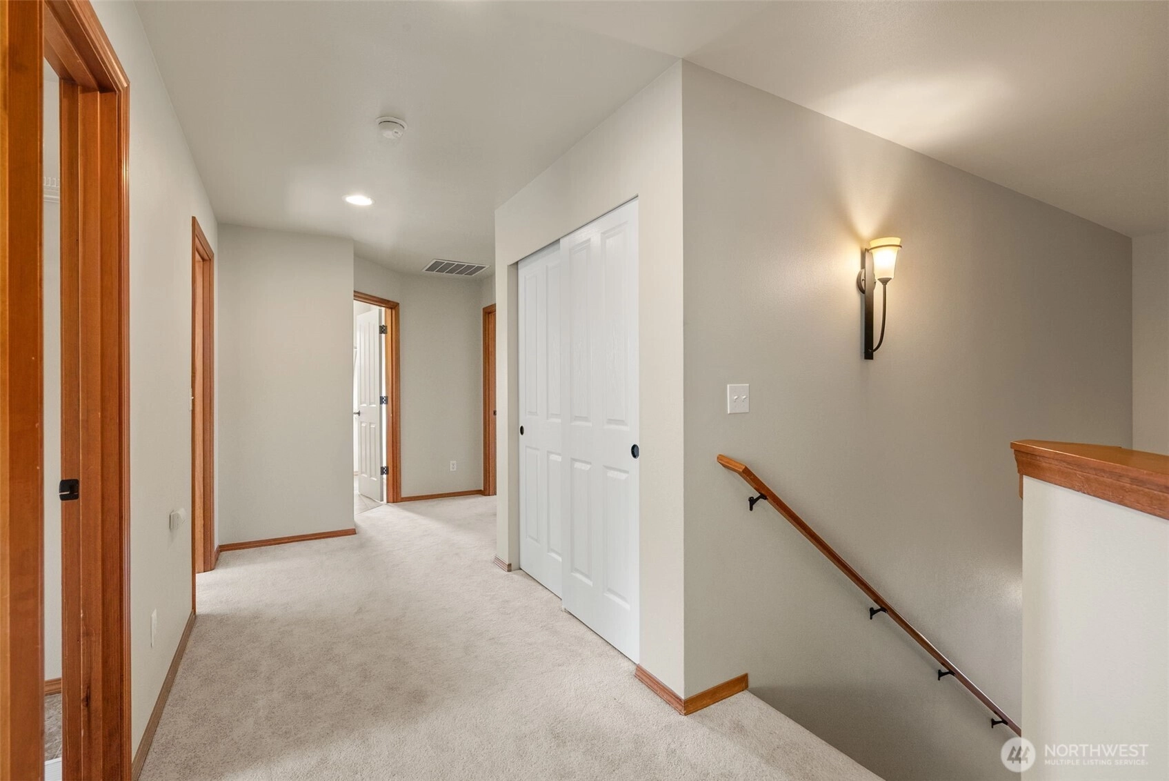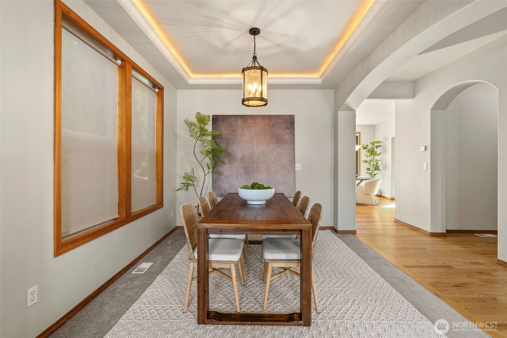 Beautiful 3 BR, 2.5 BA 2,554+/- sq. ft. home in Tumwater. Main floor has a versatile office/flex space & dining room with coffered ceilings and crown molding, a chef’s kitchen with granite counters, an island, SS appliances, walk-in pantry, and a sunny breakfast nook. Living room with a cozy gas fireplace makes entertaining and everyday living a delight. Upstairs features a light filled primary suite W/ spa-like 5-piece BA and a large WIC, 2 more BRs, spacious bonus room & convenient laundry. Recent upgrades include a BRAND NEW roof and newer exterior paint, giving you peace of mind for years to come. Backs to greenbelt, offering both privacy and natural views. All this in a prime location—just minutes to Tumwater and Westside amenities.