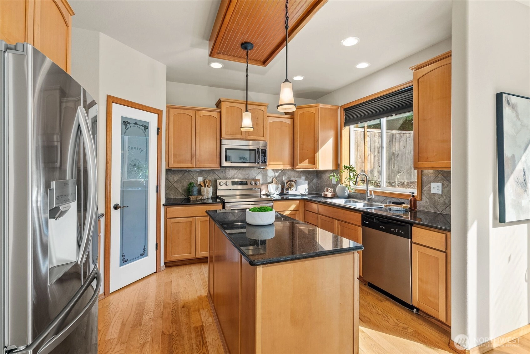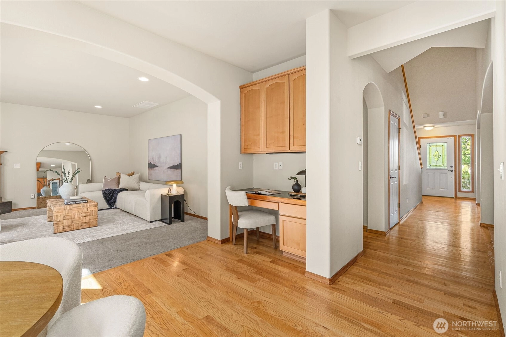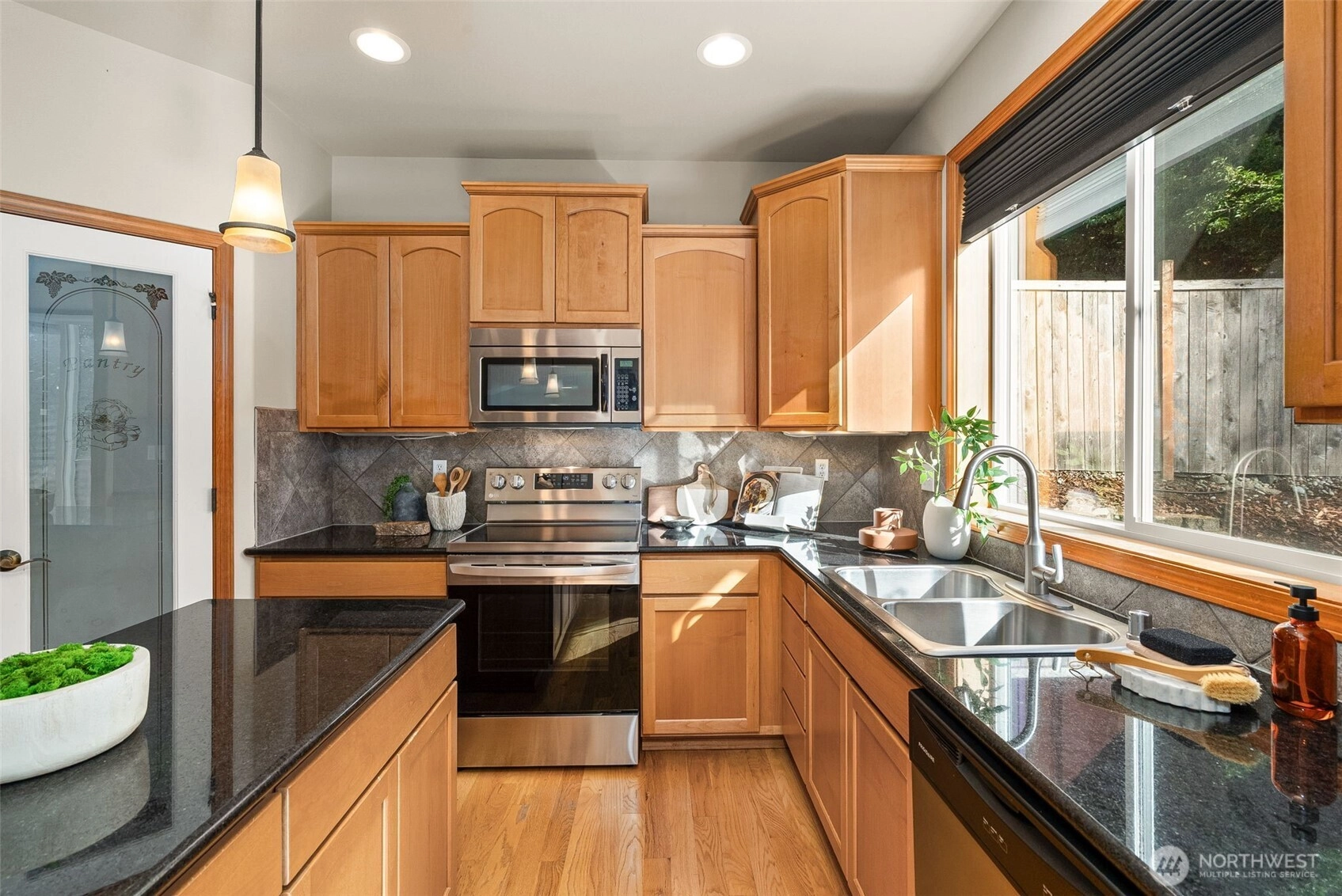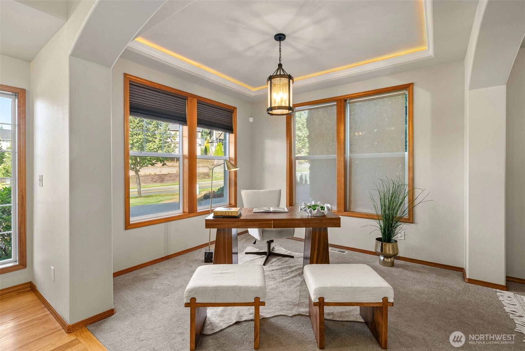 Beautiful 3 BR, 2.5 BA 2,554+/- sq. ft. home in Tumwater. Main floor has a versatile office/flex space & dining room with coffered ceilings and crown molding, a chef’s kitchen with granite counters, an island, SS appliances, walk-in pantry, and a sunny breakfast nook. Living room with a cozy gas fireplace makes entertaining and everyday living a delight. Upstairs features a light filled primary suite W/ spa-like 5-piece BA and a large WIC, 2 more BRs, spacious bonus room & convenient laundry. Recent upgrades include a BRAND NEW roof and newer exterior paint, giving you peace of mind for years to come. Backs to greenbelt, offering both privacy and natural views. All this in a prime location—just minutes to Tumwater and Westside amenities.