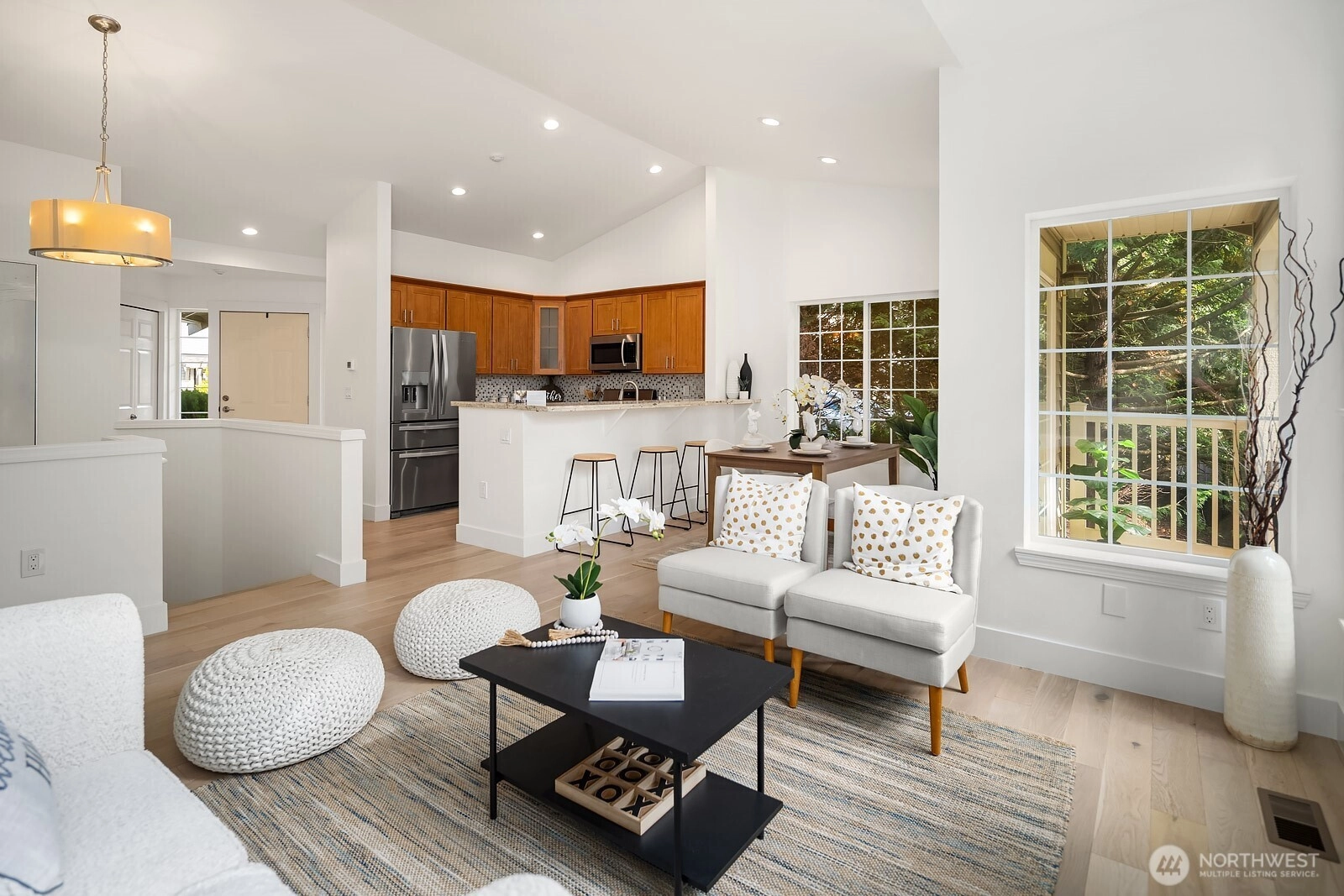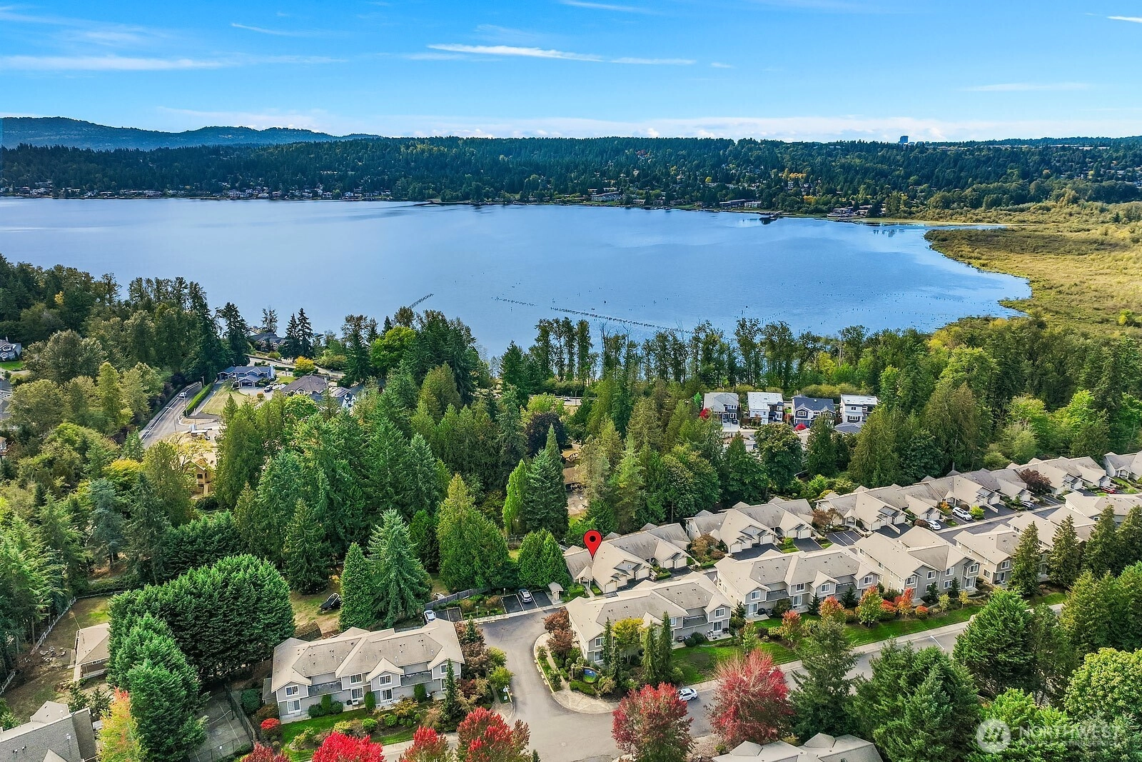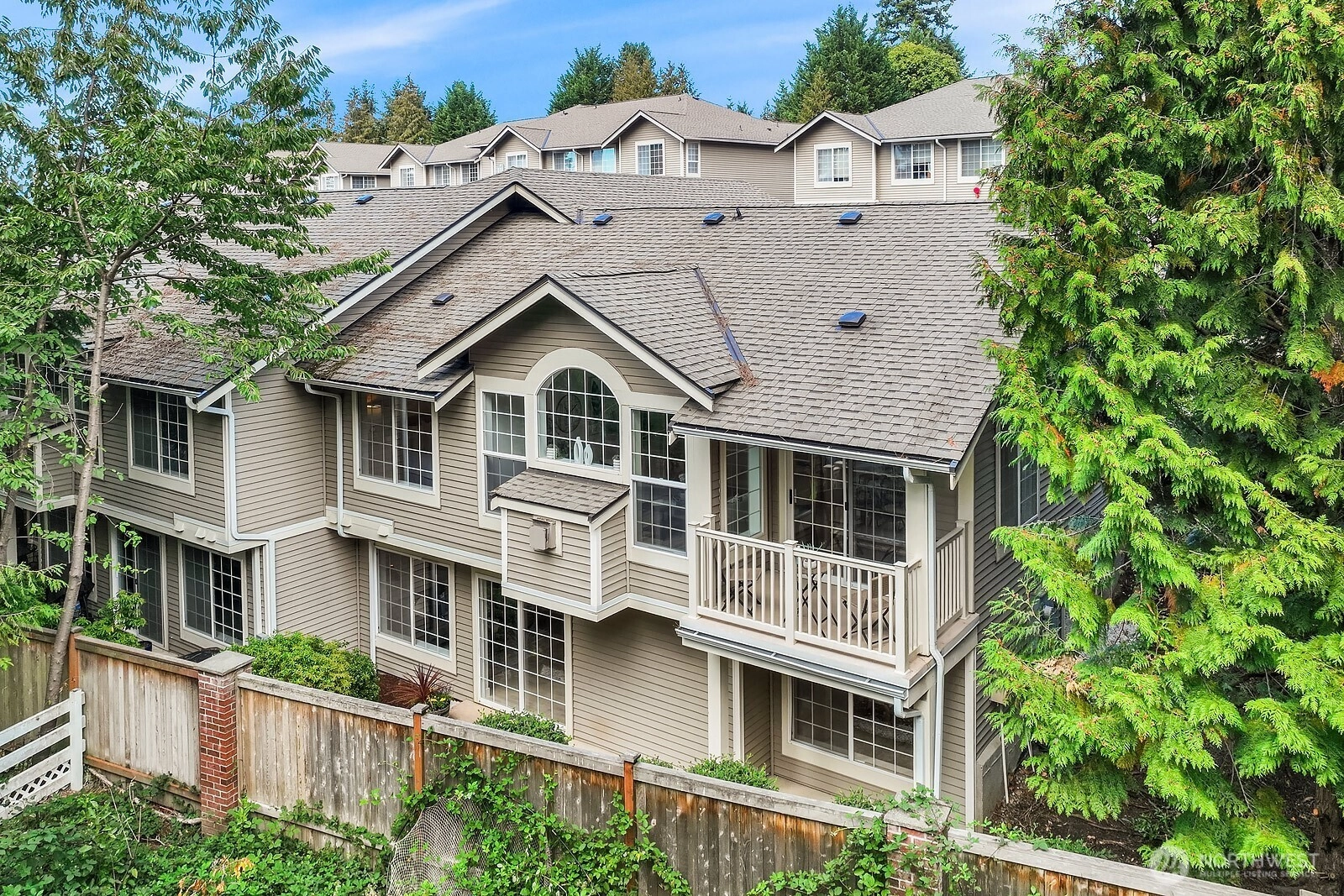 Immaculate and turn-key ready, this 3-bed, 2.5-bath end-unit townhome in coveted English Cove offers 1,743 sq ft of comfort and style. The main floor is filled with natural light, featuring vaulted ceilings and a primary suite with dual walk-in closets and private balcony. The kitchen opens to dining and living areas for seamless entertaining. The lower level hosts two bedrooms, a full bath, and a spacious living area that extends to a private patio. Recent updates include fresh paint, flooring, lighting, water heater, and newer furnace. A 2-car epoxy-finished garage adds ease. Enjoy LWSD schools, community amenities, and a prime location near 520, Marymoor Park, trails, dining, and future Light Rail.