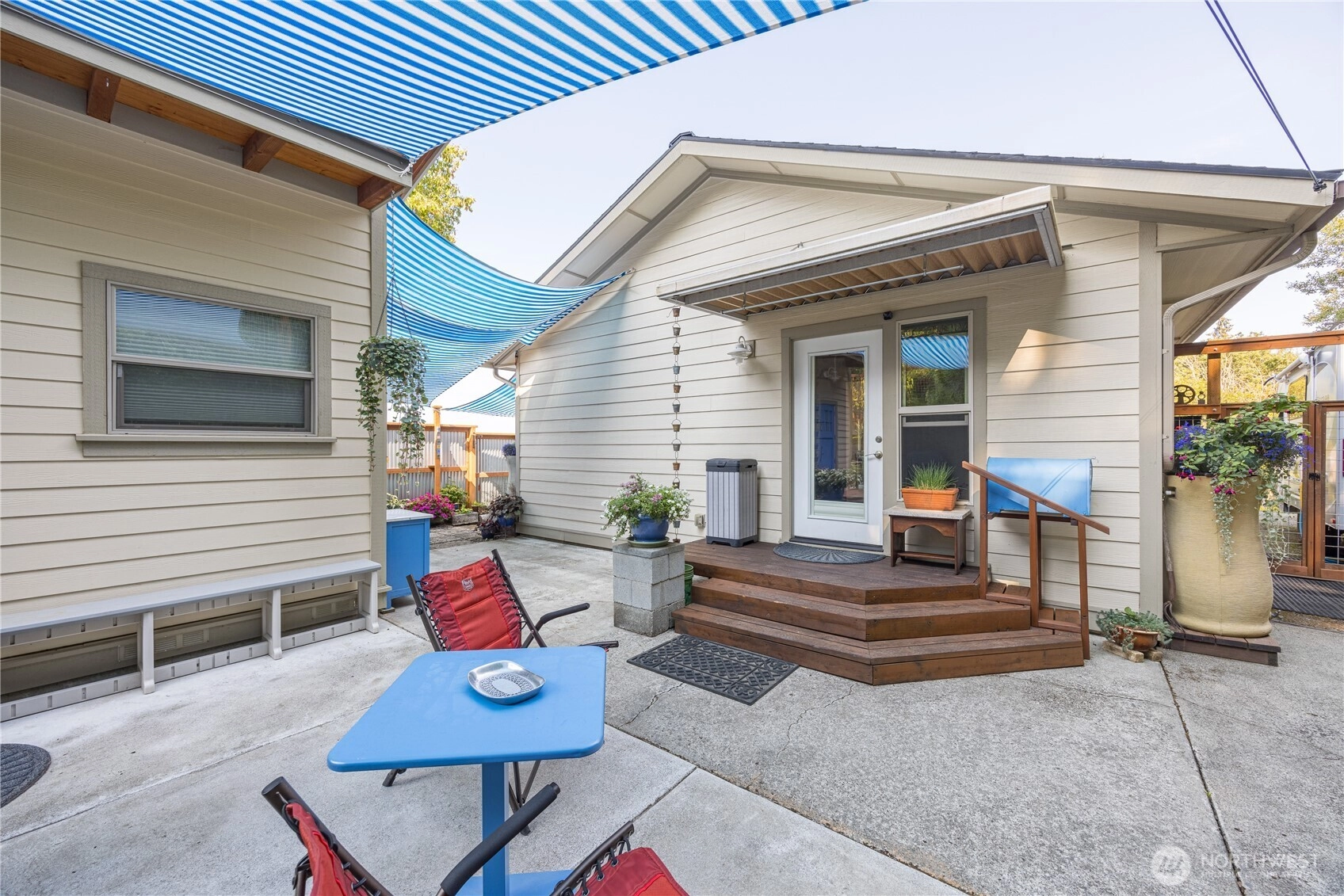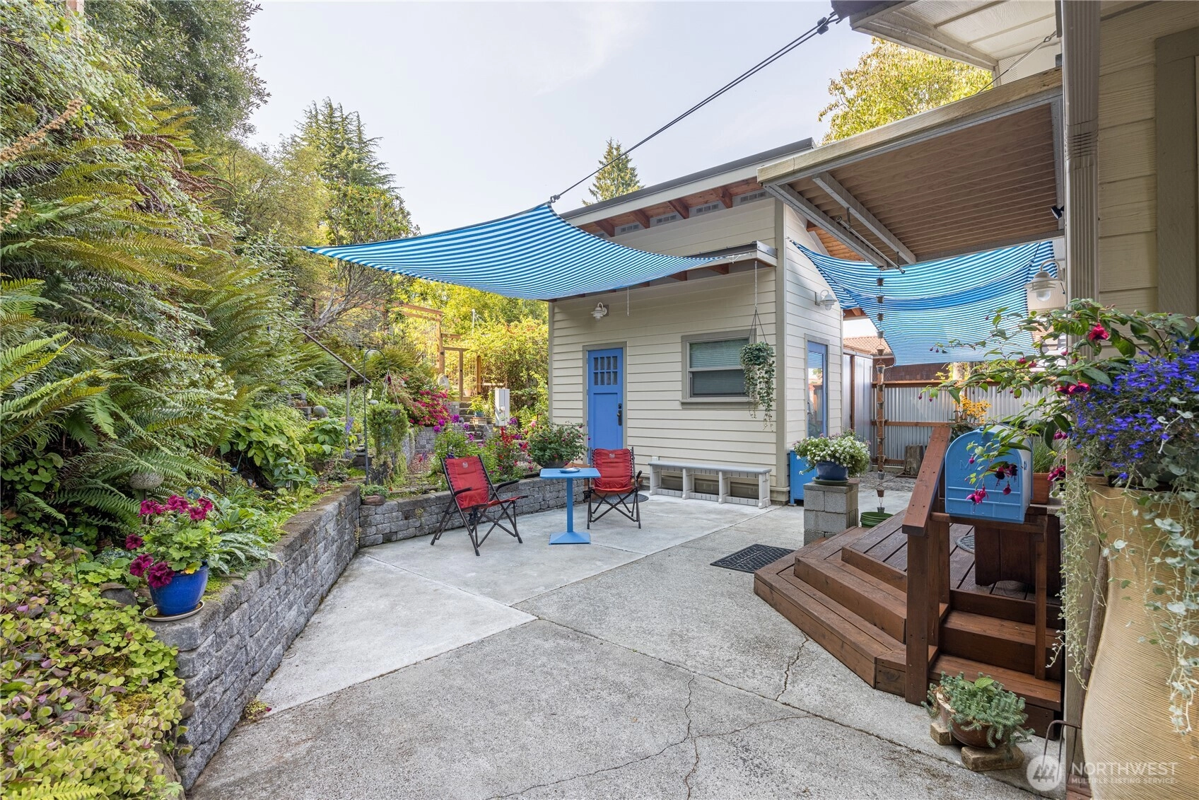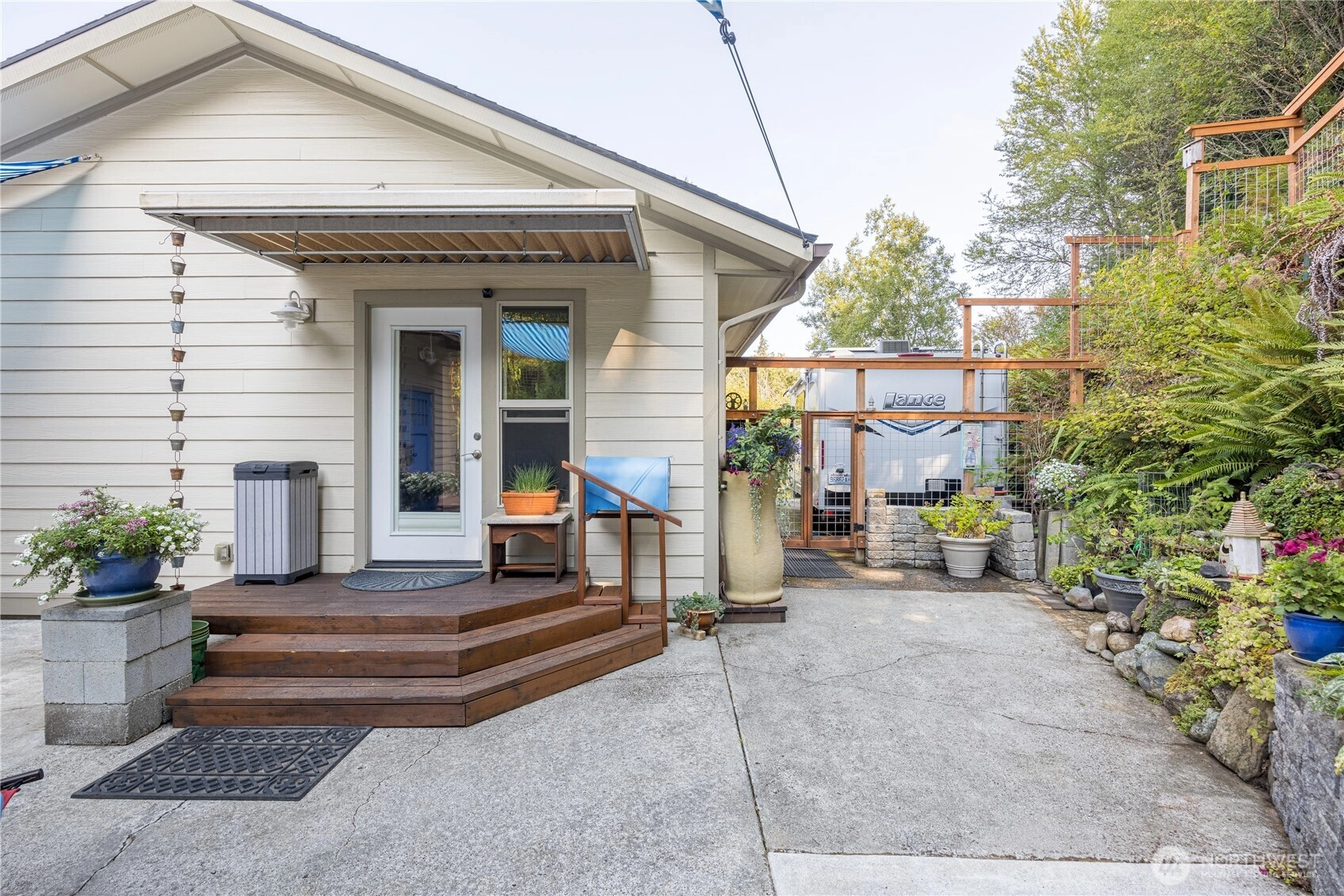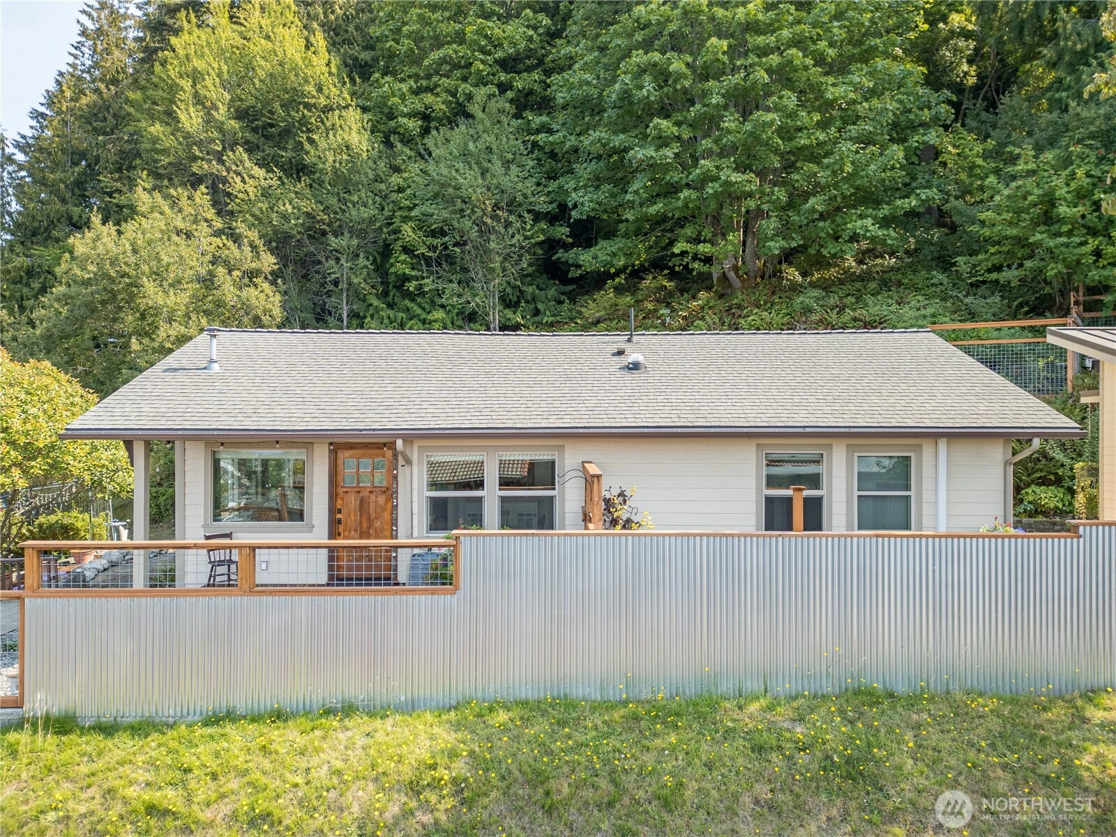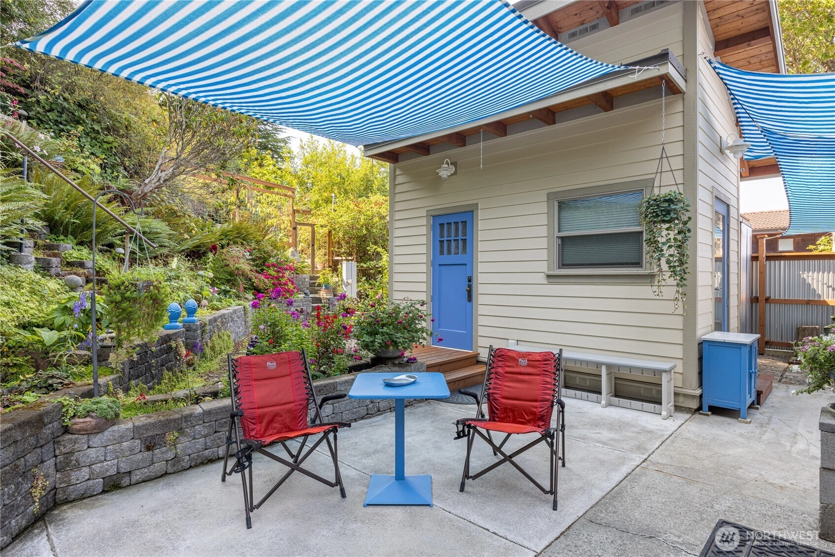 Nestled on a quiet dead-end street, this beautifully renovated home boasts unobstructed harbor and Strait views, a private south patio, and direct adjacency to Webster Woods Art Park. Fully landscaped with deer-proof fencing and hanging gardens, it features hardy board siding, dual-pane windows with alder sills, vaulted ceilings, hardwood floors, wool-carpeted bedroom, and abundant natural light from skylights and sun tunnels. Upgraded plumbing and wiring support modern comforts including a ductless mini split, pellet stove, and on-demand hot water. The remodeled kitchen offers custom maple cabinets, quartz countertops, composite sinks, under-cabinet lighting, and premium KitchenAid and Bosch appliances. Turn key!!