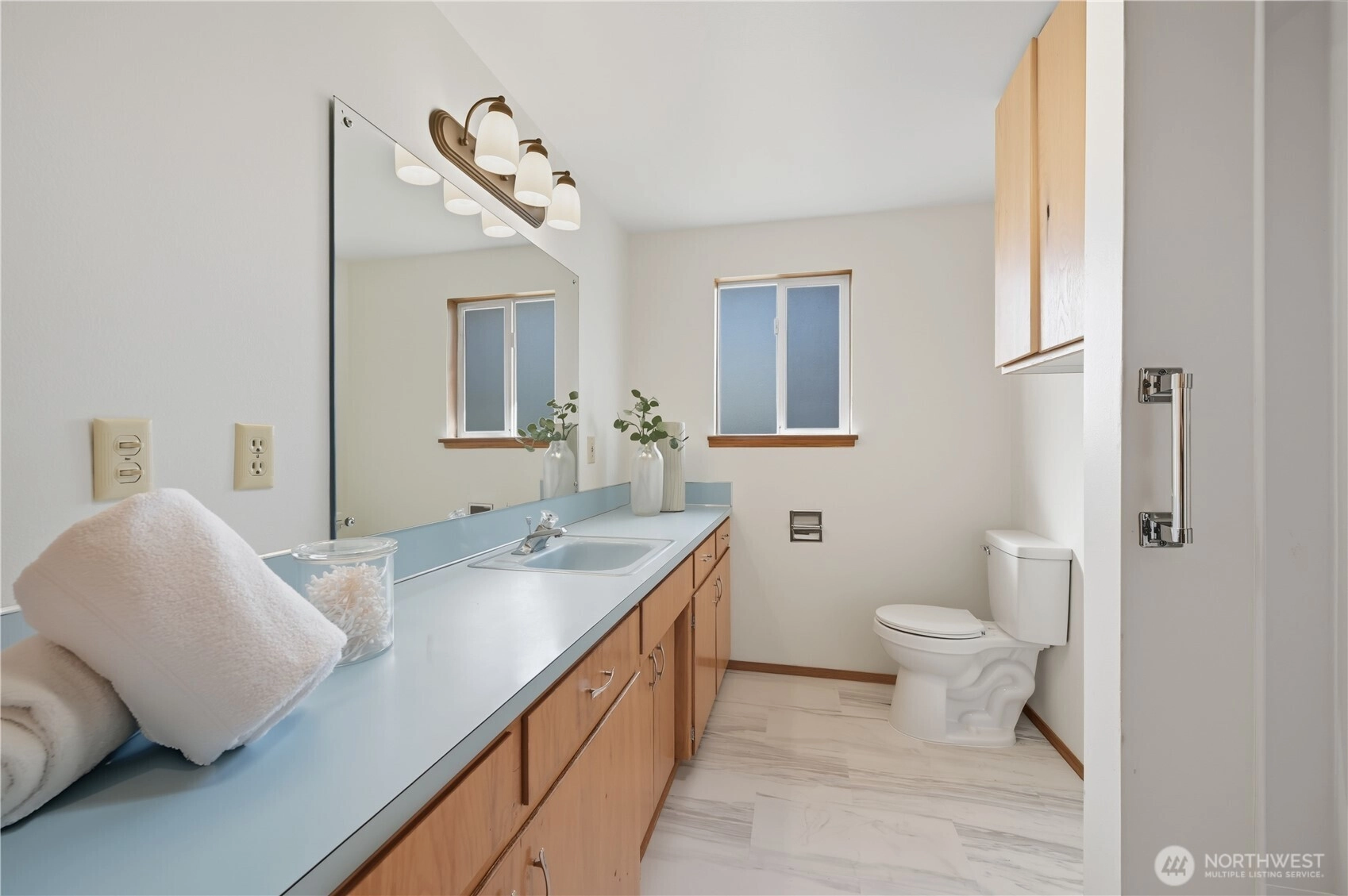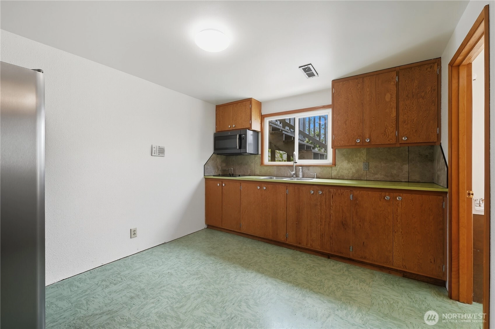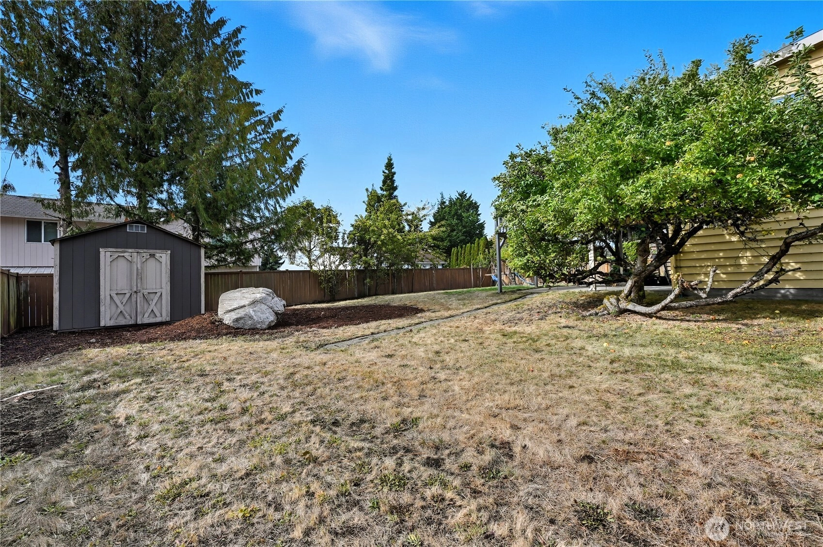 2nd Kitchen and full bathroom/shower downstairs make multi-generational living or rental options a breeze! Established plum and apple trees as well as rows and trellises for berry patch option. Extra large yard leaves room for RV/boat storage options. Boasts partial mountain and water views! This home has been in the family since it was built as a custom home. Proximity to light rail and freeway makes commuting easy.