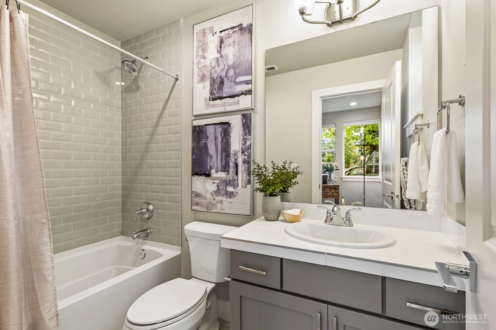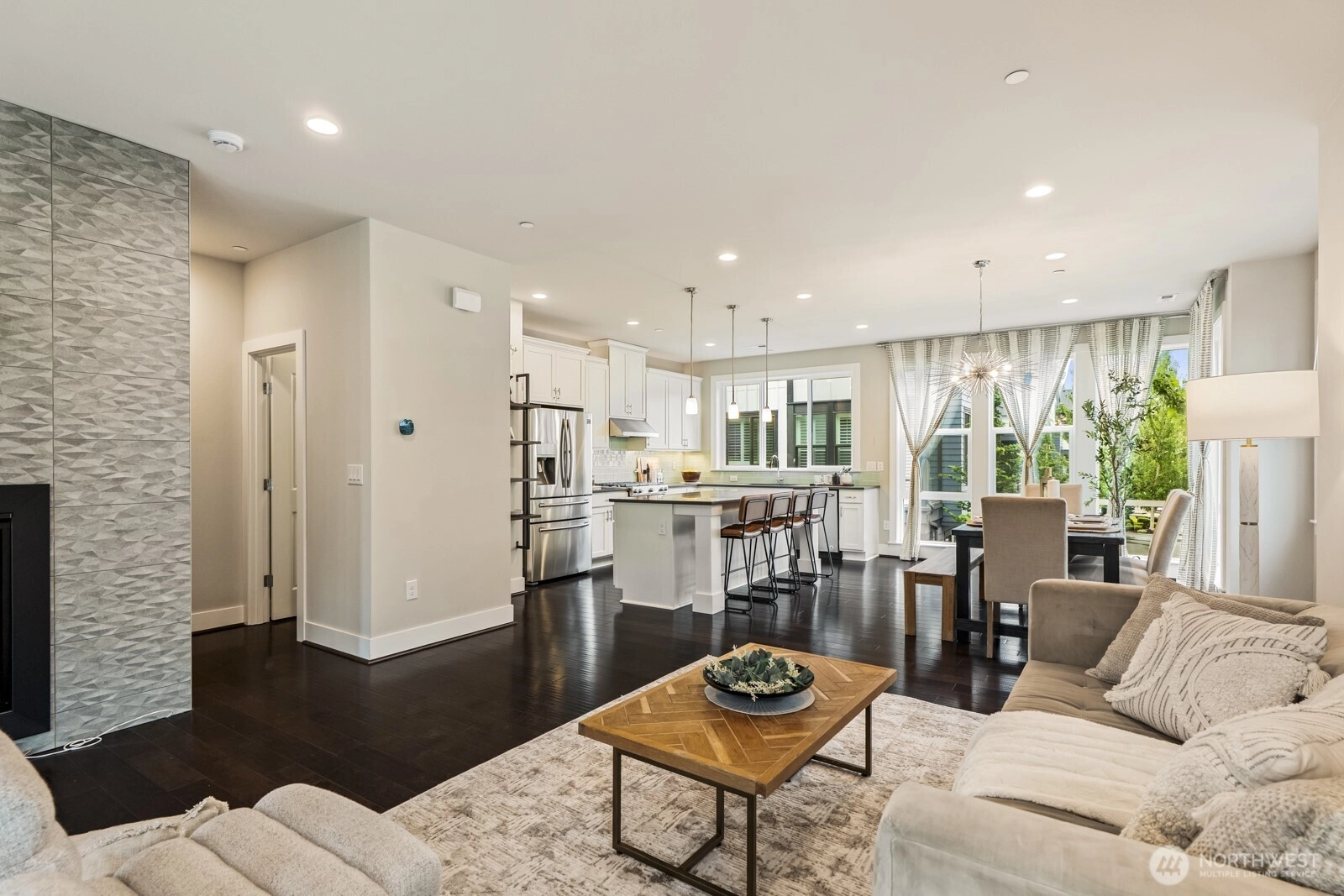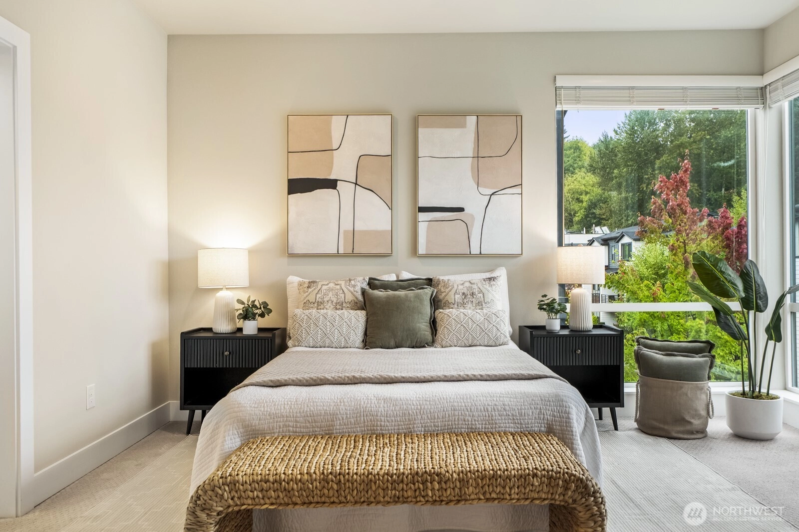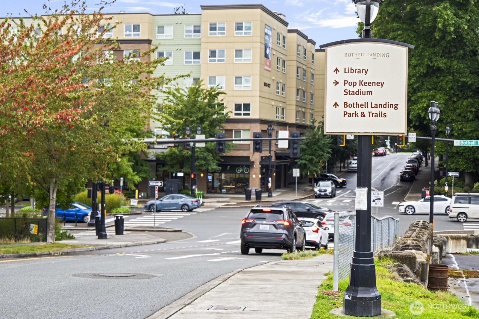 This stunning corner townhome features soaring 9’ ceilings & floor-to-ceiling windows that flood the open-concept space w/ natural light. $30K in upgrades, incl a gourmet kitchen w/ premium appliances, quartz counters, central AC & a sleek tile-wrapped gas fireplace. Desirable main-floor ensuite, spa-like primary suite w/ spacious dual shower & walk in closet AND a private covered balcony. Steps away from dining, parks & trails, incl the Burke Gilman plus a 2-car garage. Uniquely positioned corner unit is offset from other homes providing privacy & unobstructed views. Nestled in the heart of downtown Bothell in the desirable Northshore School District w/ convenient access to Bellevue & Seattle, it is truly a move-in-ready urban sanctuary!