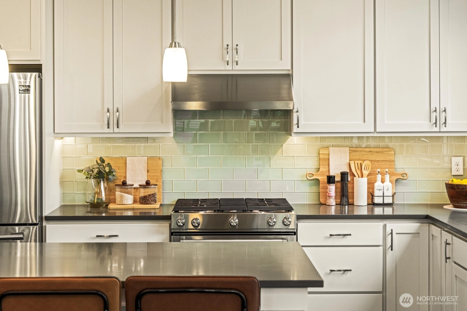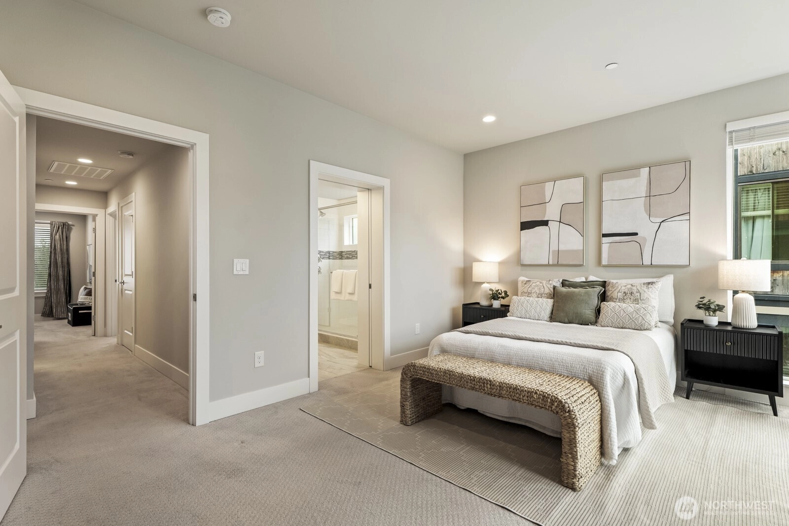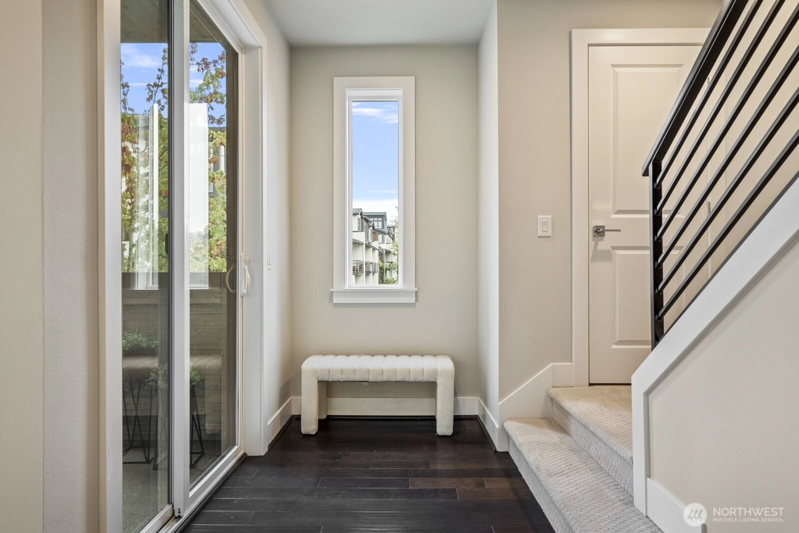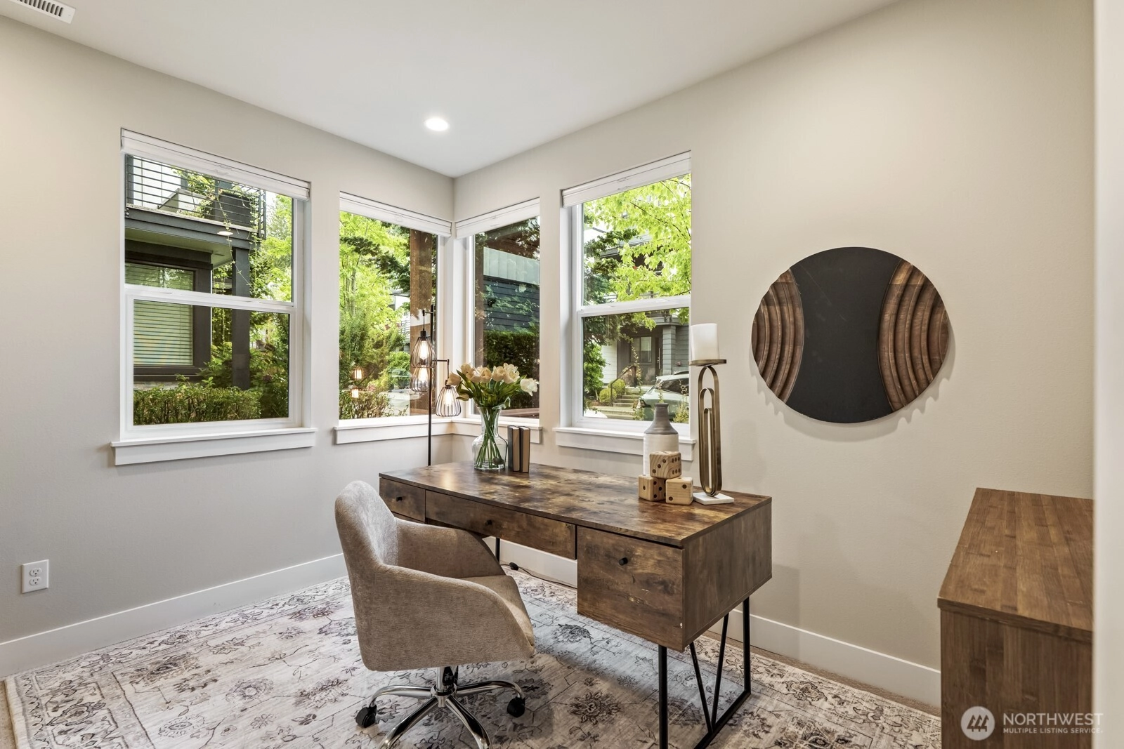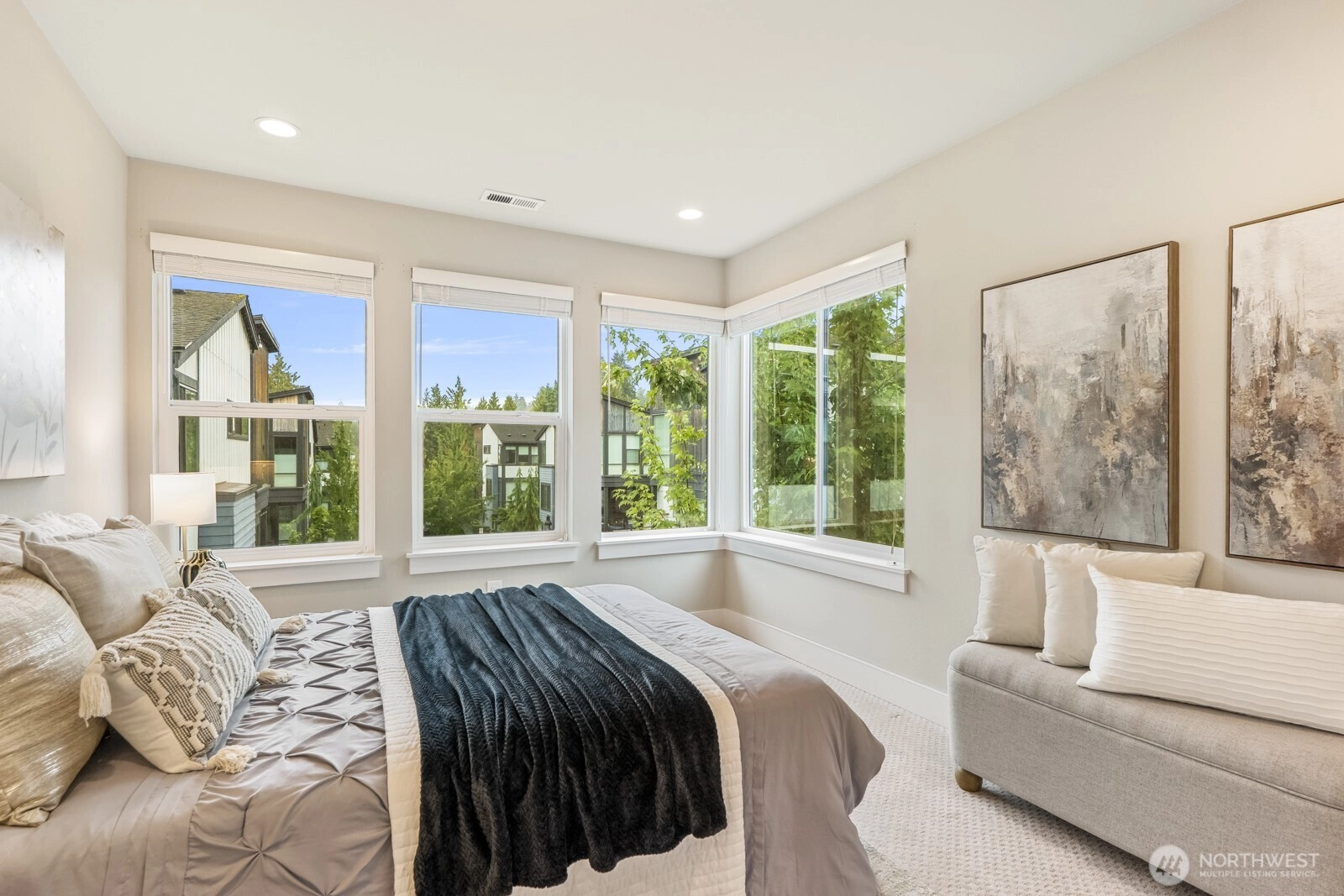 This stunning corner townhome features soaring 9’ ceilings & floor-to-ceiling windows that flood the open-concept space w/ natural light. $30K in upgrades, incl a gourmet kitchen w/ premium appliances, quartz counters, central AC & a sleek tile-wrapped gas fireplace. Desirable main-floor ensuite, spa-like primary suite w/ spacious dual shower & walk in closet AND a private covered balcony. Steps away from dining, parks & trails, incl the Burke Gilman plus a 2-car garage. Uniquely positioned corner unit is offset from other homes providing privacy & unobstructed views. Nestled in the heart of downtown Bothell in the desirable Northshore School District w/ convenient access to Bellevue & Seattle, it is truly a move-in-ready urban sanctuary!