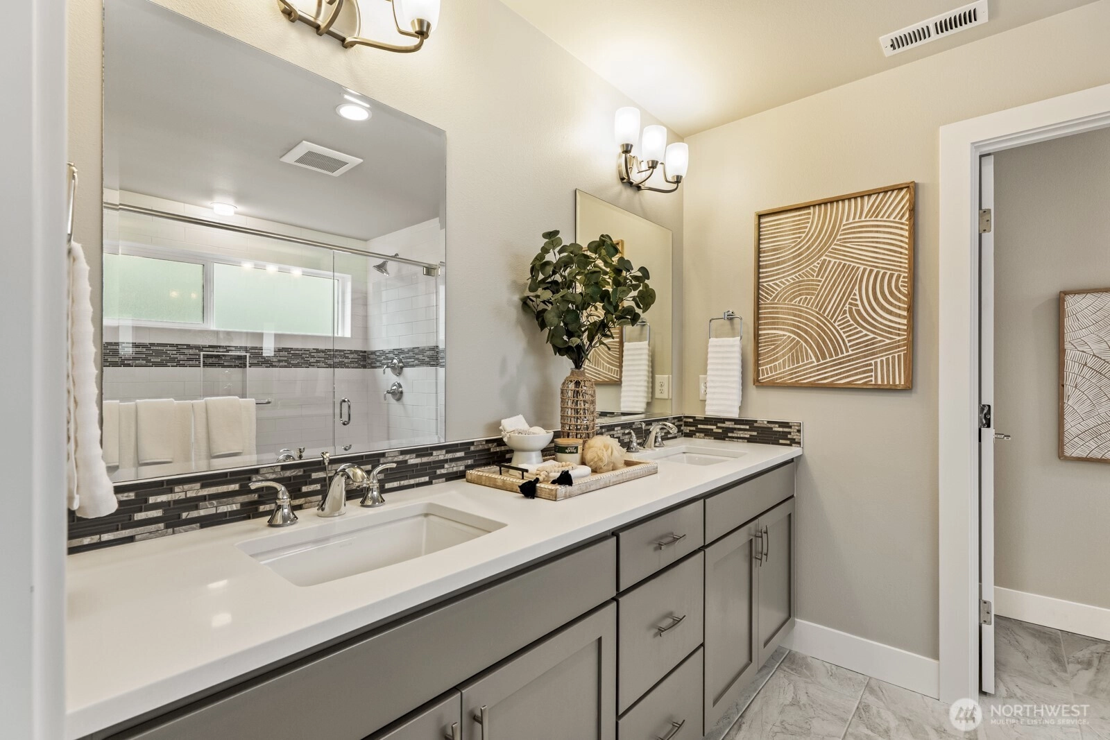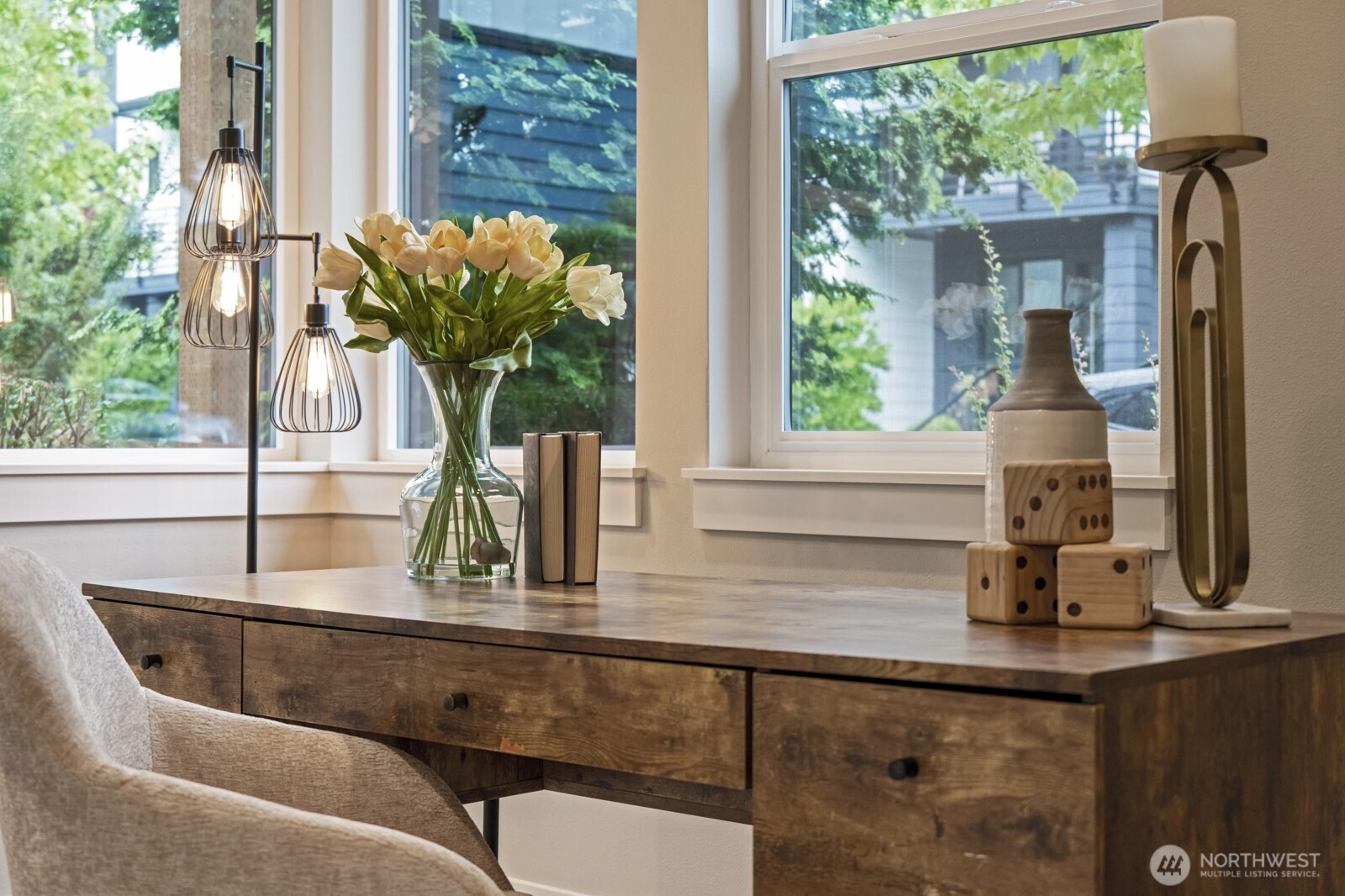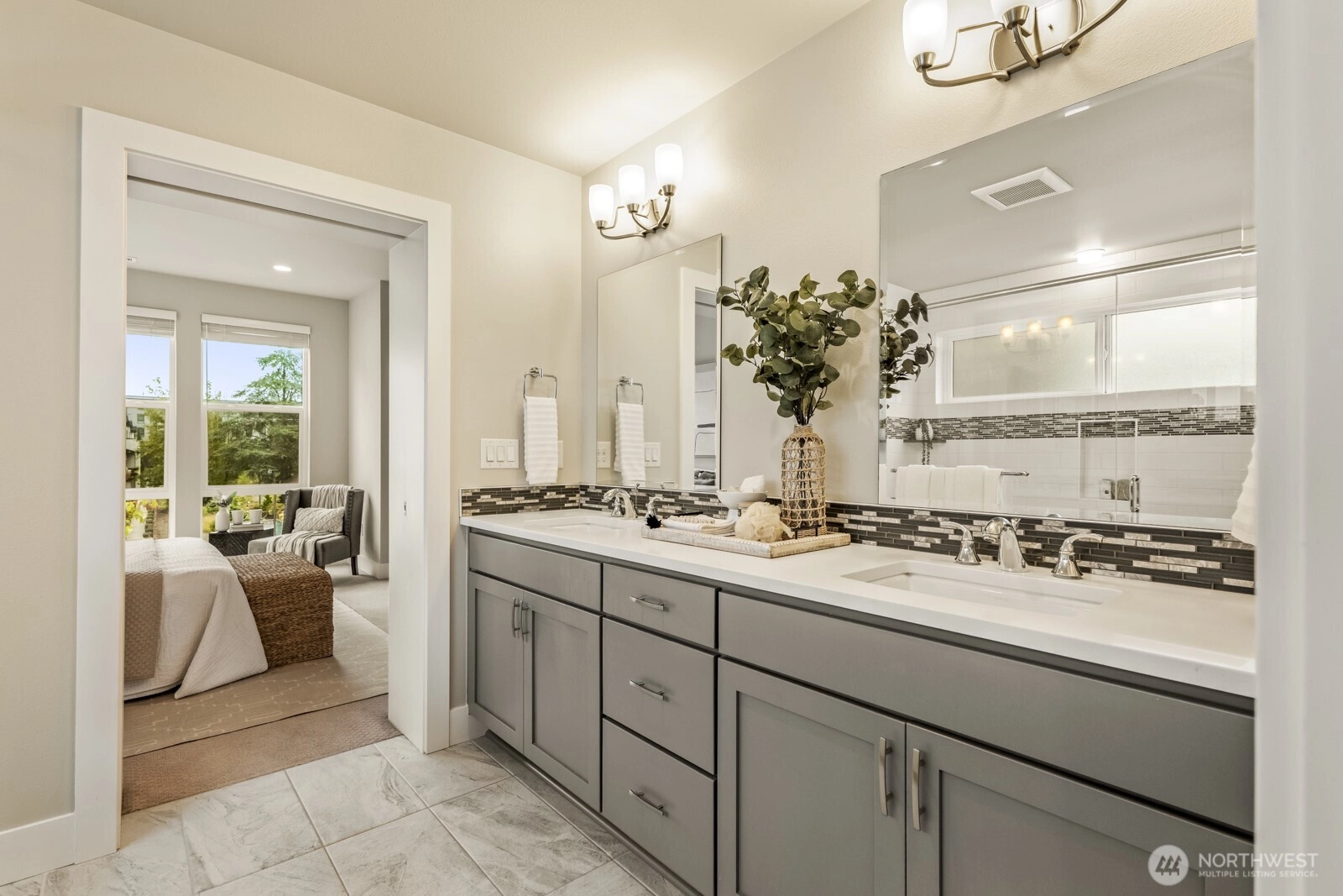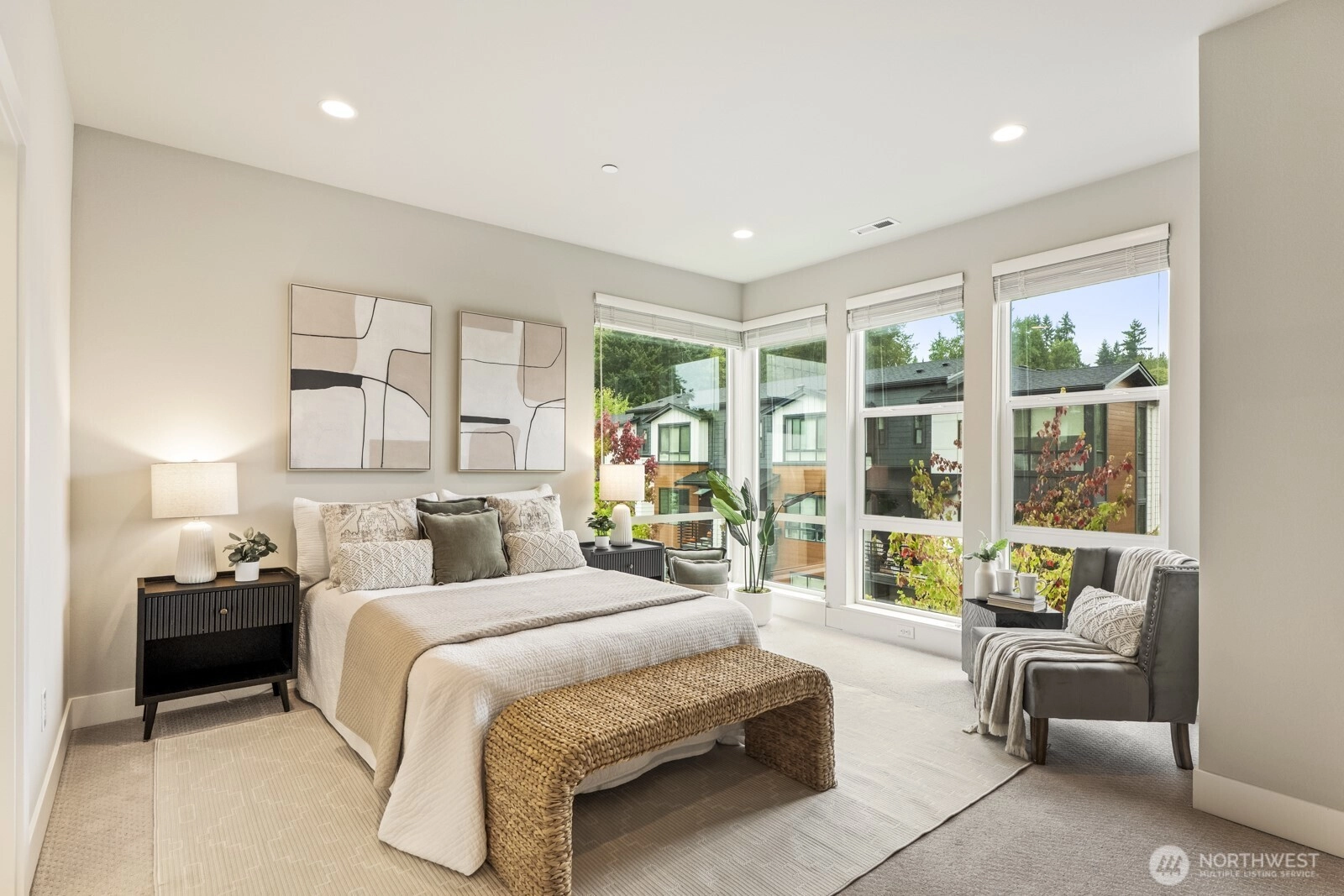 This stunning corner townhome features soaring 9’ ceilings & floor-to-ceiling windows that flood the open-concept space w/ natural light. $30K in upgrades, incl a gourmet kitchen w/ premium appliances, quartz counters, central AC & a sleek tile-wrapped gas fireplace. Desirable main-floor ensuite, spa-like primary suite w/ spacious dual shower & walk in closet AND a private covered balcony. Steps away from dining, parks & trails, incl the Burke Gilman plus a 2-car garage. Uniquely positioned corner unit is offset from other homes providing privacy & unobstructed views. Nestled in the heart of downtown Bothell in the desirable Northshore School District w/ convenient access to Bellevue & Seattle, it is truly a move-in-ready urban sanctuary!