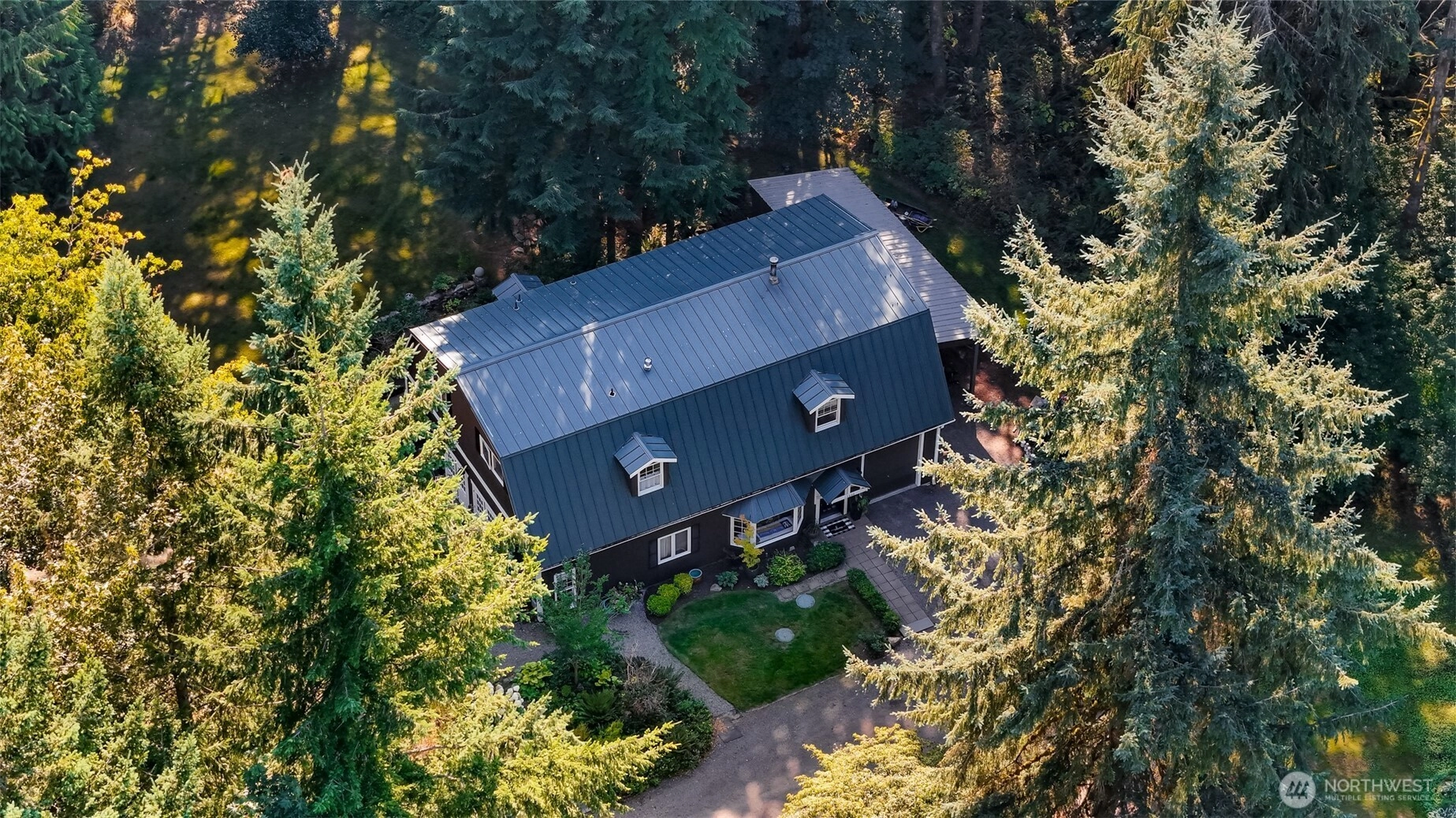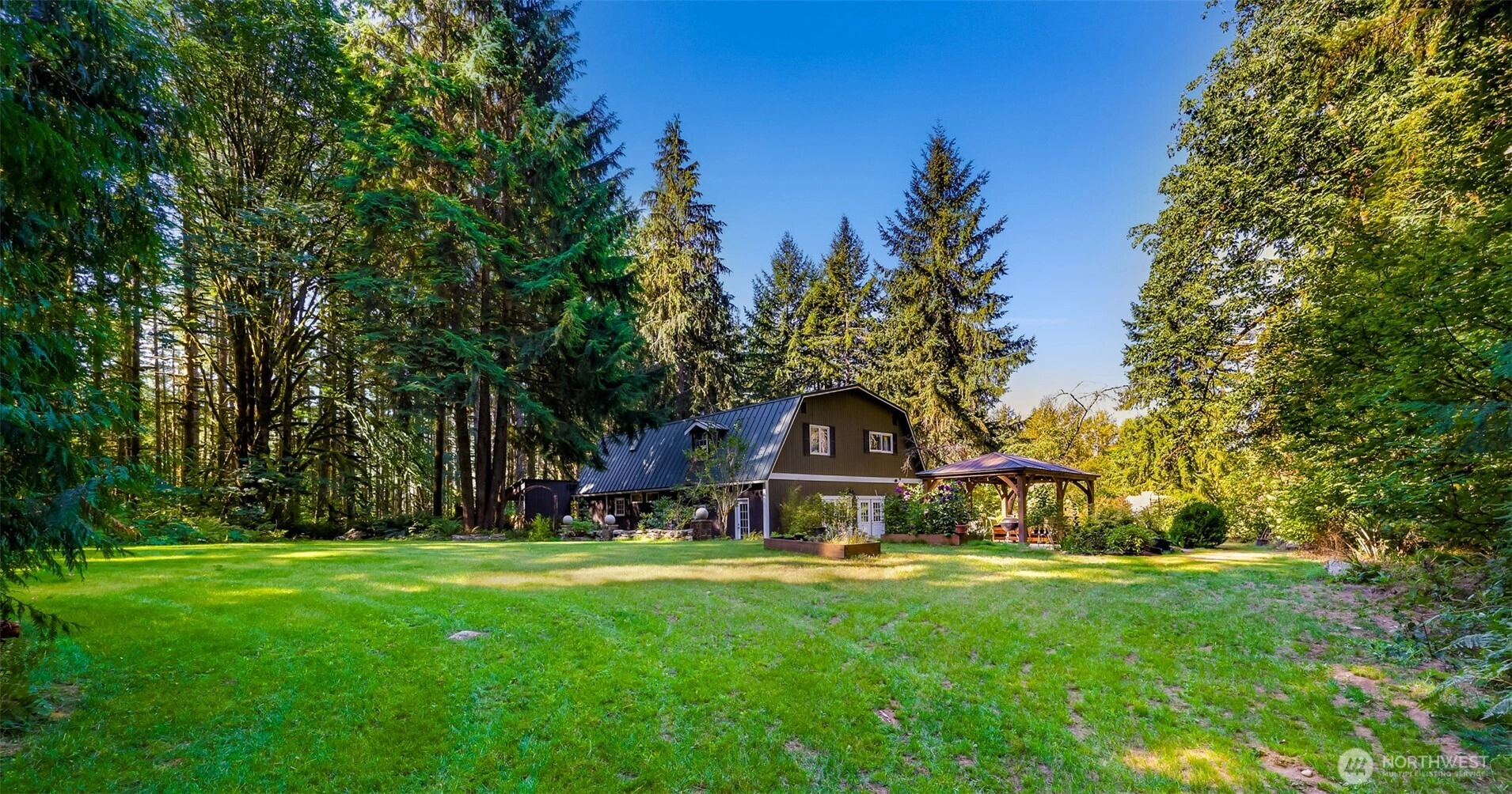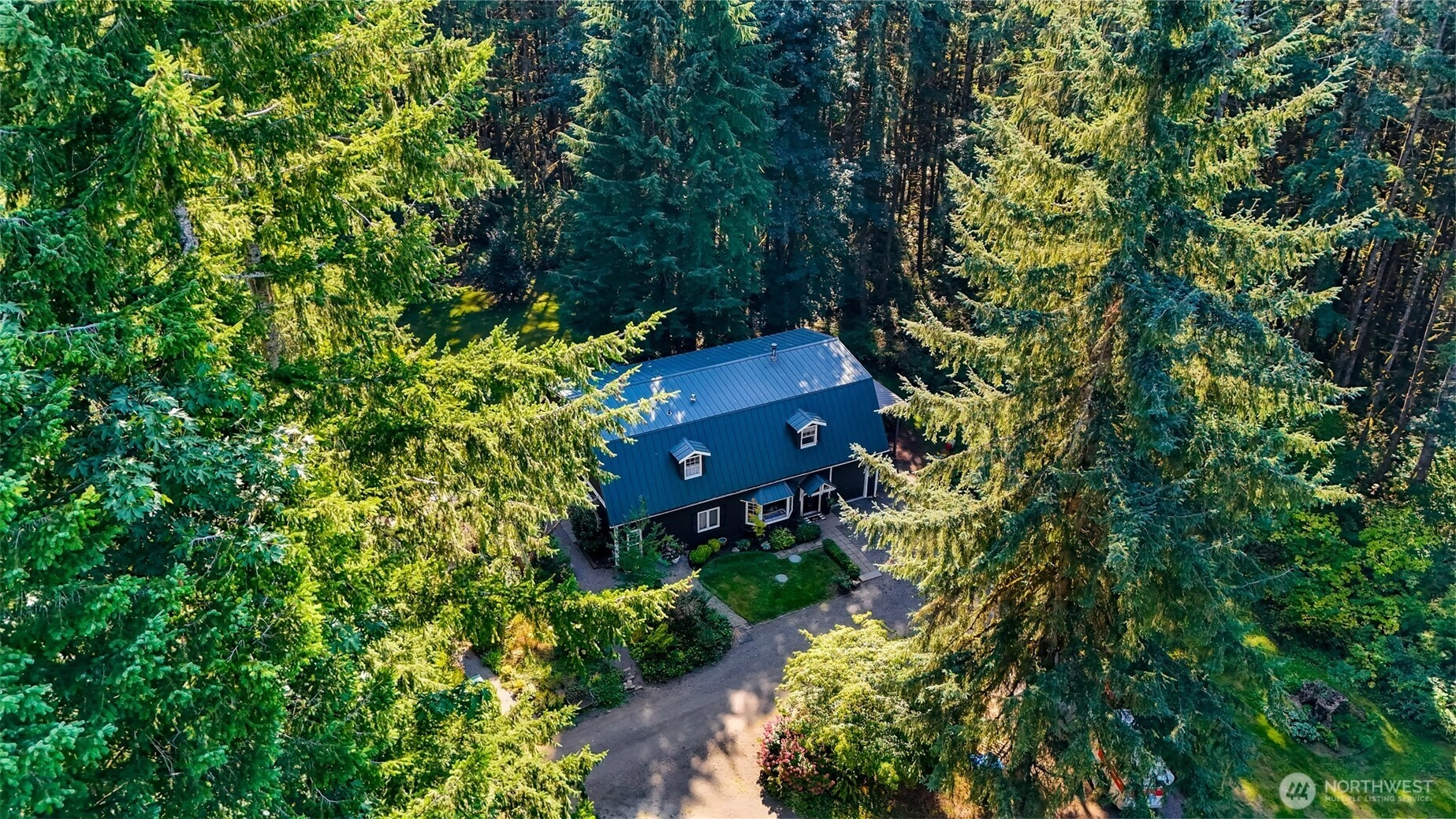 Welcome to this enchanting 4.8-acre estate, featuring stunning English gardens & custom-built 2710sqft NW home. First time on the market, this residence exudes warmth & character. The inviting main level showcases updated gorgeous chef’s kitchen, spacious great room w/soaring beamed ceilings & fireplace, bedroom, full bath, laundry. Upstairs, 3 generous bedrooms, beautifully remodeled bath w/heated floors & loft. Gorgeous flooring flows throughout, enhancing the home’s natural charm. Outdoor living w/covered patios, chicken coop, garden spaces. Large garage/shop with additional carport & RV hookups. With a durable metal roof, space for a potential ADU, & serene garden paths, this property offers rare privacy, beauty & endless possibilities.