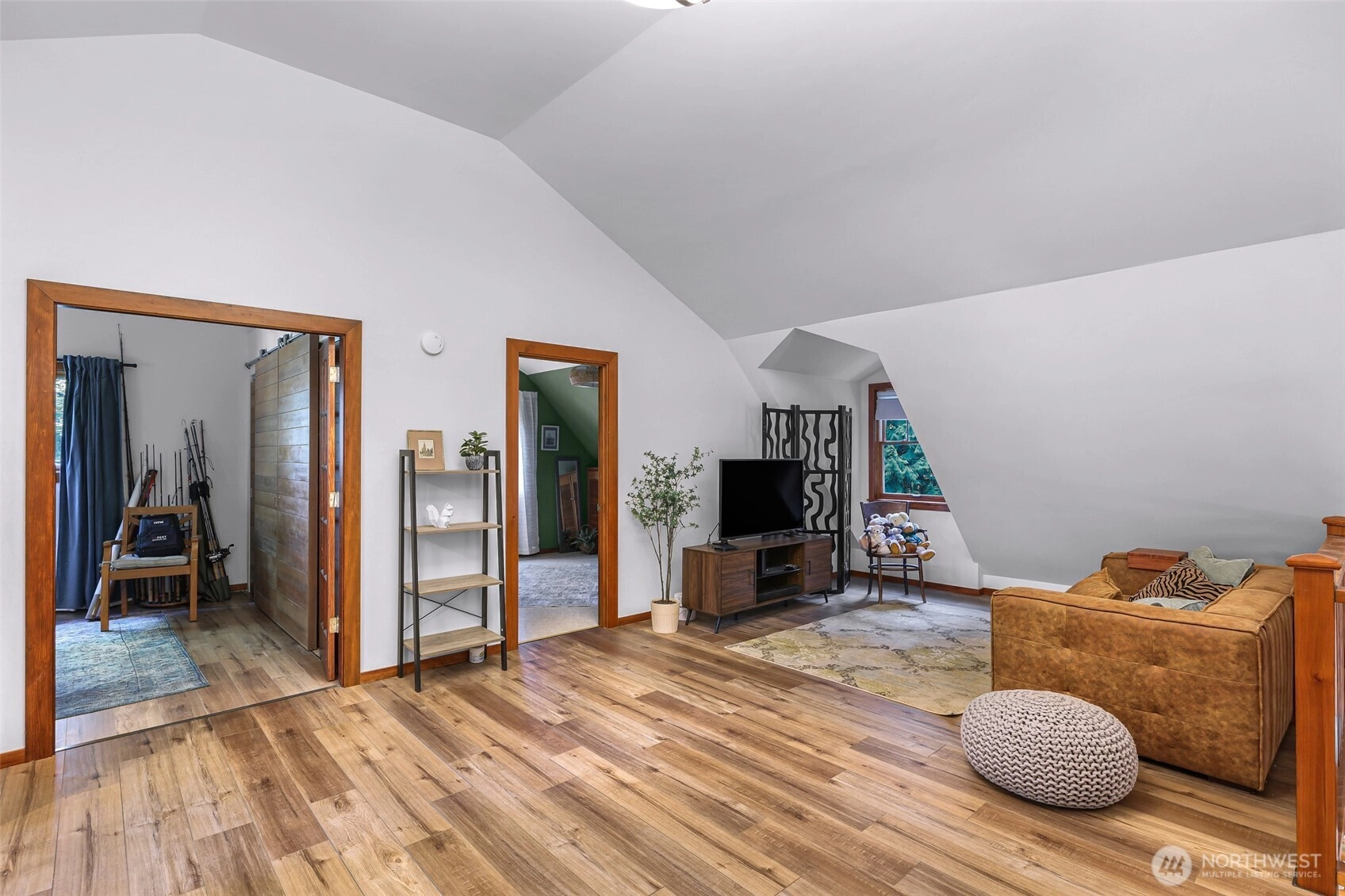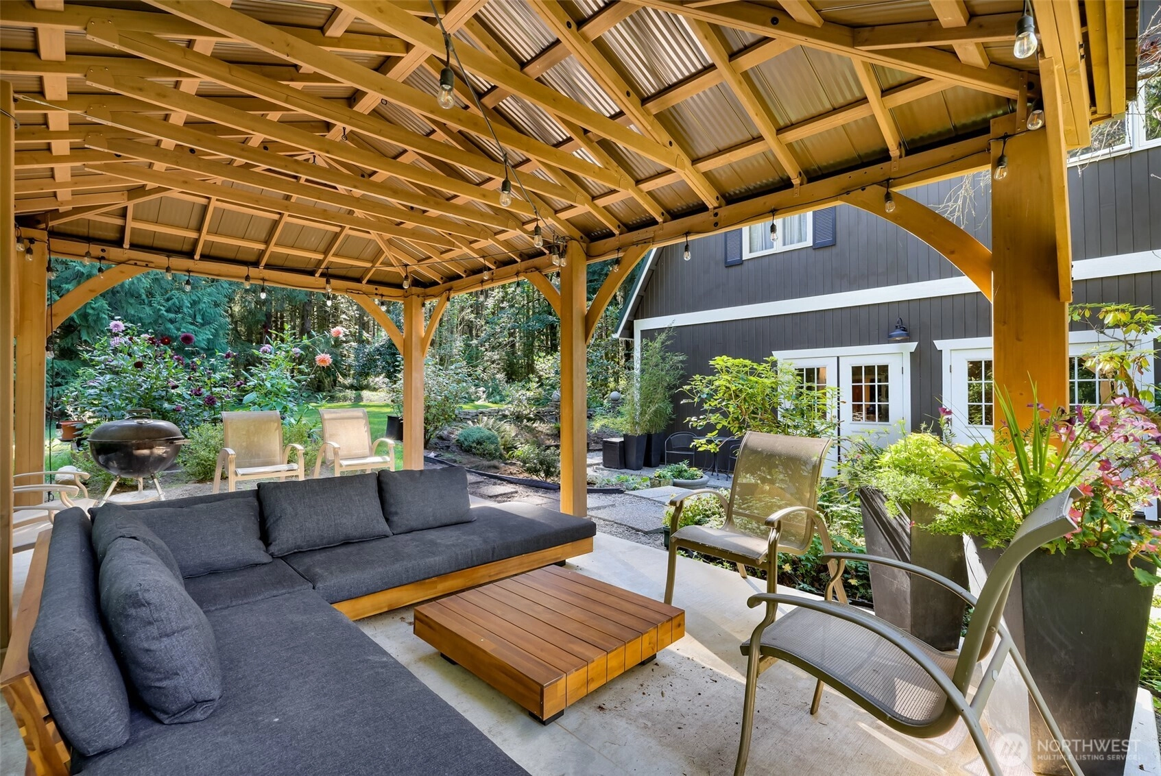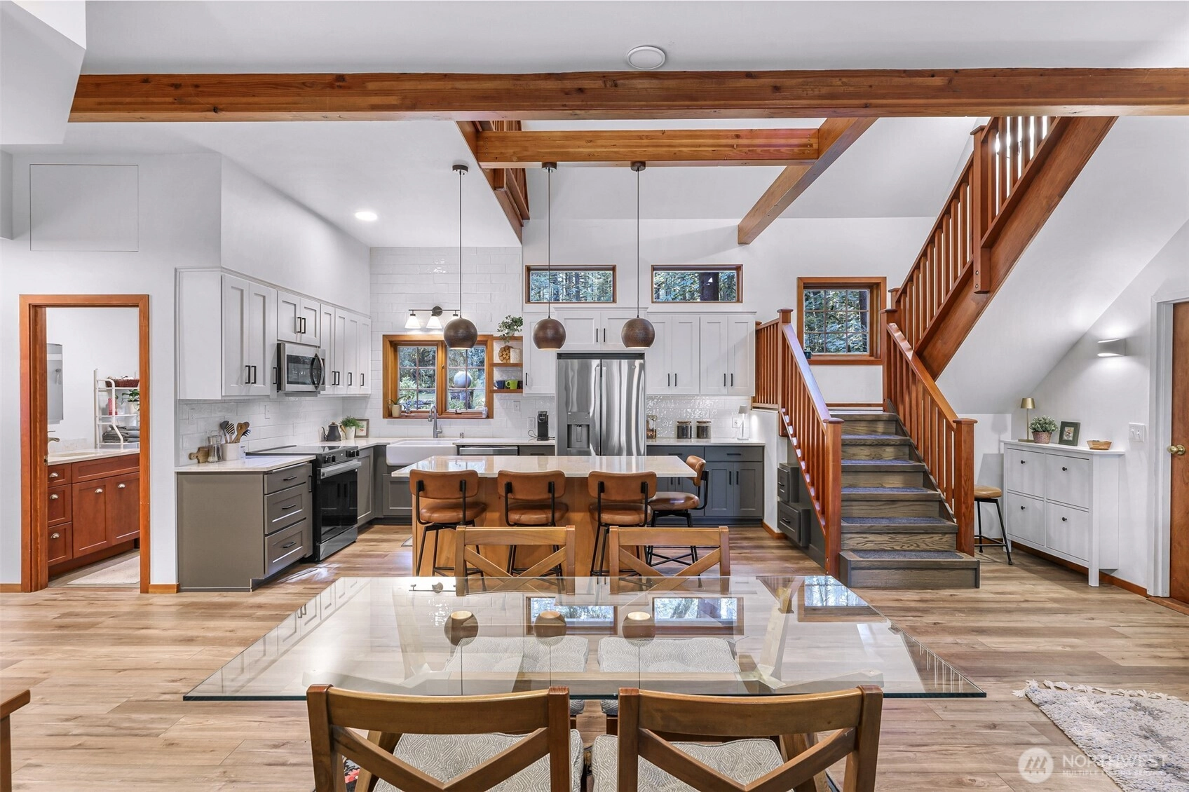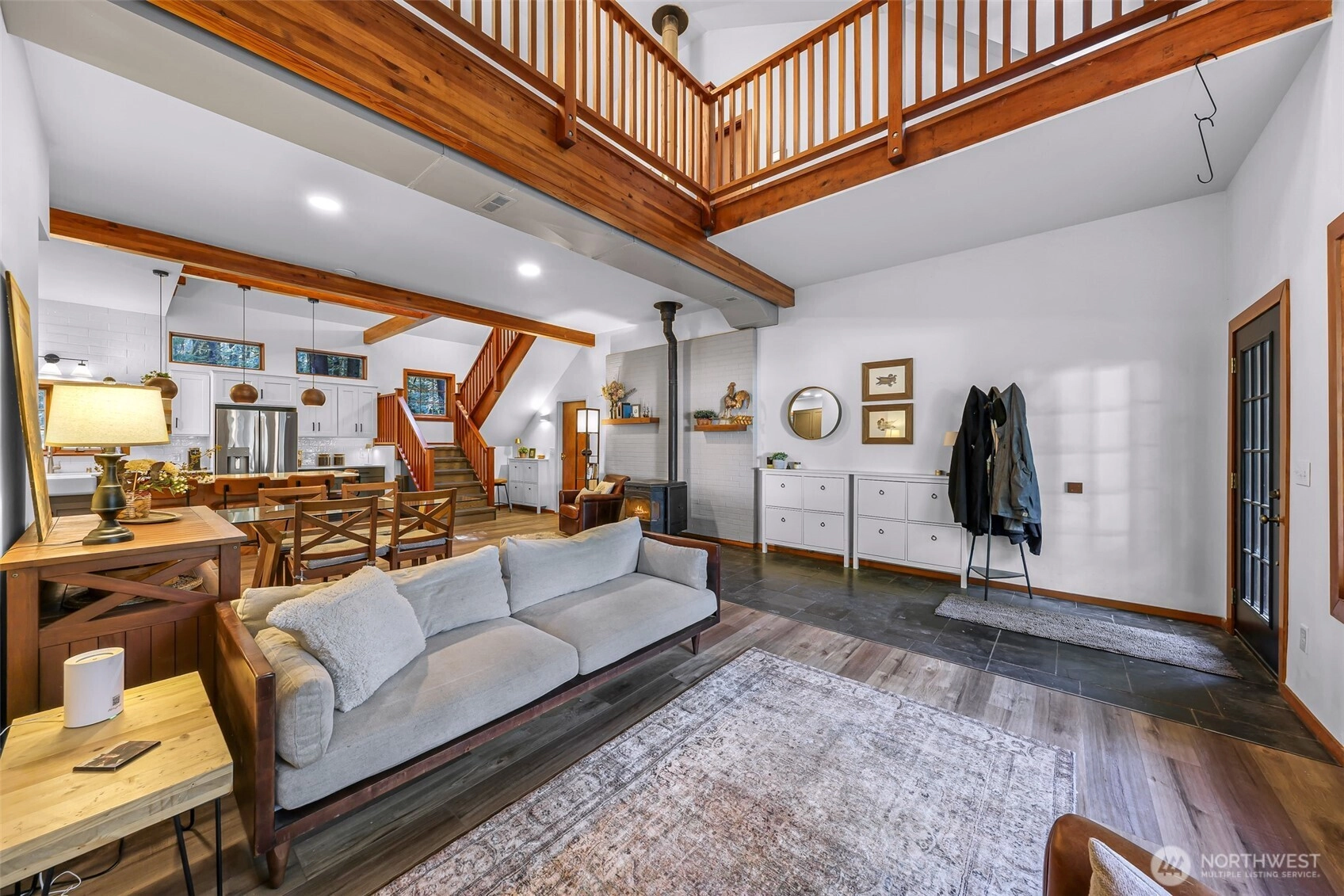 Welcome to this enchanting 4.8-acre estate, featuring stunning English gardens & custom-built 2710sqft NW home. First time on the market, this residence exudes warmth & character. The inviting main level showcases updated gorgeous chef’s kitchen, spacious great room w/soaring beamed ceilings & fireplace, bedroom, full bath, laundry. Upstairs, 3 generous bedrooms, beautifully remodeled bath w/heated floors & loft. Gorgeous flooring flows throughout, enhancing the home’s natural charm. Outdoor living w/covered patios, chicken coop, garden spaces. Large garage/shop with additional carport & RV hookups. With a durable metal roof, space for a potential ADU, & serene garden paths, this property offers rare privacy, beauty & endless possibilities.