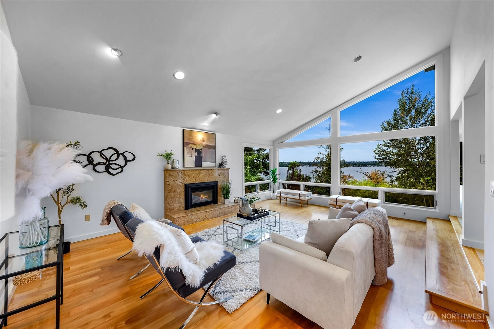 Welcome to this one-of-a-kind luxury waterfront home featuring unobstructed 270° lake views w/private 100'dock with picnic area. Fully remodeled throughout, the home showcases chef’s kitchen|Wolfe french cooking range|Miele app,steam oven|plate warming drawer, 4burner range, private wine cellar, & custom cabinetry w/pull-out storage. Modern design elements include floating stairs,expansive windows, new blinds, custom fireplaces & counters, heated floors, new interior & exter paint, updated electrical, new furnace, heat pump, metal roof, etc. The upper level offers a private primary retreat with a spa-inspired bath & steam room. With too many upgrades to list, this home is a must-see-be sure to review the attached features for full details.