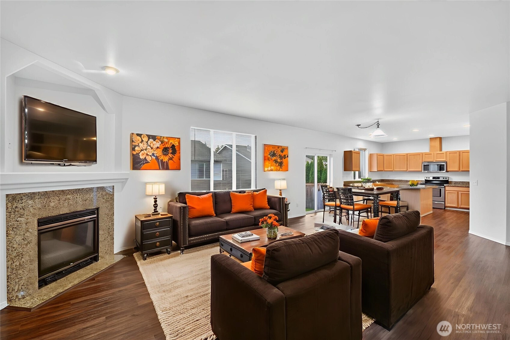 Fantastic opportunity to own expansive 3000+sqft home in the highly sought after Outlook Ridge community! Light & bright w/flowing floorplan, this exquisite gem will leave you wanting for nothing! Main floor features open concept kitchen & living room, w/grand fireplace, recessed lighting, & LVP flooring thru-out. Generously sized den & formal dining area provide functional & versatile living space. Upstairs primary suite is equipped w/private 5-piece bath & walk-in closet, plus sizable bedrooms & flexible bonus room; perfect for work or play! Low-maintenance back yard provides ideal space for sunny outdoor gatherings. Easy access to I-5, Hwy 9, & Mill Creek Town Center; and nearby parks, walking trails, & top-rated schools. Welcome!