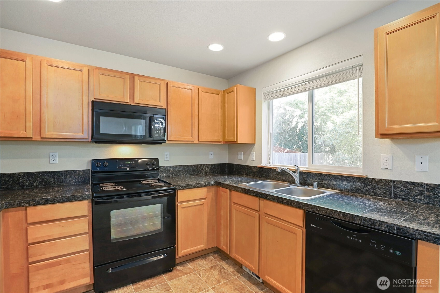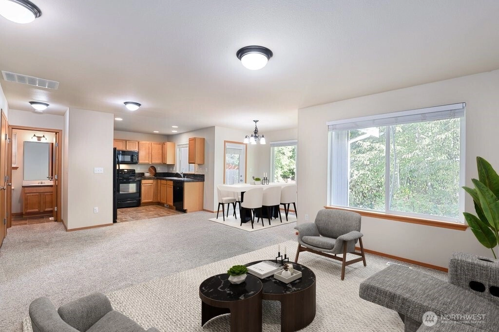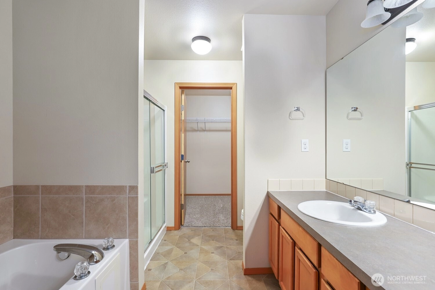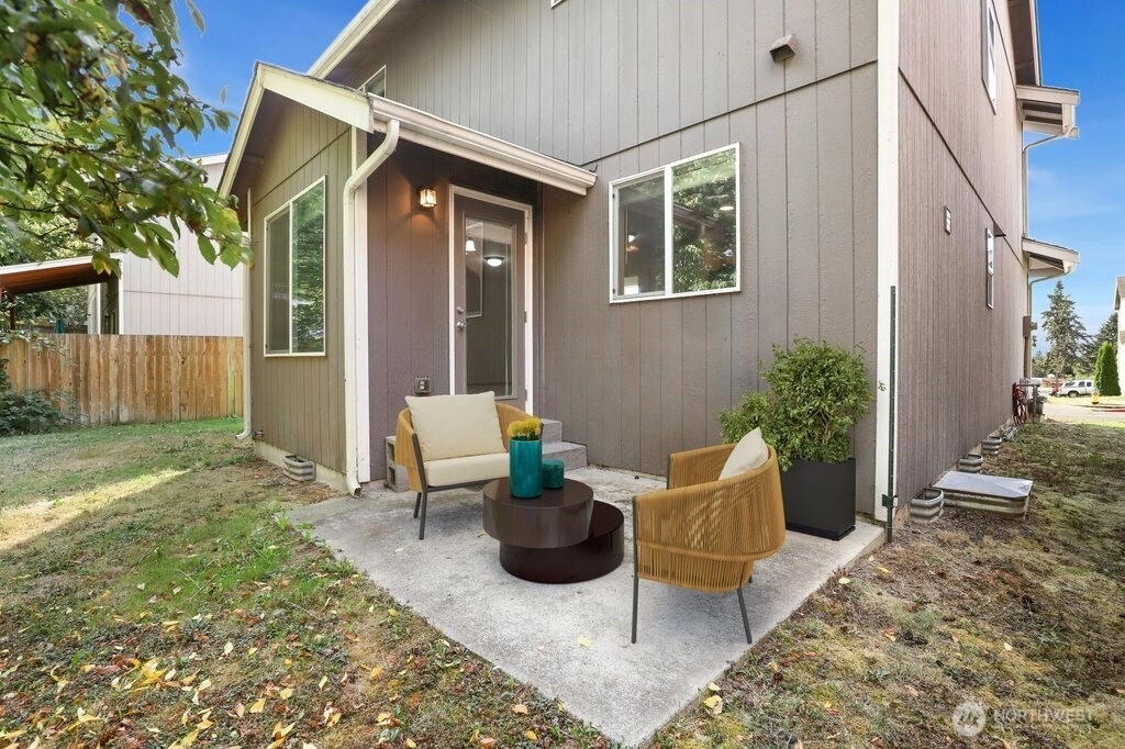 This charming two-story home offers a perfect blend of comfort and functionality. Enjoy a fully fenced, low-maintenance, mostly shaded backyard with a patio—ideal for relaxing or entertaining. The main level features a bright open-concept kitchen, dining nook with patio access, spacious living area, and a convenient half bath. Upstairs, find three bedrooms and a laundry room for added ease. The primary suite boasts a walk-in closet and private ensuite with a separate soaker tub and shower. Two additional bedrooms share a stylish Jack-and-Jill bath with dual vanity. Complete with a two-car garage and tasteful, neutral finishes throughout, and a convenient East Bremerton location, this home is move-in ready!