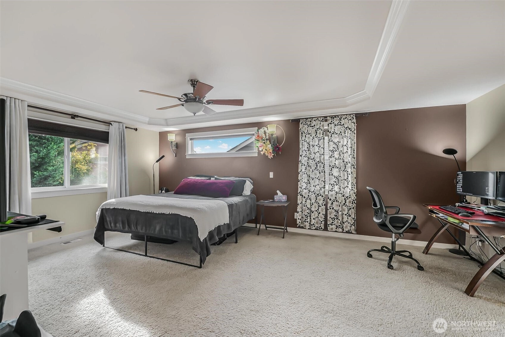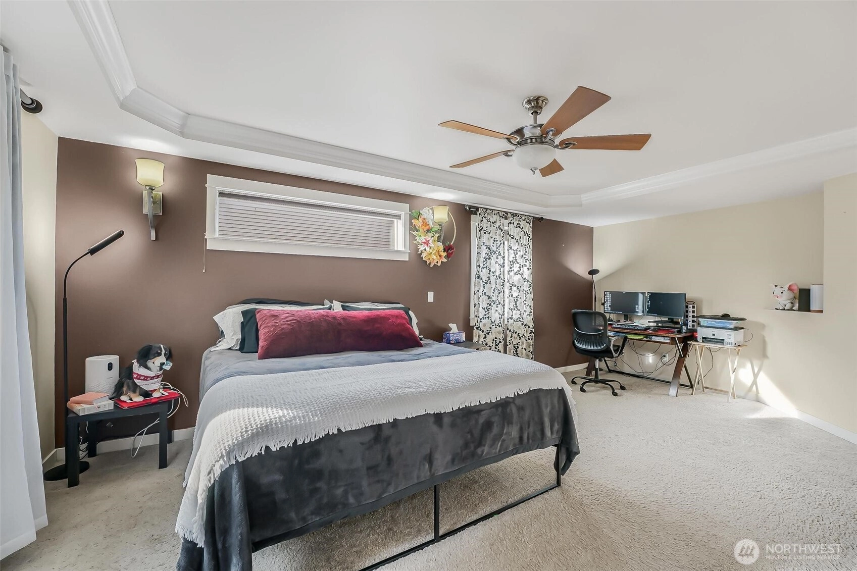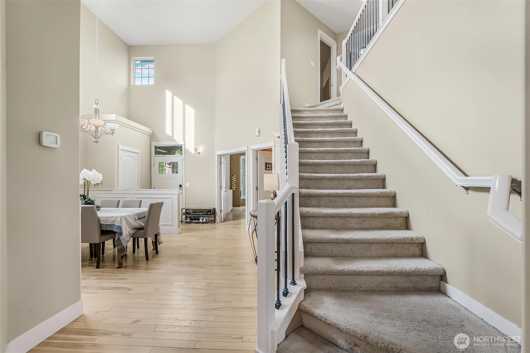 Beautiful two-story home in sought-after Rebecca Ridge! This spacious residence features an open floor plan with a great room just off the kitchen, ideal for entertaining. The dining room boasts soaring vaulted ceilings, while the kitchen shines with granite counters. A main level den with built-in cabinets offers the perfect office space. Upstairs, retreat to the primary suite with a 5 piece bath and custom walk-in closet. Enjoy a large bonus/media room, bedrooms are very spacious, and convenient second-floor laundry. Additional highlights include a 3-car garage, gas fireplace and step outside to a fully fenced backyard with fruit trees, perfect for relaxing and gardening. This Puyallup Home is everything you could ask for and more!
