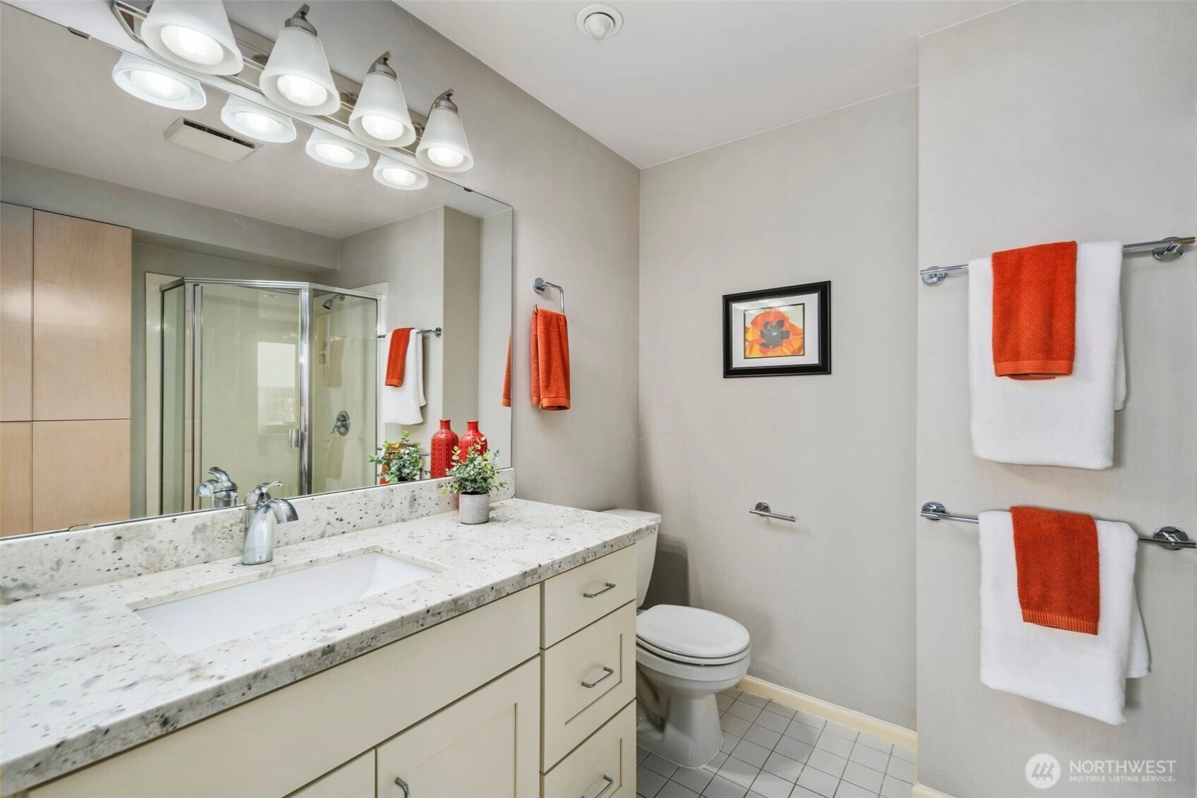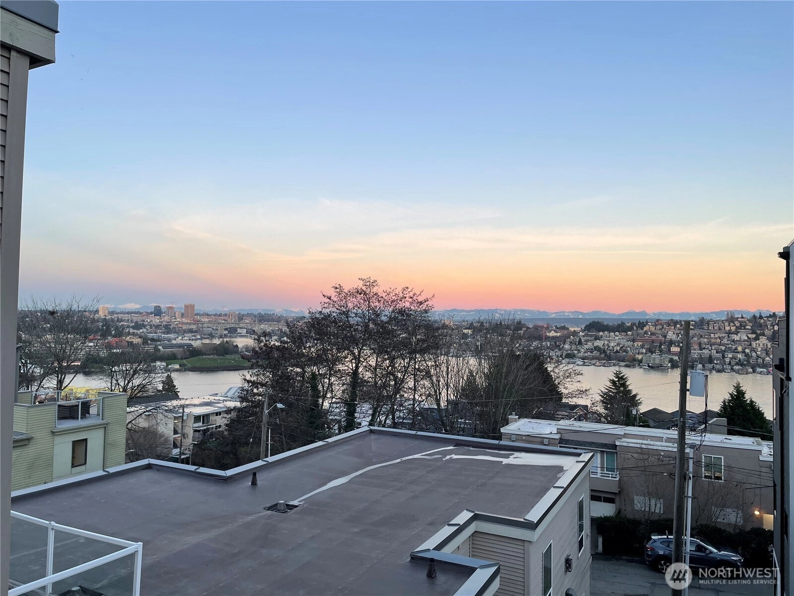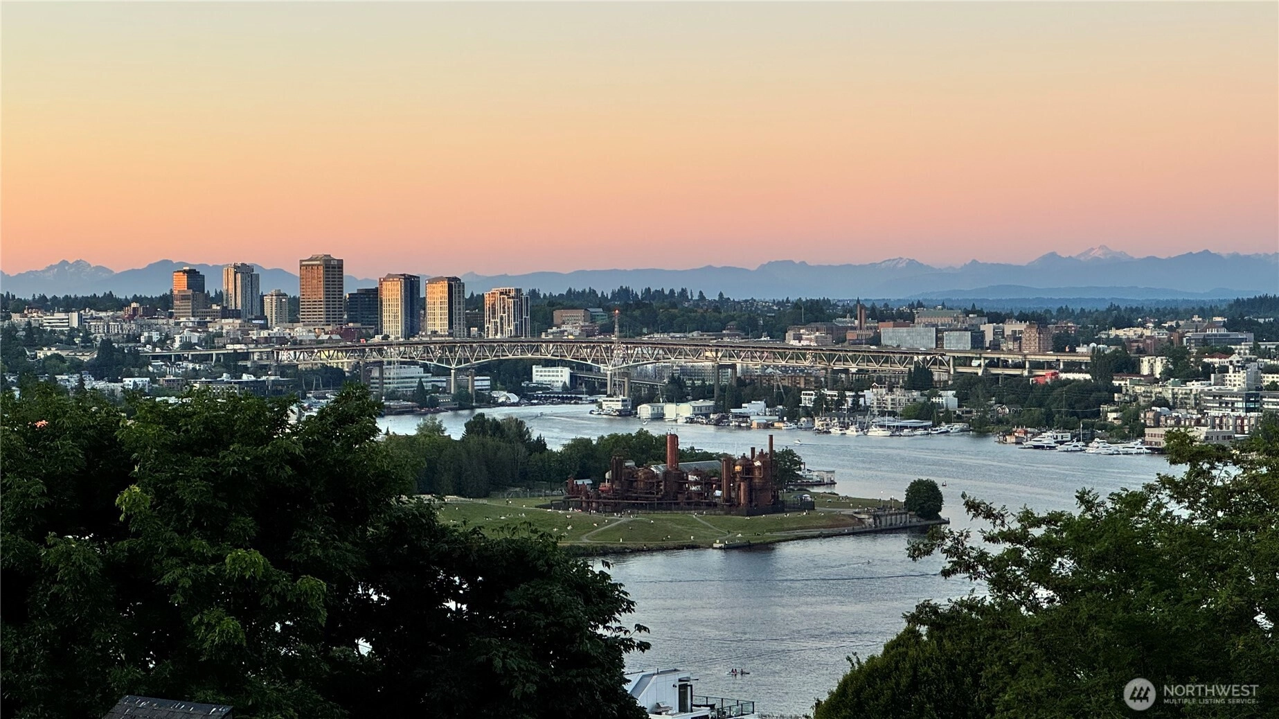 Top-floor living at its finest! This penthouse-style condo offers sweeping views of Lake Union, Gas Works Park & the Cascades—perfect for July 4th fireworks at home. Sunlight fills the open living & dining areas through picture windows, creating an inviting atmosphere all day. Rarely available, the 2-bed, 2.5-bath layout has two true primary suites—each with remodeled baths; one includes a private deck & walk-in closet. The updated kitchen with granite counters & SS appliances flows into the view-filled living room anchored by a cozy fireplace. With secure parking, a rooftop deck & well-run HOA, this pet-friendly condo delivers convenience & unforgettable views minutes from DT Seattle & highways.