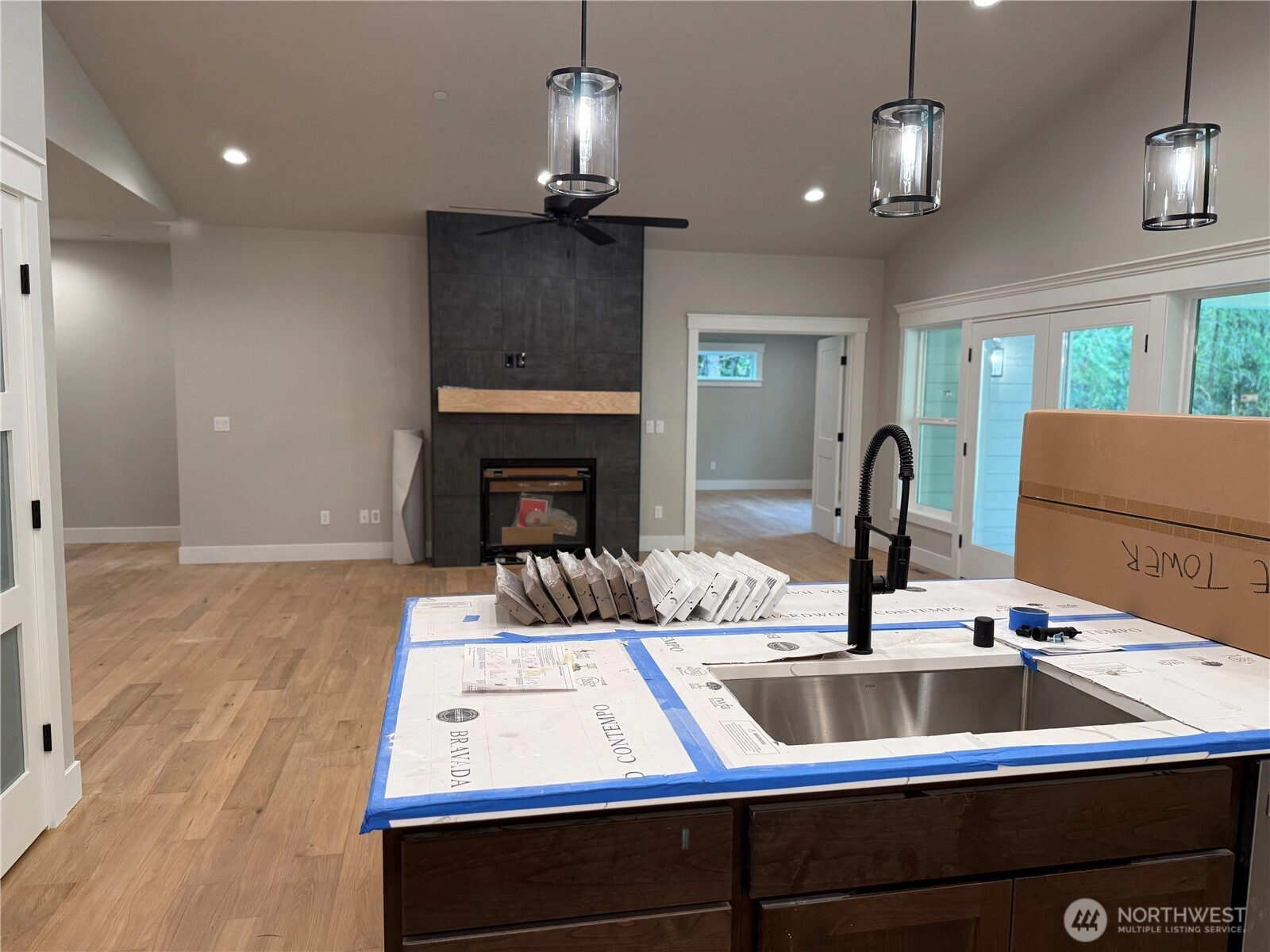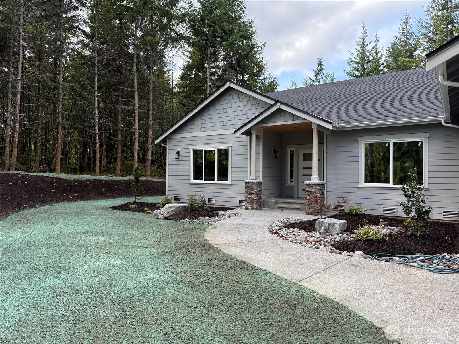 Brand new 2462 sq ft open concept rambler built by Eagle Homes on 4.51 acres, in a gated neighborhood w/paved roads. Home features 3 bedrooms 2.5 bath, den/office, plus large bonus room and 3 car garage. Vaulted ceilings, gas fireplace, forced air heating w/heat pump, fully wrapped windows, great lighting throughout, lots of storage, painted mill work, hard wood floors and tile floors, large laundry room w/sink and cabinets. Gourmet kitchen w/quartz counter tops, SS appliances including a 36" gas professional range plus built in electric wall oven, cabinet lighting. Fully landscaped yard. Large covered patio makes enjoying the outdoors possible all year! Individual well and gravity septic. Ready in 10 days! Lots of room to build a shop.