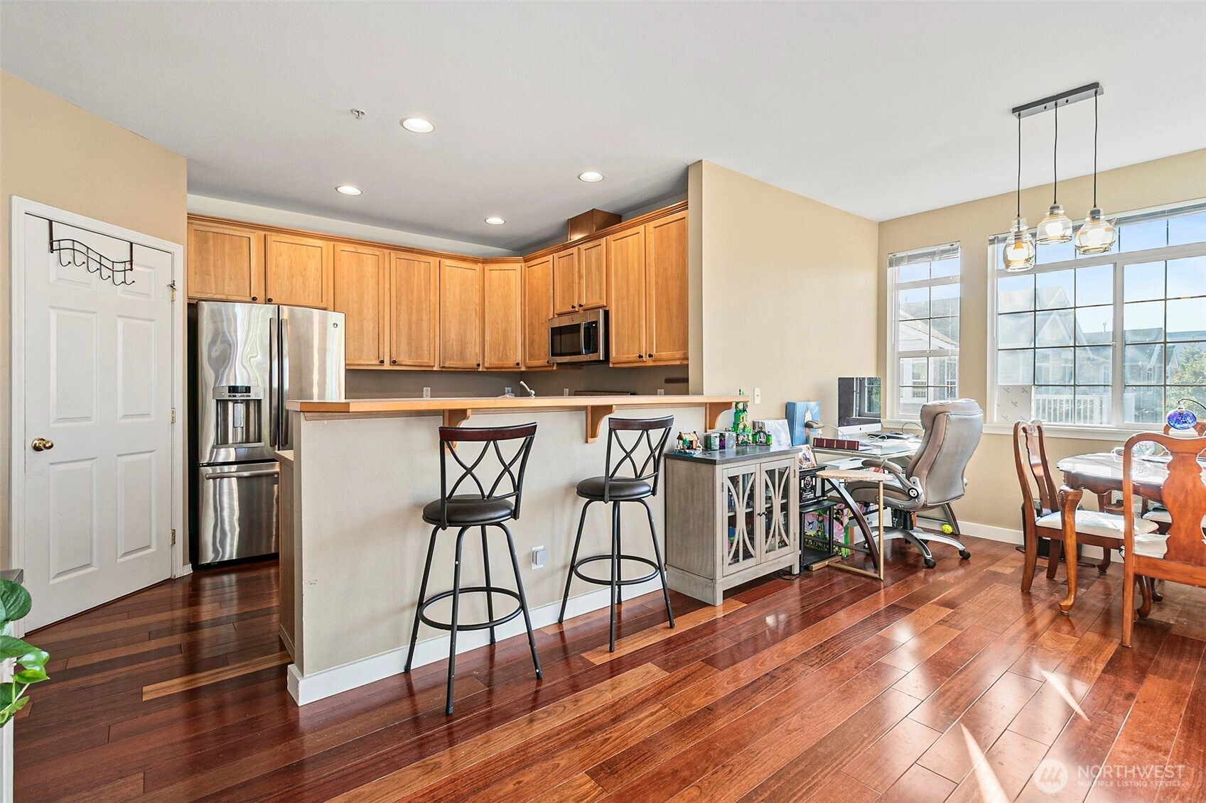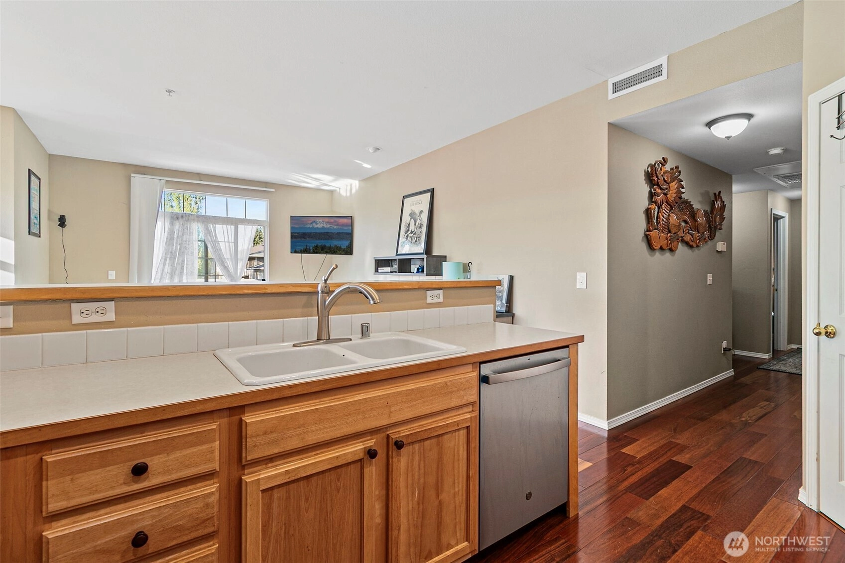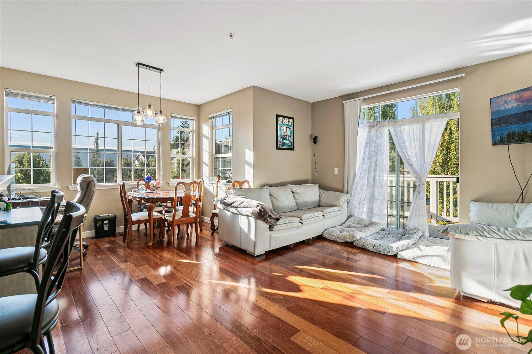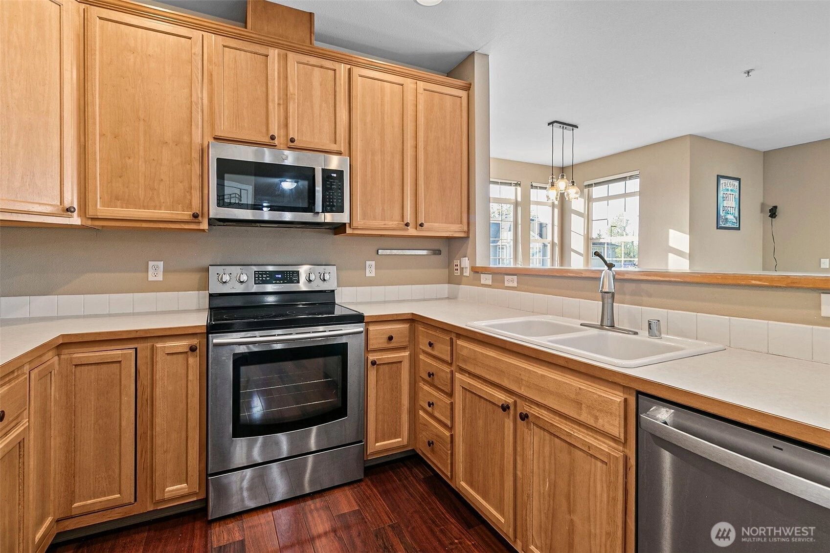 Enjoy the ease of low-maintenance living in this charming 2-bedroom, 2-bathroom condo in the heart of Fife! Step inside and feel instantly at home with beautiful hardwood floors that flow throughout the main living spaces. Large windows fill the home with an abundance of natural light. The open layout adds to this home's airy relaxed feel. The kitchen sparkles with stainless steel appliances, ample cabinetry, and generous counter space, while the balcony is perfect for morning coffee. An attached garage provides convenience, secure parking, and extra storage. Conveniently located within minutes of shopping, dining, the Fife Swim Center, and all the great activities Fife has to offer as well as quick and easy freeway access.
