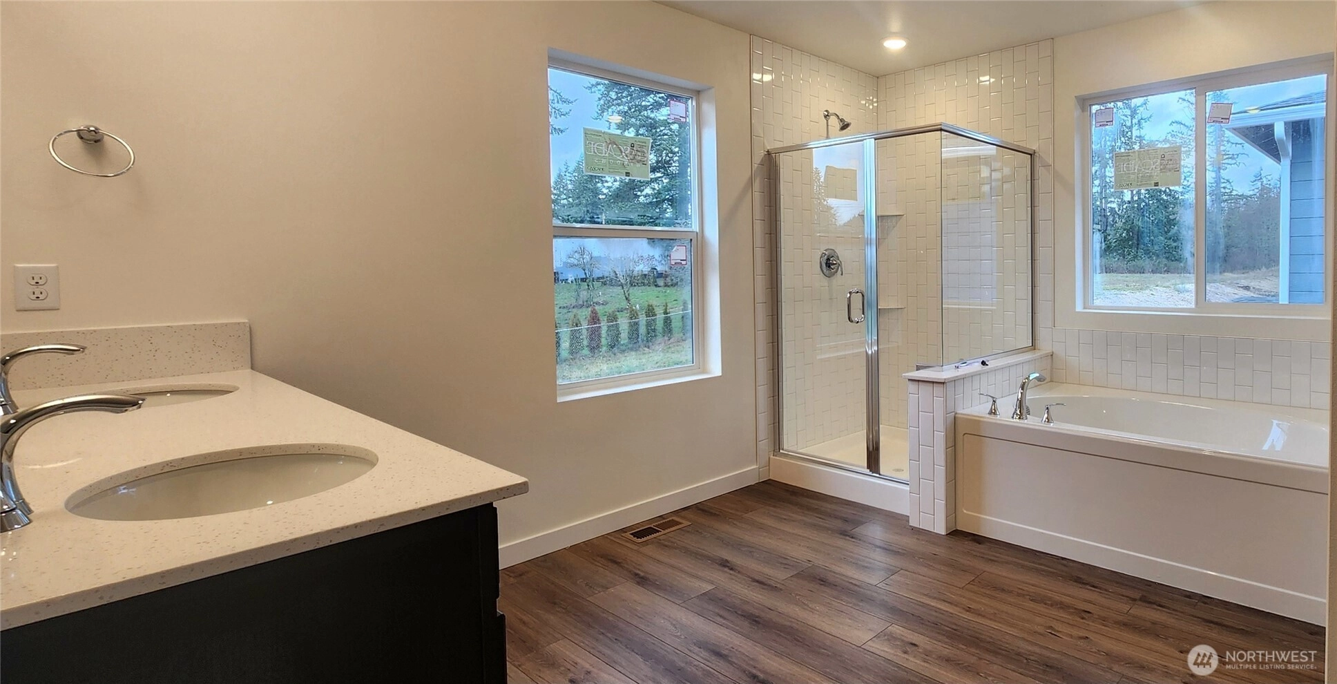 Welcome to Olympic Springs! Nearly Move in Ready! Some of the design options selected for this 2605 sq ft. home on Lot #3 w/layout choices include main floor bed/bath, electric fireplace, 9ft ceilings on main, spacious primary w/ensuite, covered back patio, exterior style & color. Additional features include white painted millwork, SS appliances, quartz countertops throughout, soft close cabinetry doors, LVP flooring at entry, kitchen, baths & laundry. Fenced & fully landscaped yard w/heat pump in these ENERGY STAR® certified homes. Easy access to I-5, State Capitol & JBLM, & outdoor recreation. Close to shopping, schools, medical, dining, Capital Mall & downtown Olympia.
