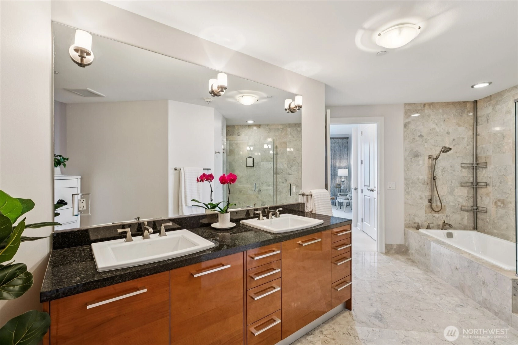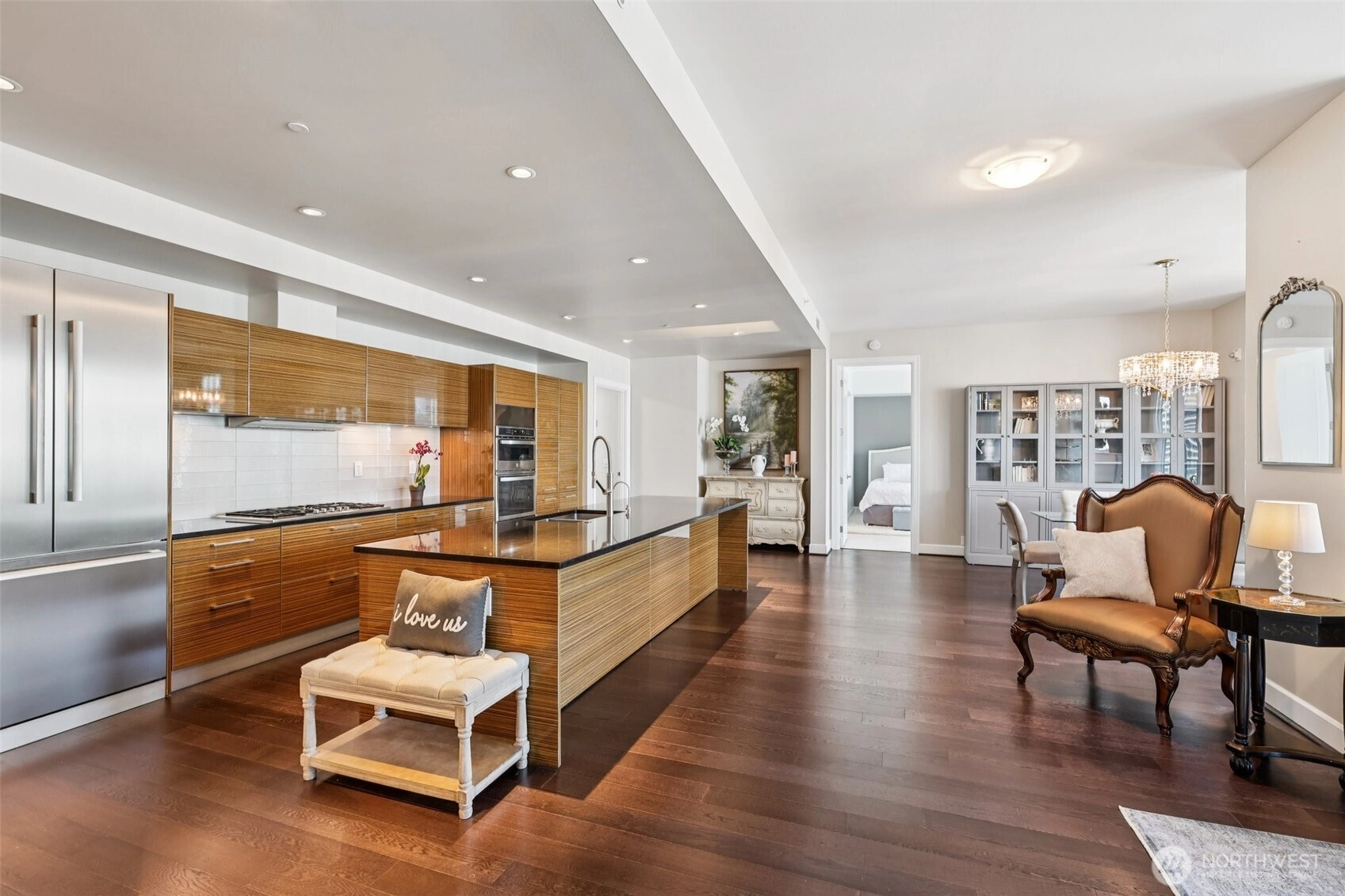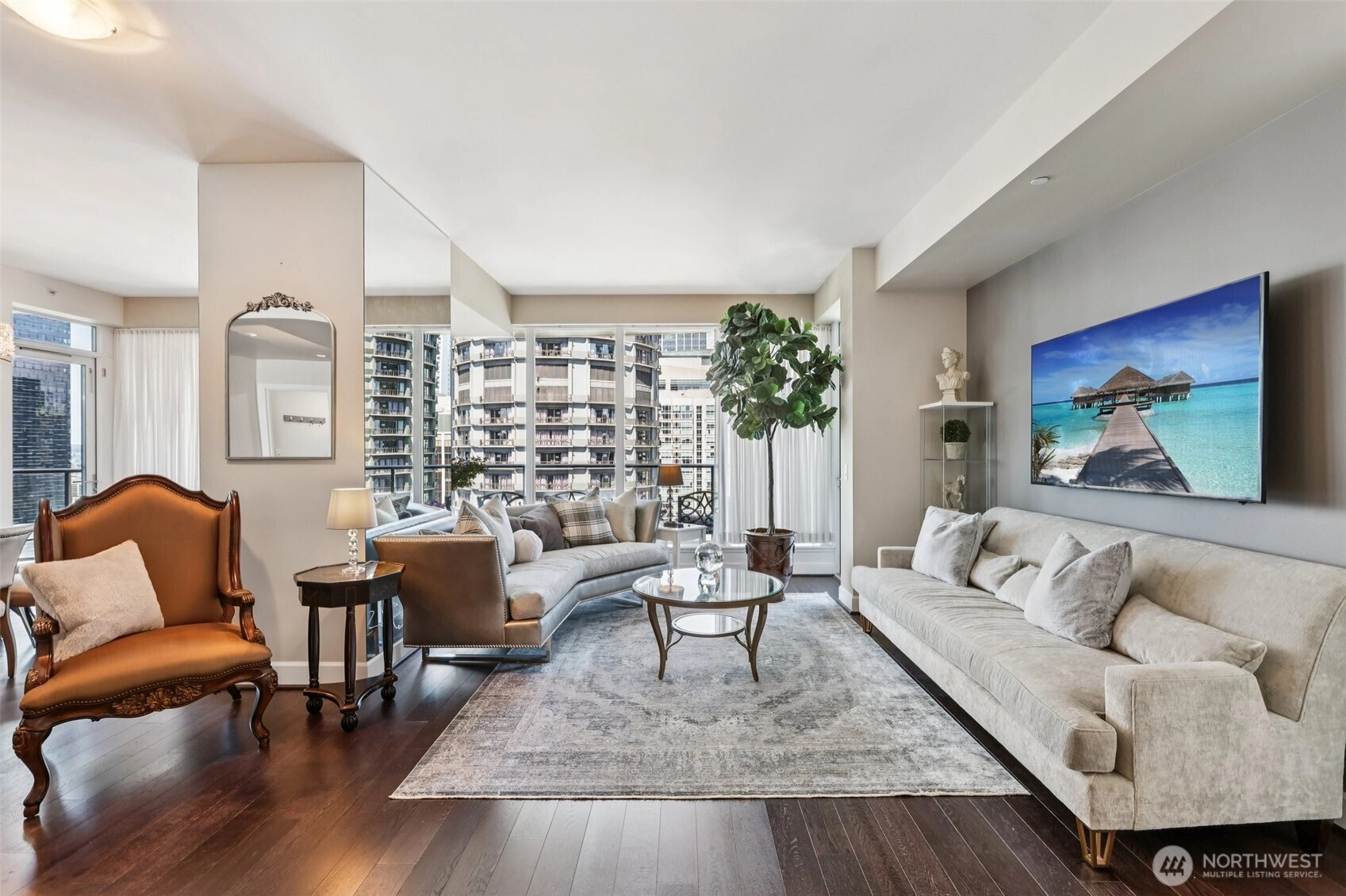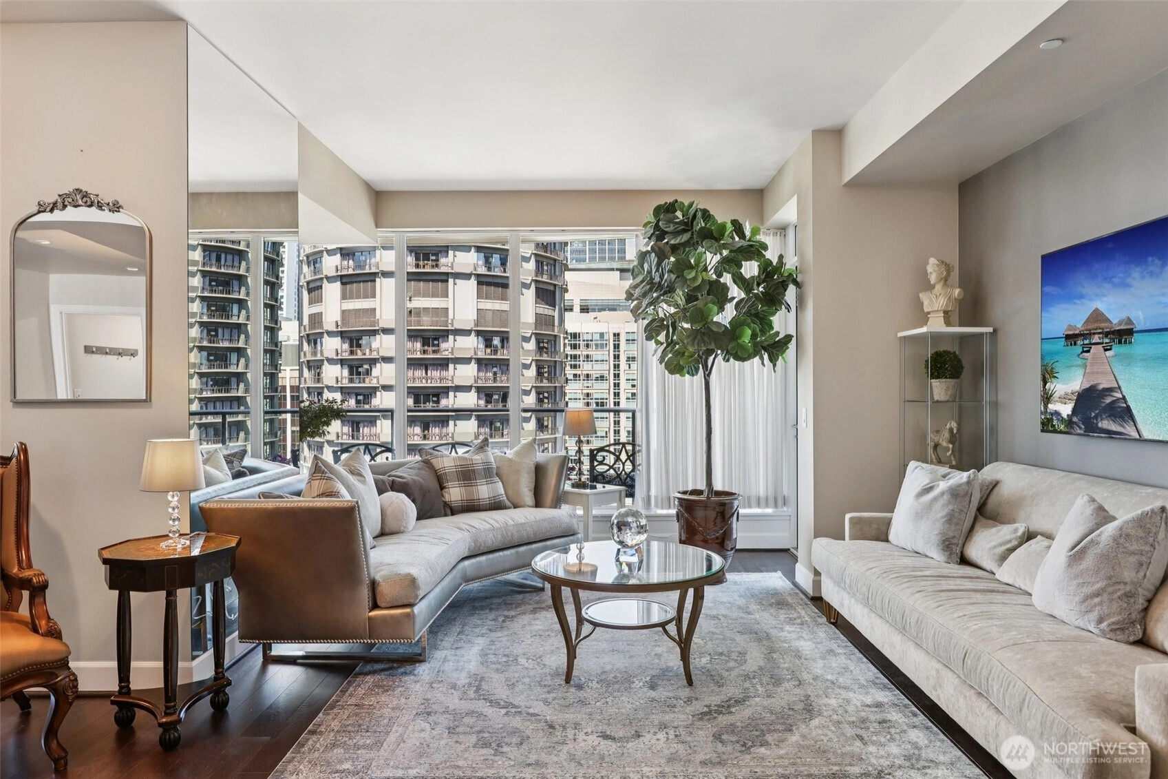 This is the life you have been waiting to live—a luxury condo in the heart of Seattle, every high-end amenity at your service, and a price you will never see again. Try beating this: nearly 1900 sf of living space, huge private deck, 2 parking spots, and your own private foyer from the elevator! (Only select condos in building have private foyers!) Also rare is huge walk-in closet and utility room. Amenities: 24/7 concierge, world-class gym, steam room, hot tub, resistance pools, yoga studio, theatre, business ctr, conference rooms, wine cave + tasting room, dog run, car wash, outdoor grills, and professional-grade kitchen w/event space. Over $10k in Swarovski crystal lights, new paint and appliances, and mountains of love. Welcome home.