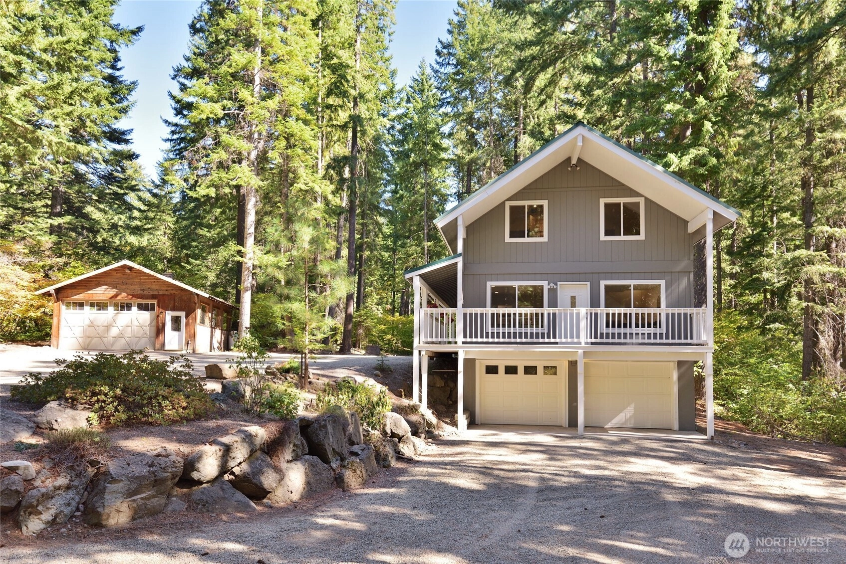 Lake Cle Elum Retreat! GATED private mountain escape 1+acres property, across the street from community lake access. Open main floor features stunning new kitchen, quartz counters seamlessly up the full backsplash, farmhouse sink, double-headed faucet/pot filler, & dual-fuel convection/propane oven chef dream Primary Ensuite ¾bath. Upgrades include new paint, flooring, remodeled baths, wood vanity & exposed beams. Upstairs oversized bedrooms, bunk/rec room, & 5-piece bath; lower level heated garage/workshop. Enjoy detached garage, storage, bunkroom, wraparound porch, & hot tub. Sleeps 10-14, snowmobiling, hiking, boating, & ORV, Year-Round access!