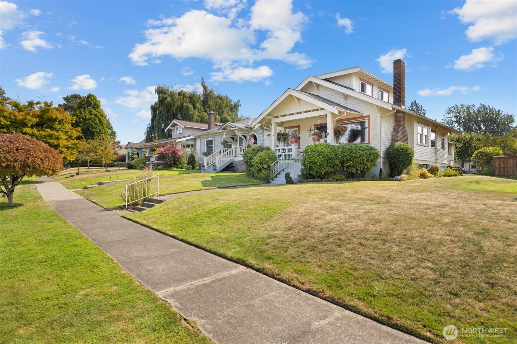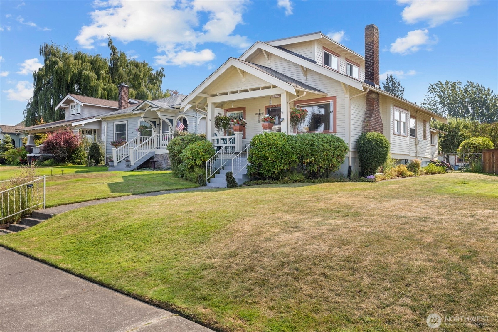 This charming Craftsman home is located just 2 blocks from Broadway Park and Cornwall Park and within walking distance to Haggens, all schools in the attendance area, and local dining. Nestled on a quiet, "emergency-vehicle quiet zone" street, this well-maintained home boasts original character alongside a permitted addition, featuring a spacious family room and 3/4 bath. The open layout includes a generous living room with a beautiful wood-burning brick fireplace, a dining room that seats 10+, and a large kitchen, which is open to the family room. The family room addition would also make a lovely primary suite with the addition of a closet. Enjoy a 2-car garage, additional alley parking, and RV access. A truly loved and inviting property!