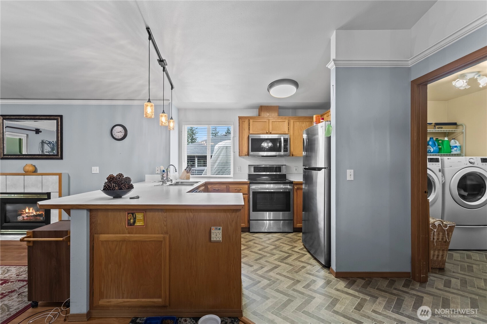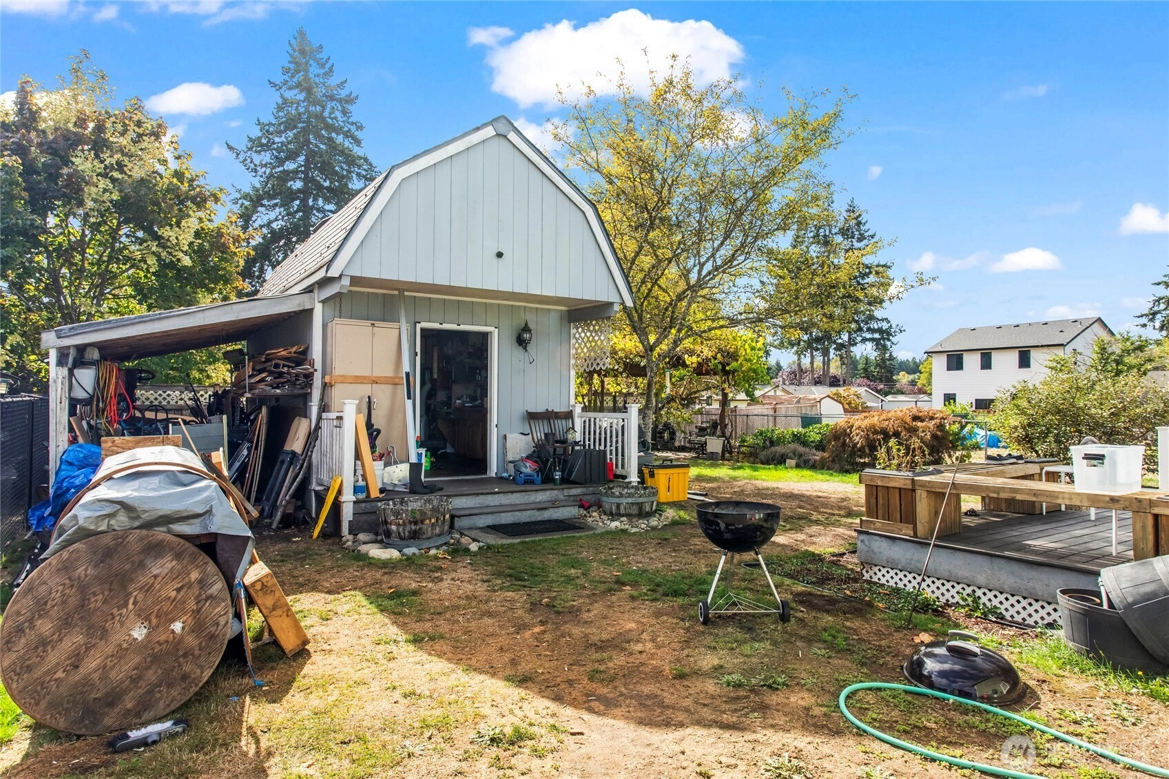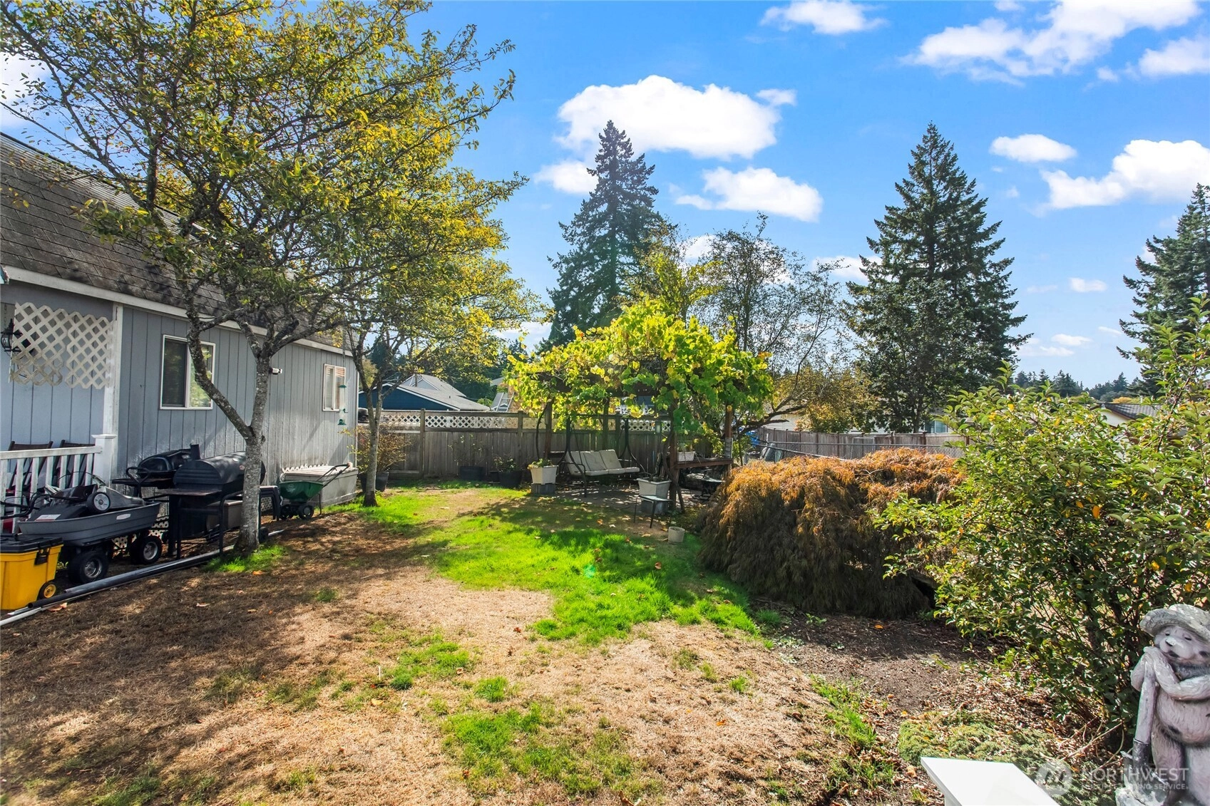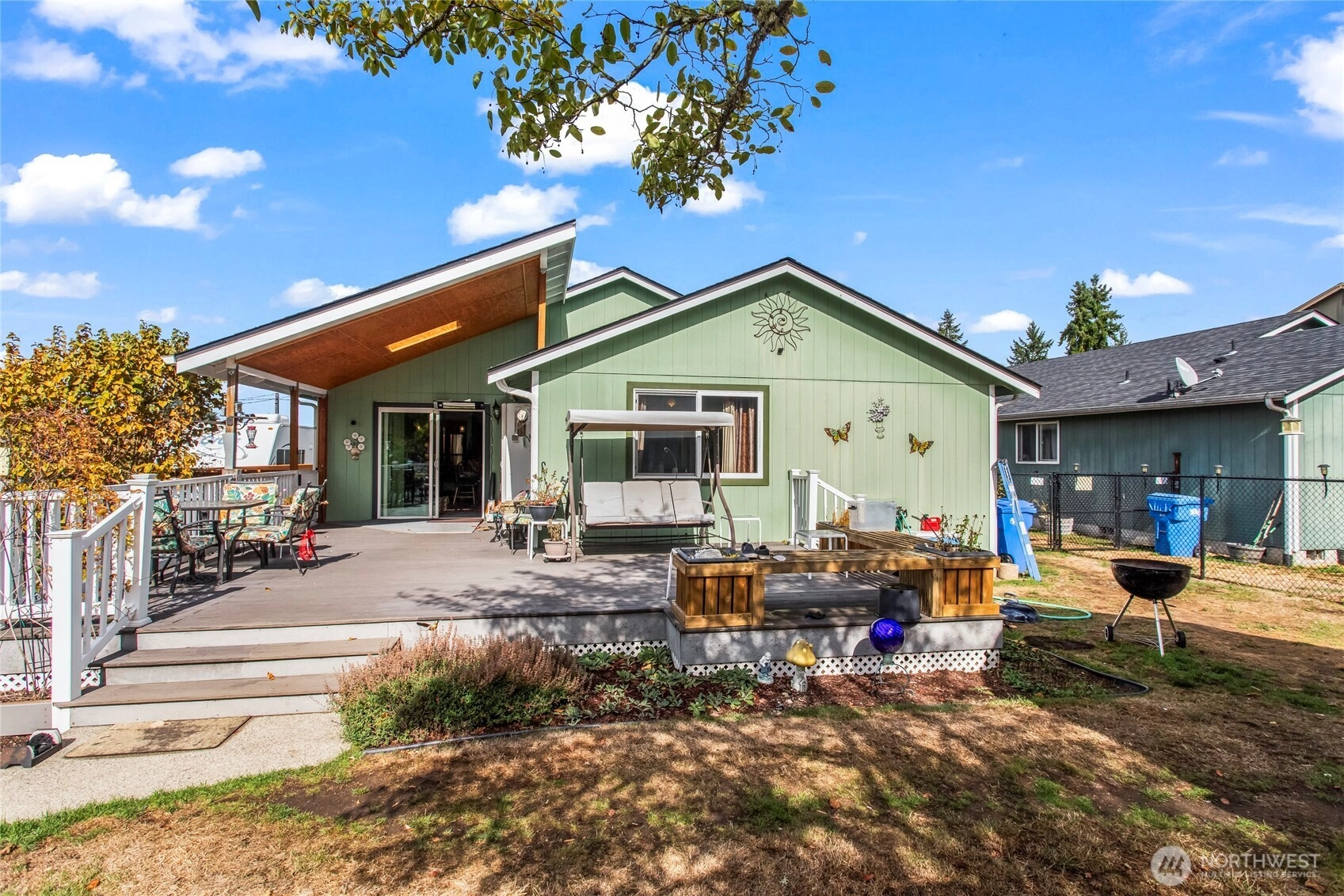 One-level living without the overwhelming price tag! This well-maintained, one-owner home offers 3 bedrooms and 2 baths in a convenient location near parks, shopping, dining, bus lines, and PLU. The open-concept kitchen and great room create a warm, inviting space perfect for gatherings or quiet evenings in. Enjoy a fully fenced backyard with a large partially covered deck, plus a sturdy utility shed for extra storage. The spacious driveway and 2-car garage complete the package—Picture yourself in an uncluttered version of this home, and the years of enjoyment. Welcome home!