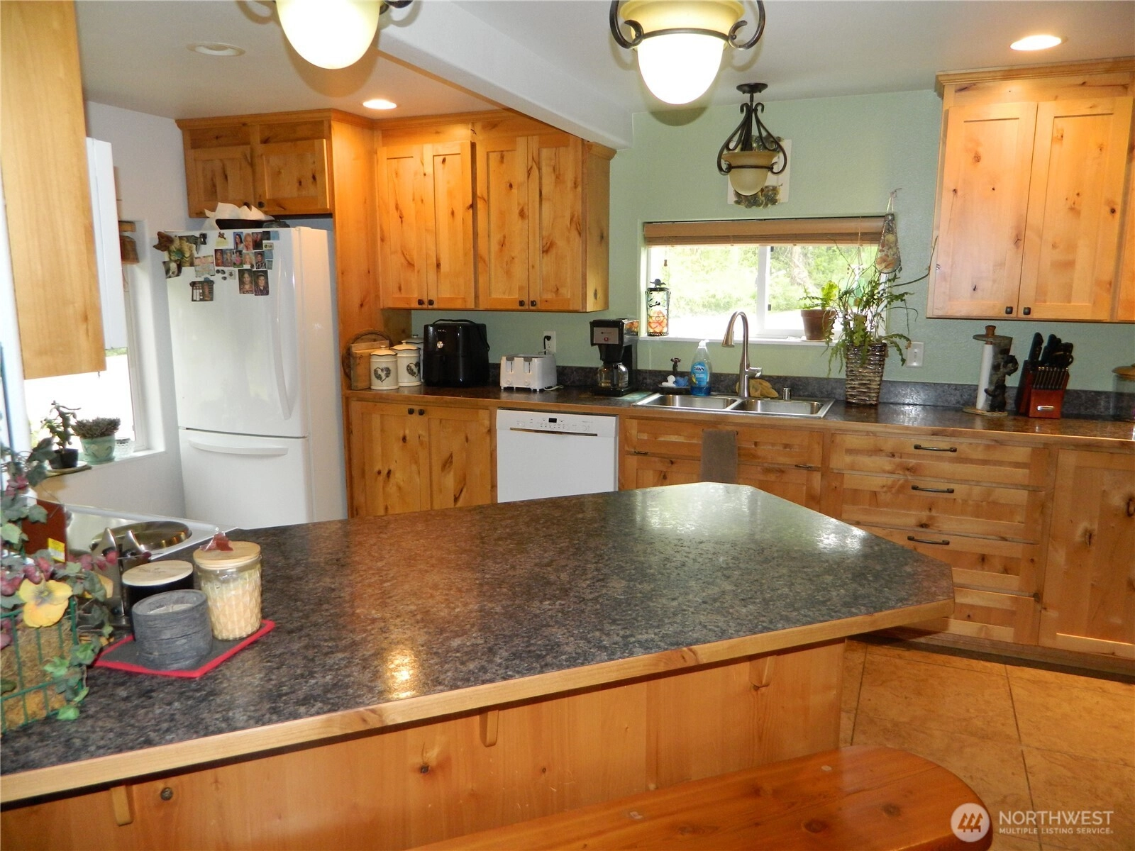 3 bdrm 1 3/4 bath Home in Tonasket on Bonaparte Creek! Great location with a large approx 40x70 shop with poured concrete floor 16 ft walls. Unfinsihed basement with storage space and mechanical room. Close to shopping, medical facilities and restaurants. Back yard cyclone fenced, raised flower beds, fenced garden space, attractivley landscaped, large front deck and attached carport.