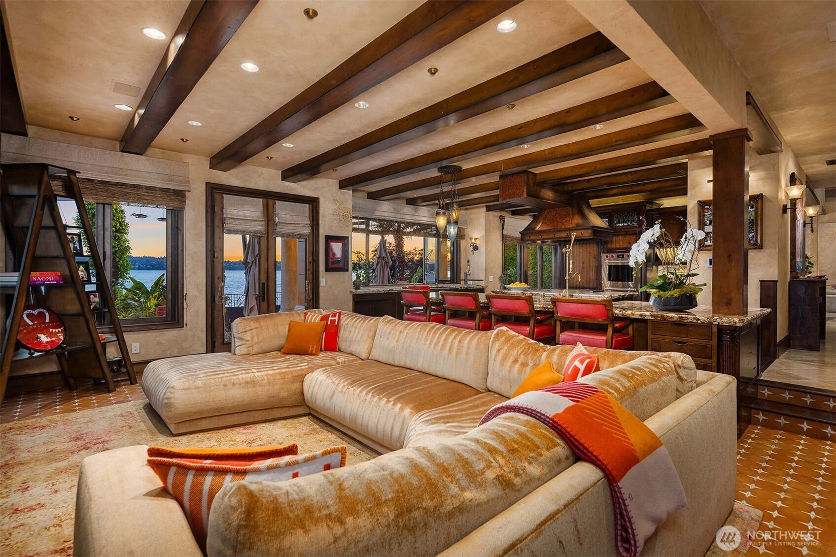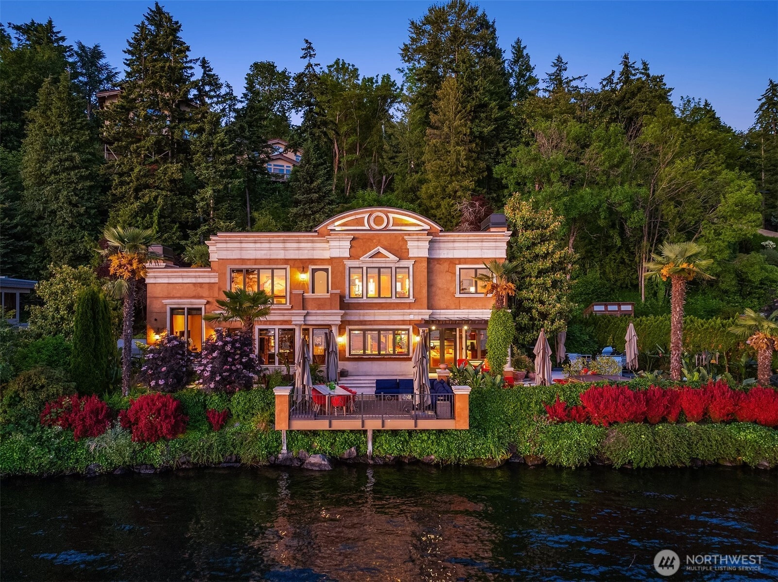 Custom built villa on the shores of the NW's Lake Como. Sited on 100' of coveted west facing Lake Washington frontage the water’s edge is right outside your door. Designed for indoor/outdoor entertaining with a one-of-a-kind grandfathered terrace perched over the water that could not be built today.French doors and folding windows link al fresco energy to the warmth inside. Studs up remodel in 2016 spared no expense and added separate flexible living quarters.Notable details include generous use of stone throughout, floors from a 16th century Italian monastery, an EPI wood dock w/covered slip, Elan Smart Home. No worries about power outages; this generator runs the entire house. The ultimate location to see the beloved Blue Angels. Dreamy.