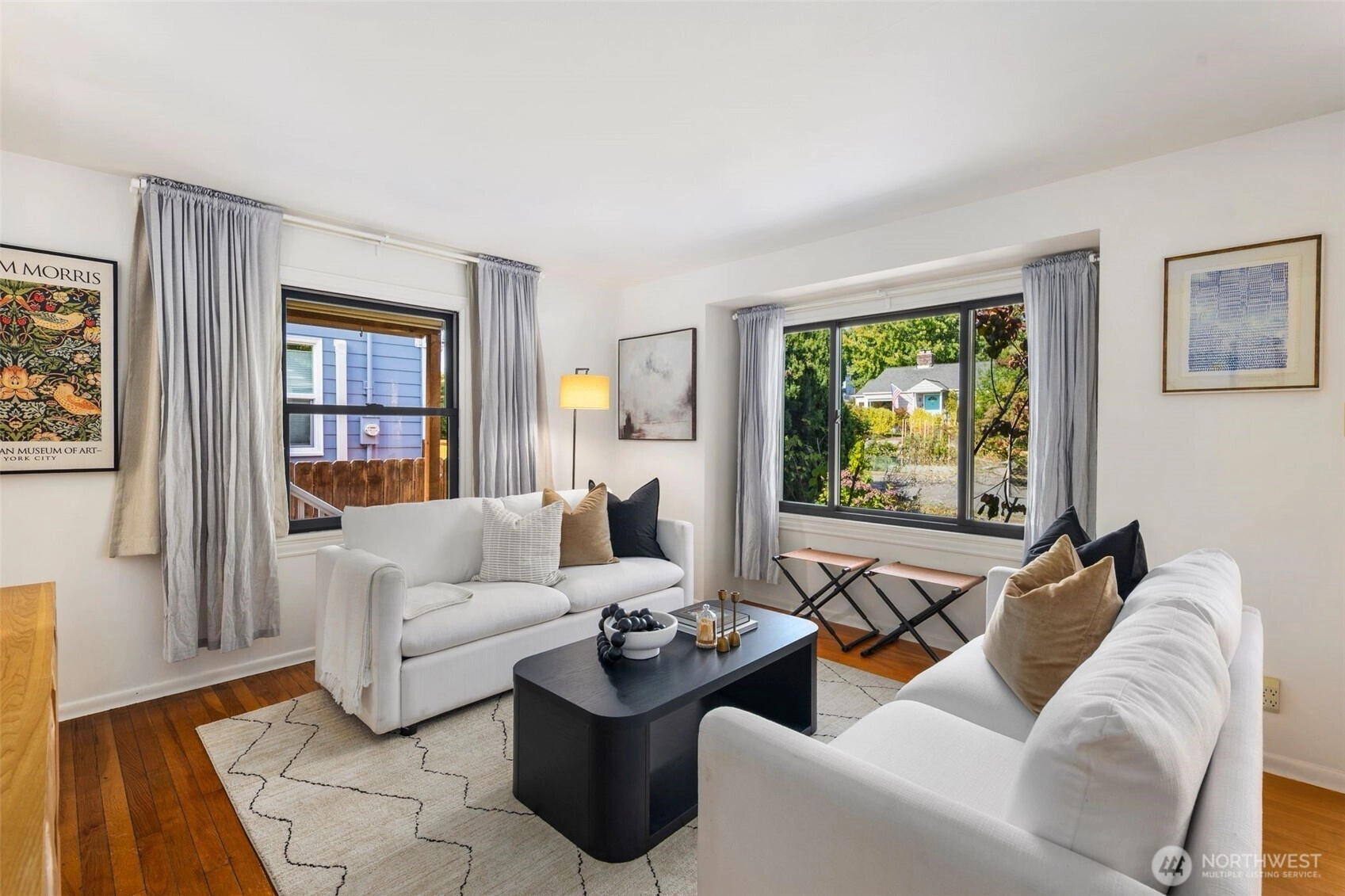 Welcome to this delightful home tucked away on a quiet, tree-lined corner lot in one of West Seattle’s most loved neighborhoods. Full of warmth and character, this home offers 3 bedrooms, 1.75 baths, a finished attic ideal for a playroom or office, and a versatile basement with space for guests or a potential one-bedroom ADU. The bright living room features large windows, original hardwoods, and cozy charm throughout. Enjoy a private backyard—perfect for entertaining, gardening, or playtime. Meticulously maintained by the same owners for over 40 years, it’s ready for your opportunity to add modern touches. Includes attached garage and convenient access to parks, schools, shops, and the West Seattle Bridge for an easy commute.