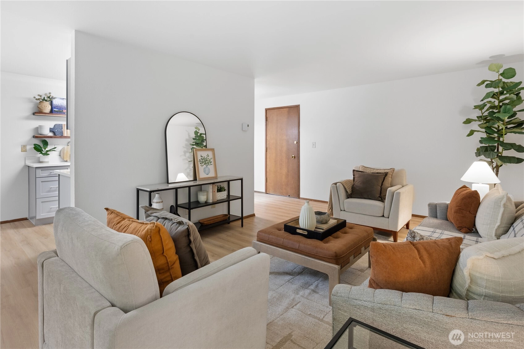 Beautifully updated one-bedroom condo in desirable Seventy-01 community. Fresh updates include a stylish kitchen with new cabinets and quartz countertops, updated bath with modern fixtures and tile surround, new flooring, paint, and lighting throughout. Enjoy the private setting with amenities—exercise room, pool, sauna, clubhouse, and bike storage. Recent property upgrades (2018) include new siding, windows, doors, and landscaping. Pet-friendly with no rental cap and on-site HOA management. Steps from the Burke-Gilman Trail, Magnuson Park, and neighborhood walking paths.