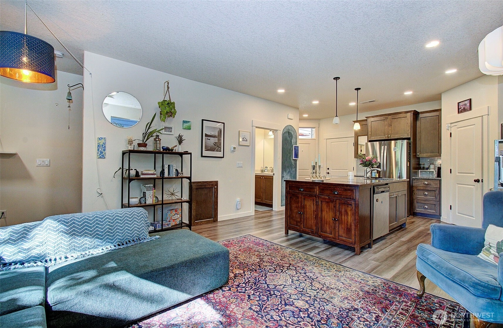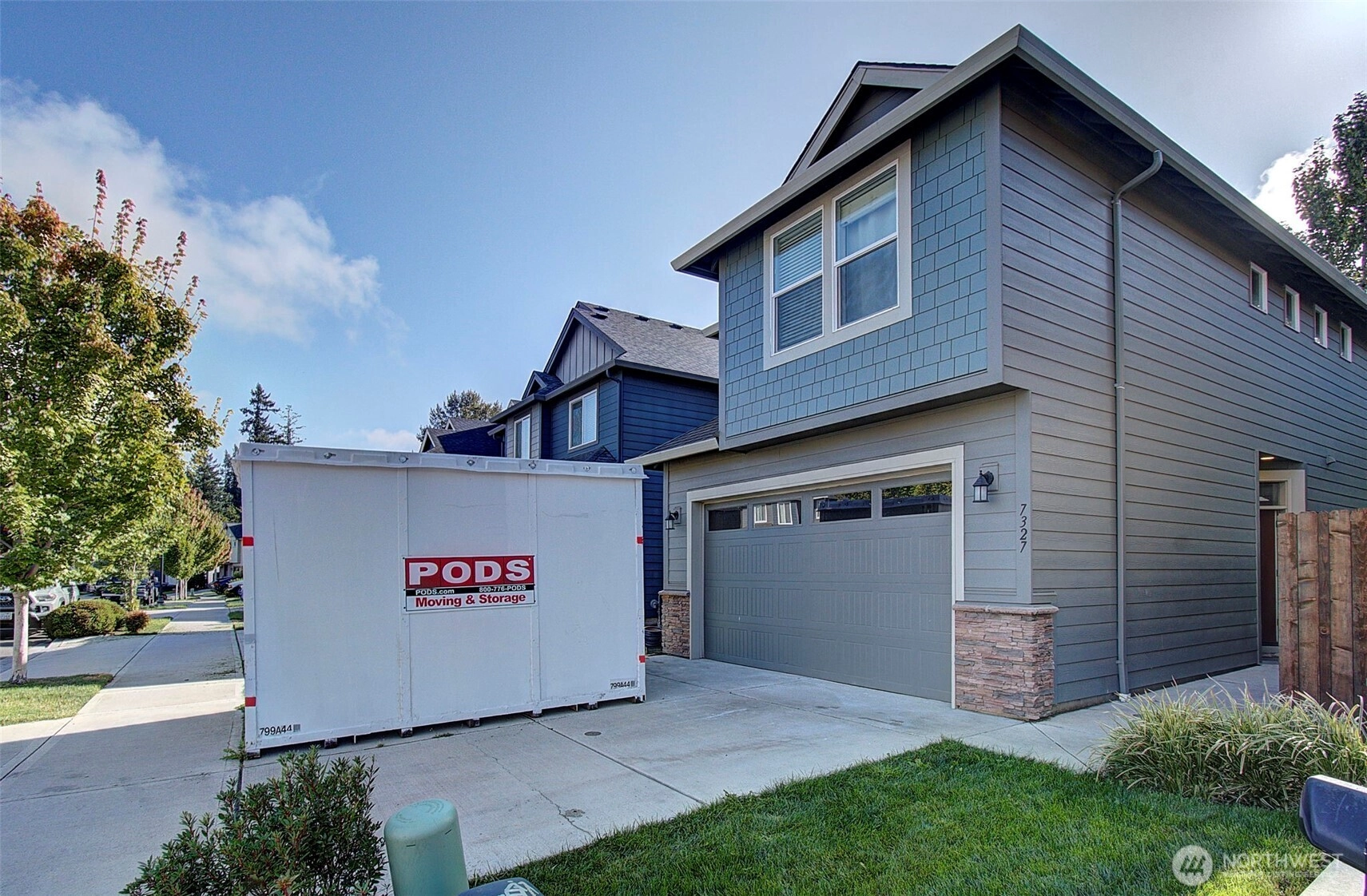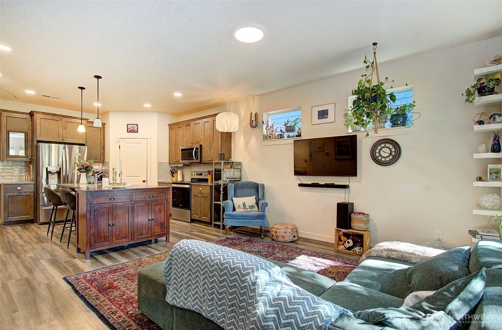 Tucked in Ridgefield’s Pioneer East, this 2020-built 3BD/2.5BA home backs to rare greenspace and pond—no rear neighbor, just trees. Main level offers open kitchen with granite, island, stainless appliances, and durable LVP flooring. Updates include new carpet throughout upstairs/stairs and new bath countertop & sink (Sept ’25). Primary suite has walk-in shower and closet; all bedrooms feature walk-ins. Covered deck overlooks fenced, sprinklered yard. Community trails, play park, and sport court; quick I-5 access for easy Vancouver/Portland commute. Near shops/dining with growing amenities. No HOA rental restrictions (per CC&Rs). Buyer to verify info.