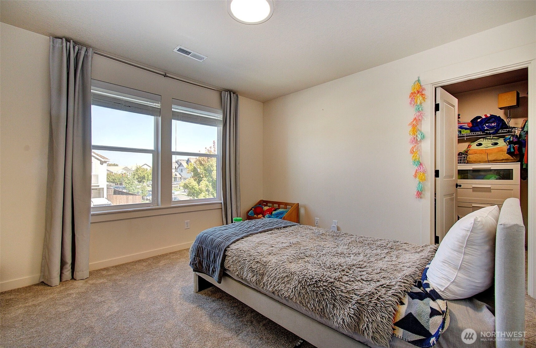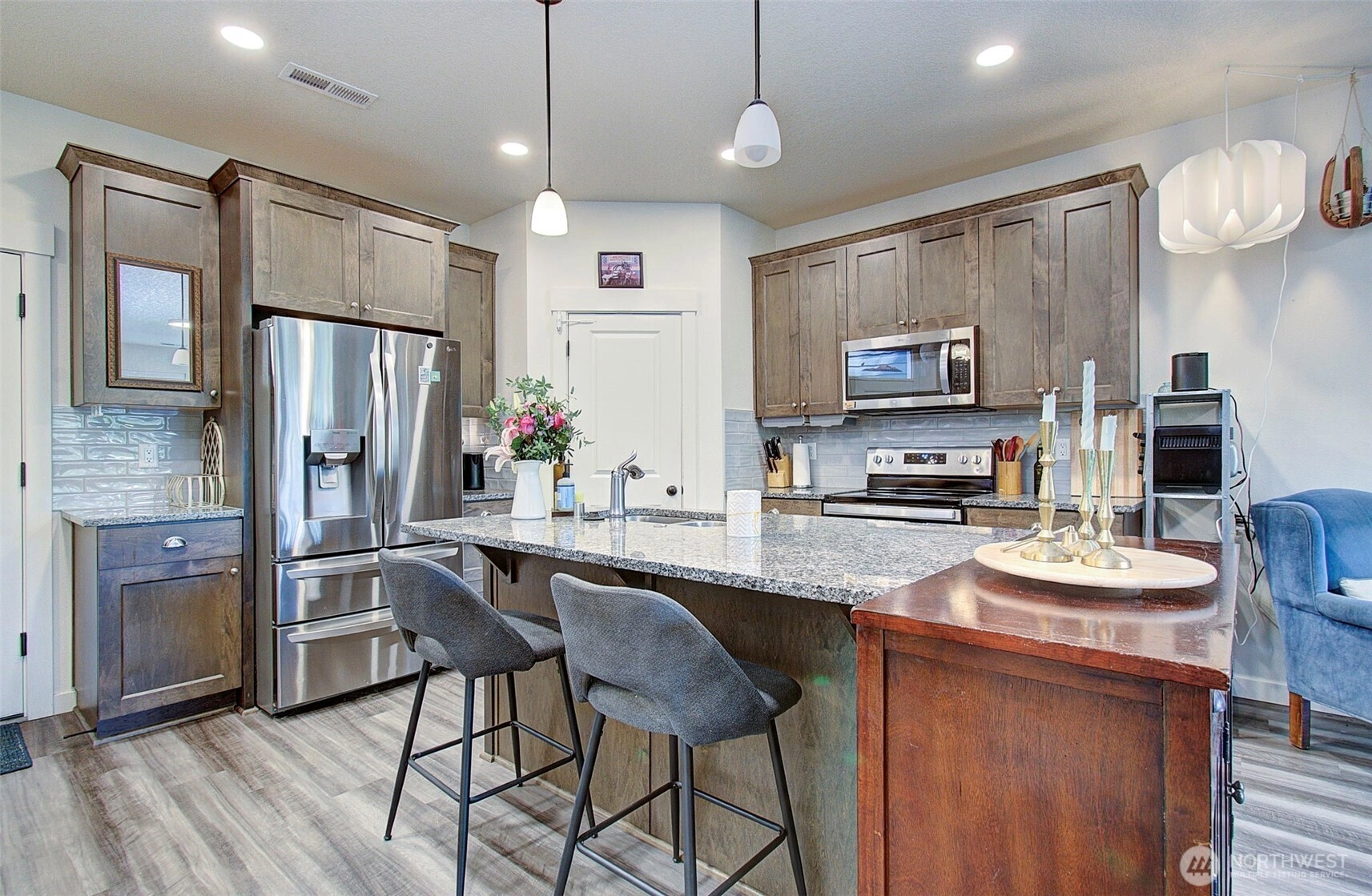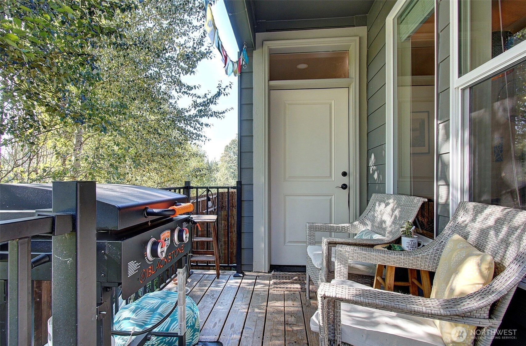 Tucked in Ridgefield’s Pioneer East, this 2020-built 3BD/2.5BA home backs to rare greenspace and pond—no rear neighbor, just trees. Main level offers open kitchen with granite, island, stainless appliances, and durable LVP flooring. Updates include new carpet throughout upstairs/stairs and new bath countertop & sink (Sept ’25). Primary suite has walk-in shower and closet; all bedrooms feature walk-ins. Covered deck overlooks fenced, sprinklered yard. Community trails, play park, and sport court; quick I-5 access for easy Vancouver/Portland commute. Near shops/dining with growing amenities. No HOA rental restrictions (per CC&Rs). Buyer to verify info.