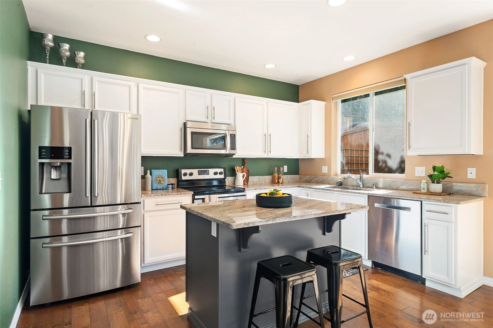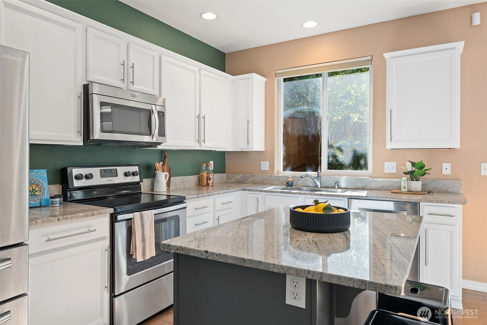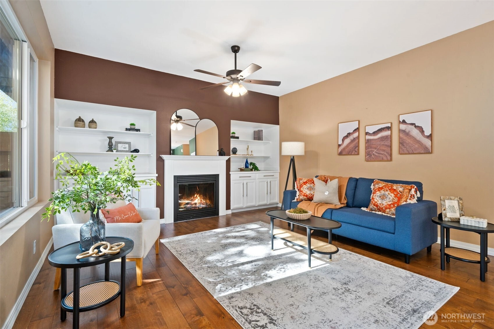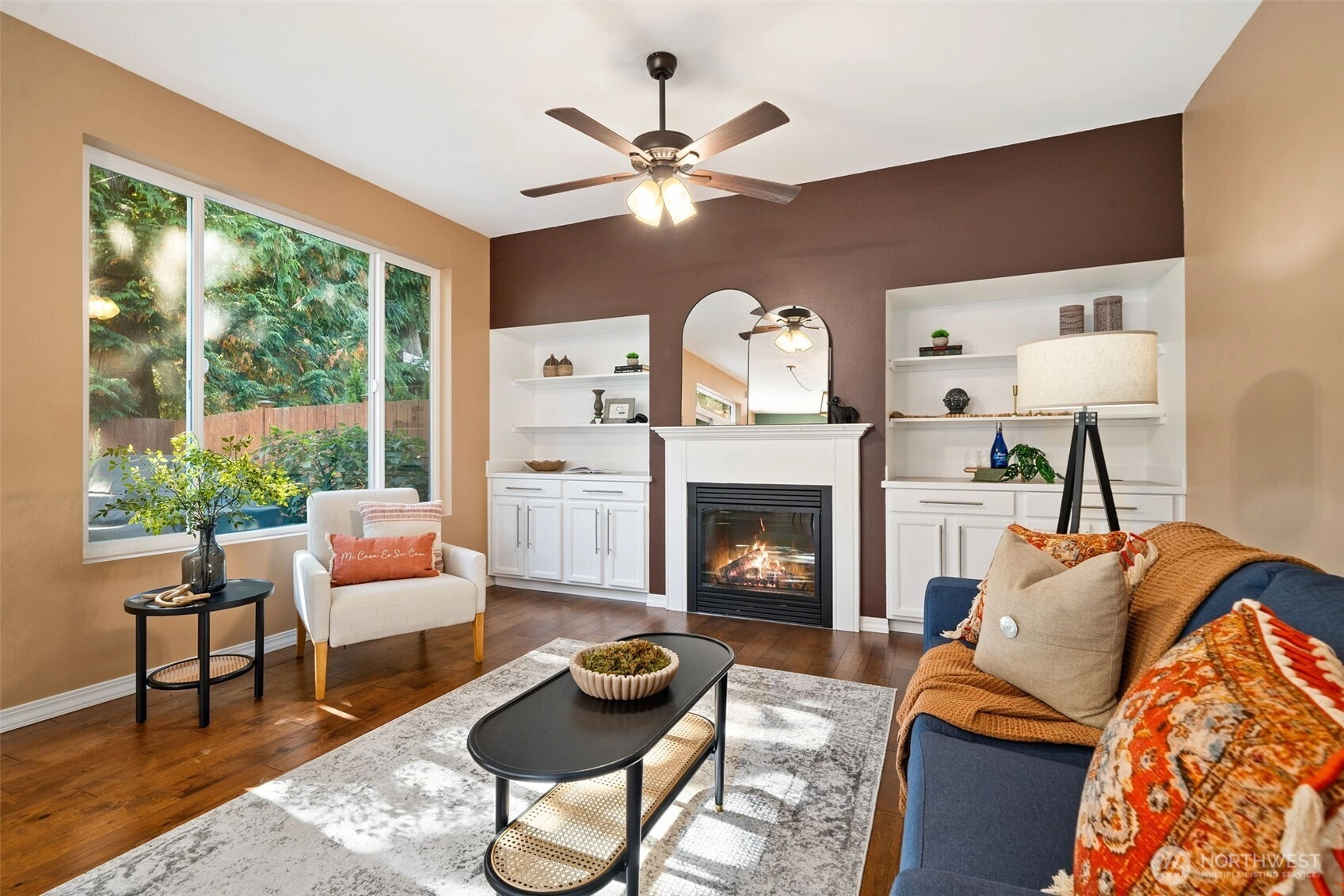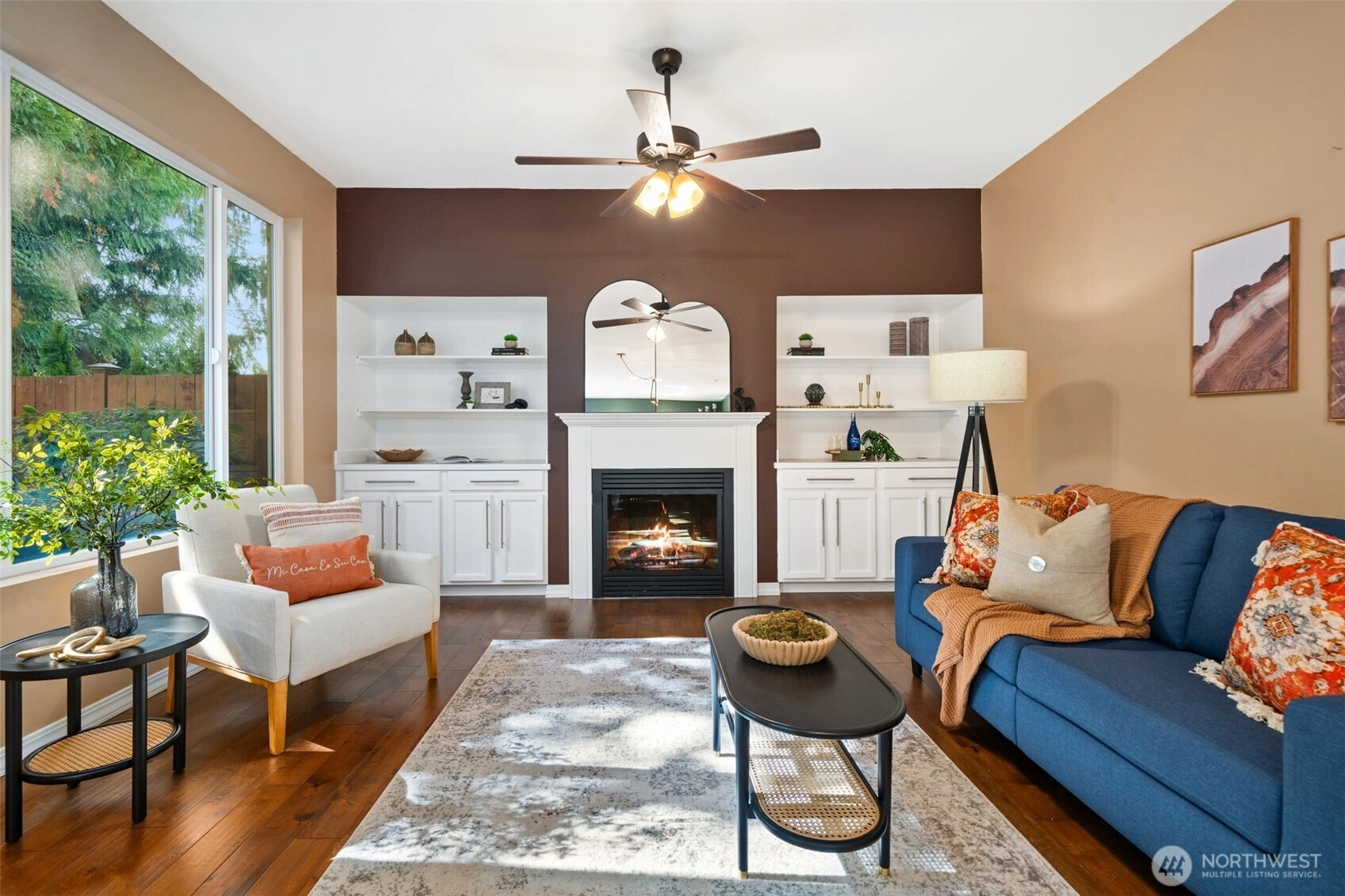 Welcome Home! Ideal central location in Poulsbo, close to shopping schools, restaurants and downtown Poulsbo. Here's the move in ready, affordable home that you've been waiting for! Welcoming front 2 story entry opens to a cozy sitting area, and down the hall to the great room. The island kitchen features white cabinetry, stainless appliances with plenty of counterspace and storage. Dining area between kitchen and living room opens to the private fenced back yard. You'll love hanging out the in living room with large picture window , gas fireplace and built ins for your media or art. Upstairs you'll find a flex space that would be a great office play area. Huge primary ensuite with soaking tub, shower & walk in closet. Come see it today!