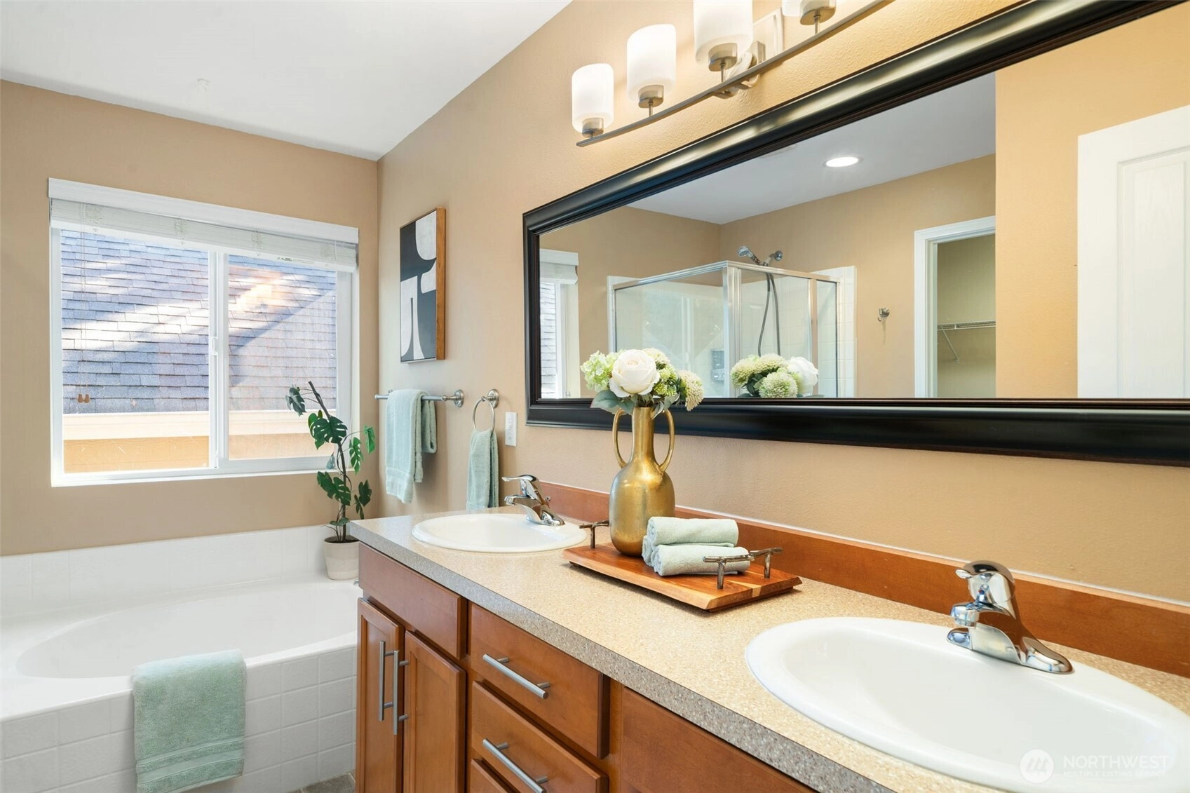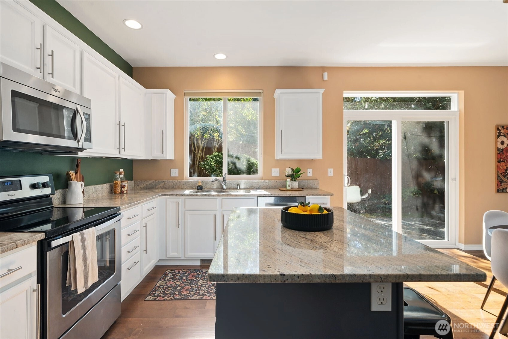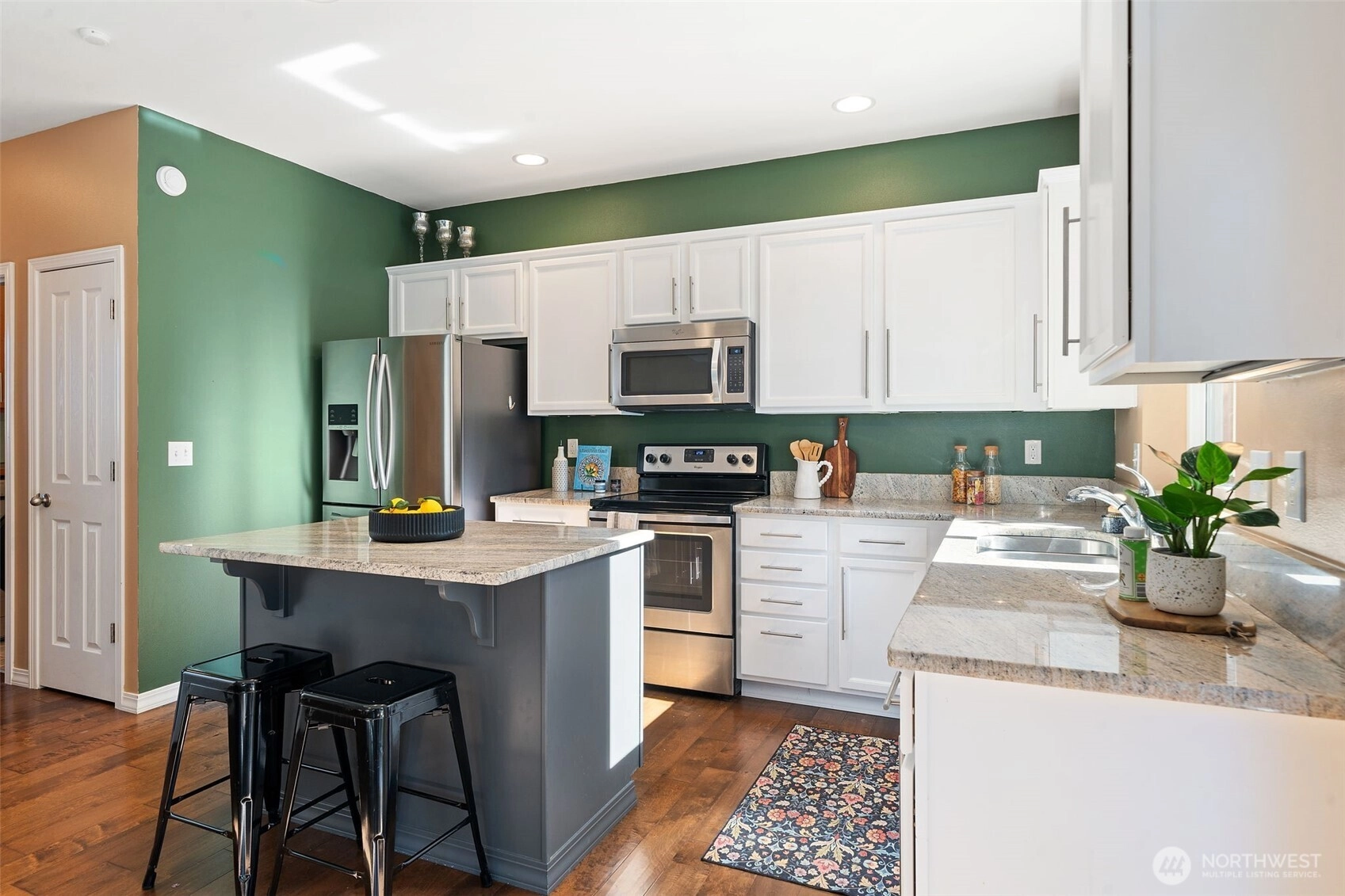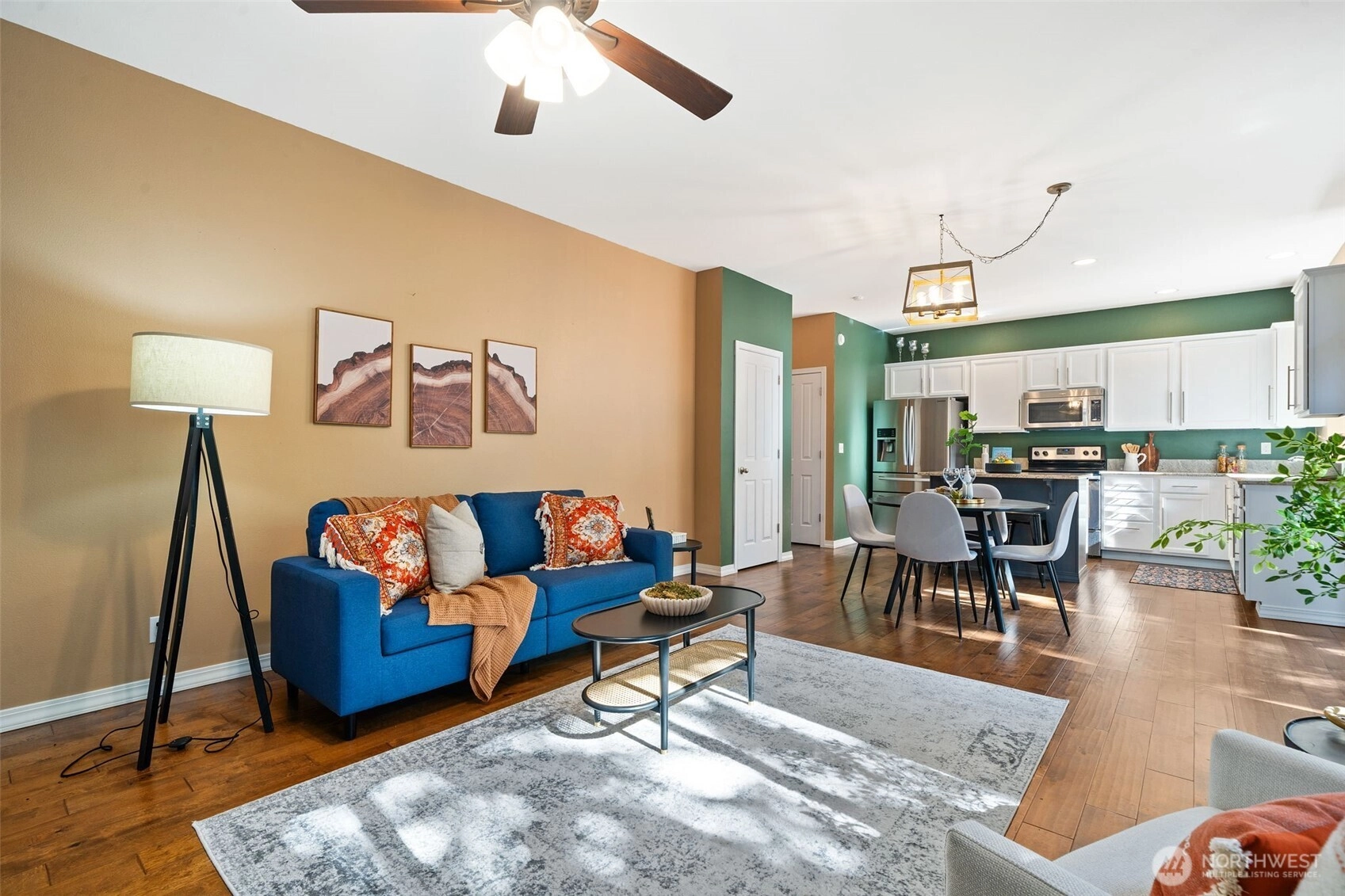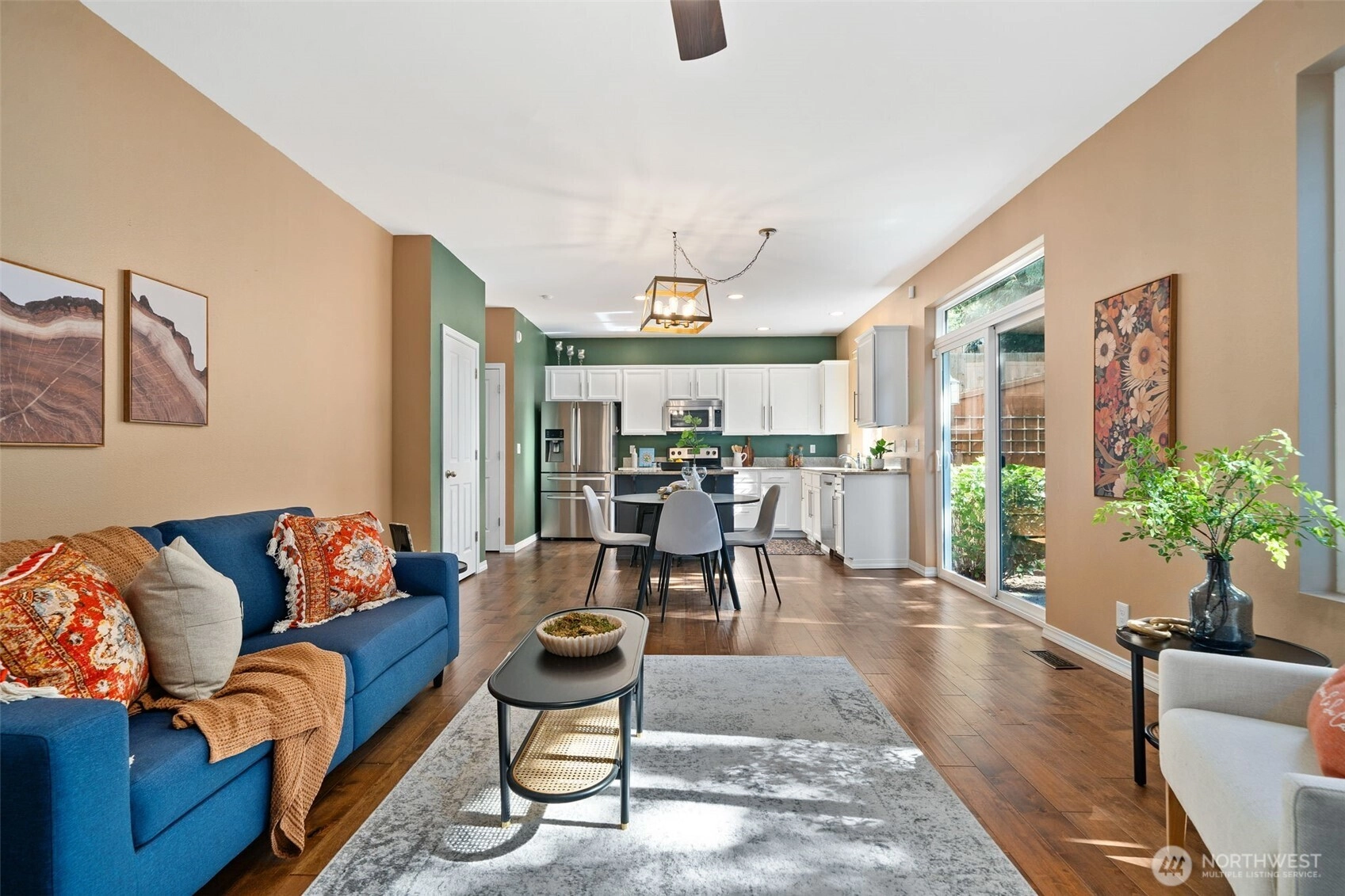 Welcome Home! Ideal central location in Poulsbo, close to shopping schools, restaurants and downtown Poulsbo. Here's the move in ready, affordable home that you've been waiting for! Welcoming front 2 story entry opens to a cozy sitting area, and down the hall to the great room. The island kitchen features white cabinetry, stainless appliances with plenty of counterspace and storage. Dining area between kitchen and living room opens to the private fenced back yard. You'll love hanging out the in living room with large picture window , gas fireplace and built ins for your media or art. Upstairs you'll find a flex space that would be a great office play area. Huge primary ensuite with soaking tub, shower & walk in closet. Come see it today!