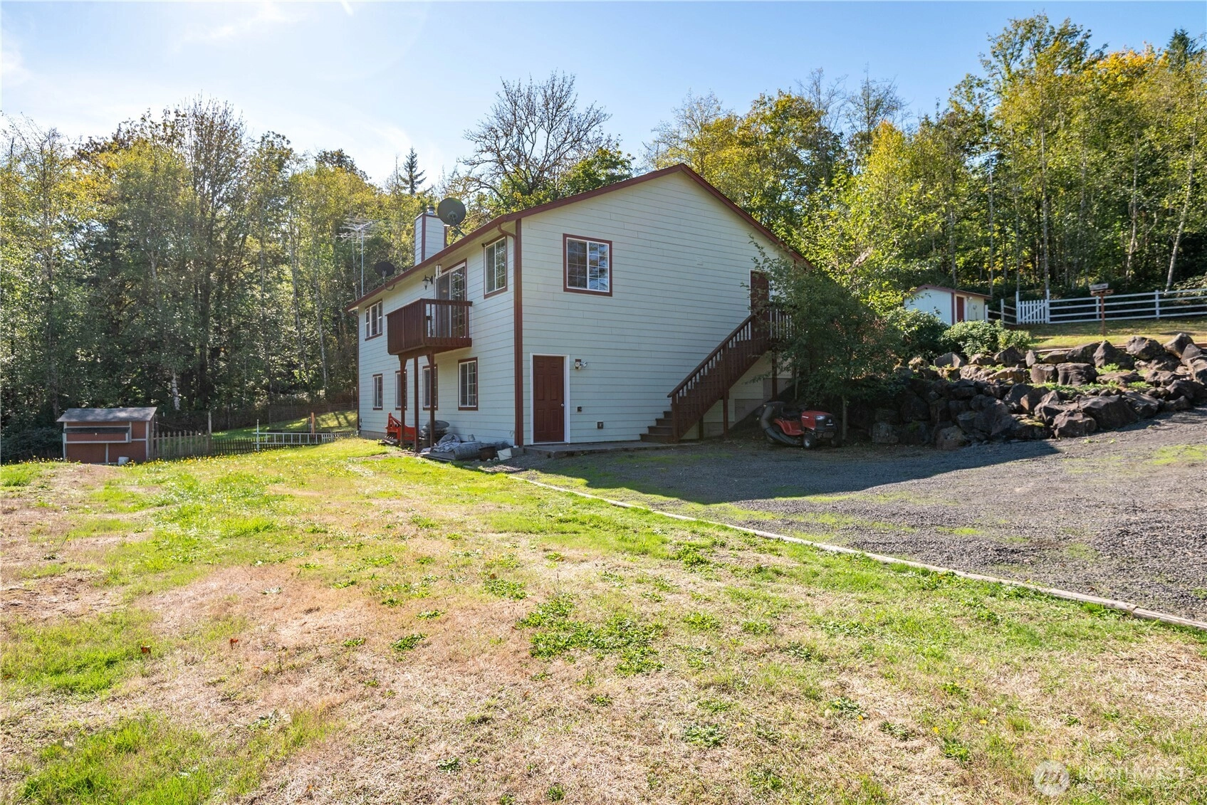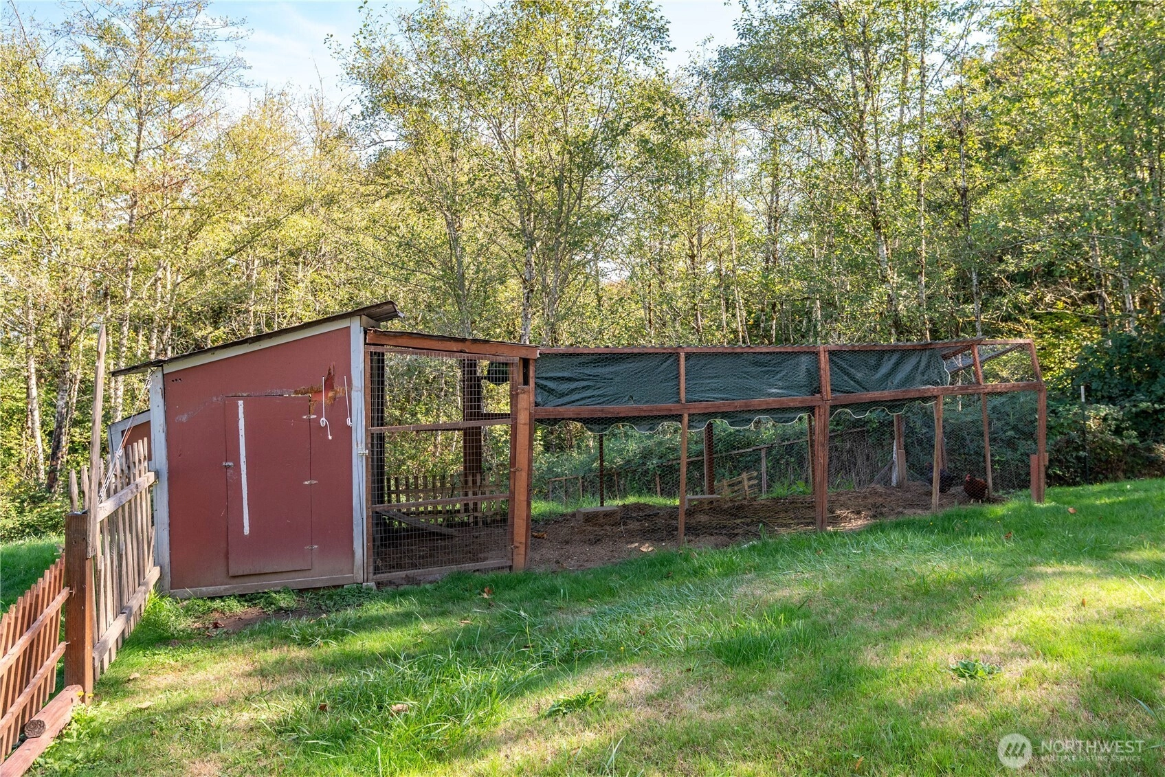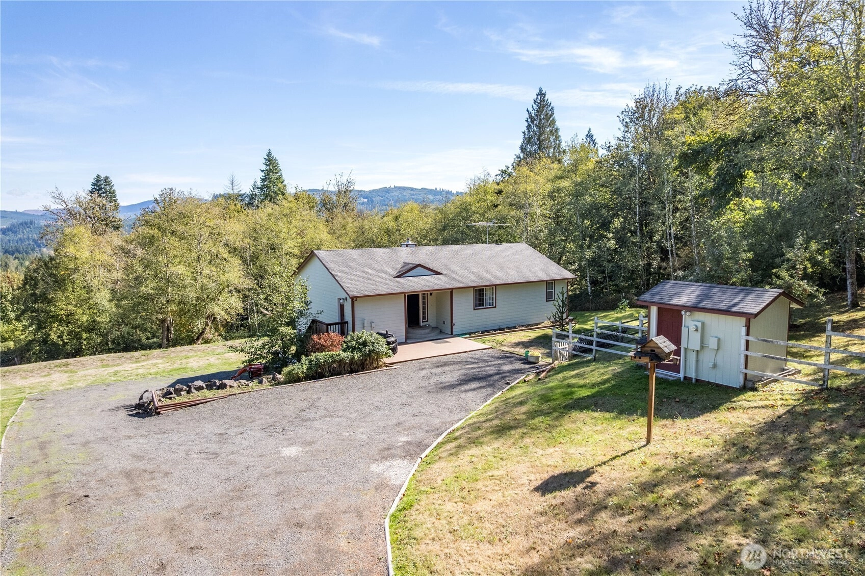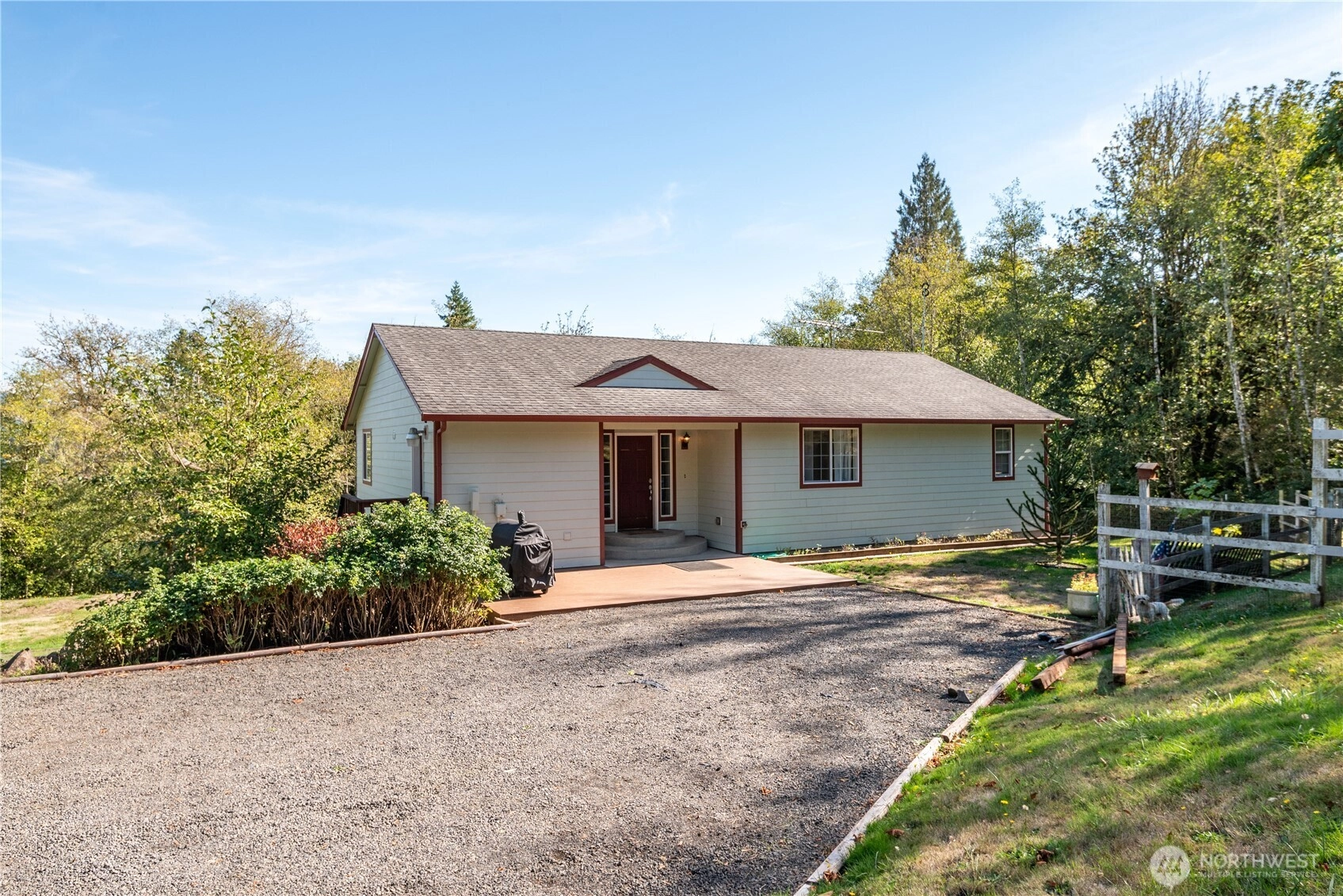Enjoy peaceful country living with this well-maintained home situated on 5.67 acres. The spacious great room offers an open layout perfect for relaxing or entertaining, with direct access to a small patio and newly replaced deck. The primary suite features a walk-in closet and a jetted tub with all new components. The second bedroom is ideal for guests or office use.Downstairs, a full 1,440 sq ft high-ceiling basement offers endless potential—storage, workshop, or future living space. The home is set up for a heat pump with hookups ready for easy installation. Outside, enjoy garden space, fruit trees, and a chicken coop.