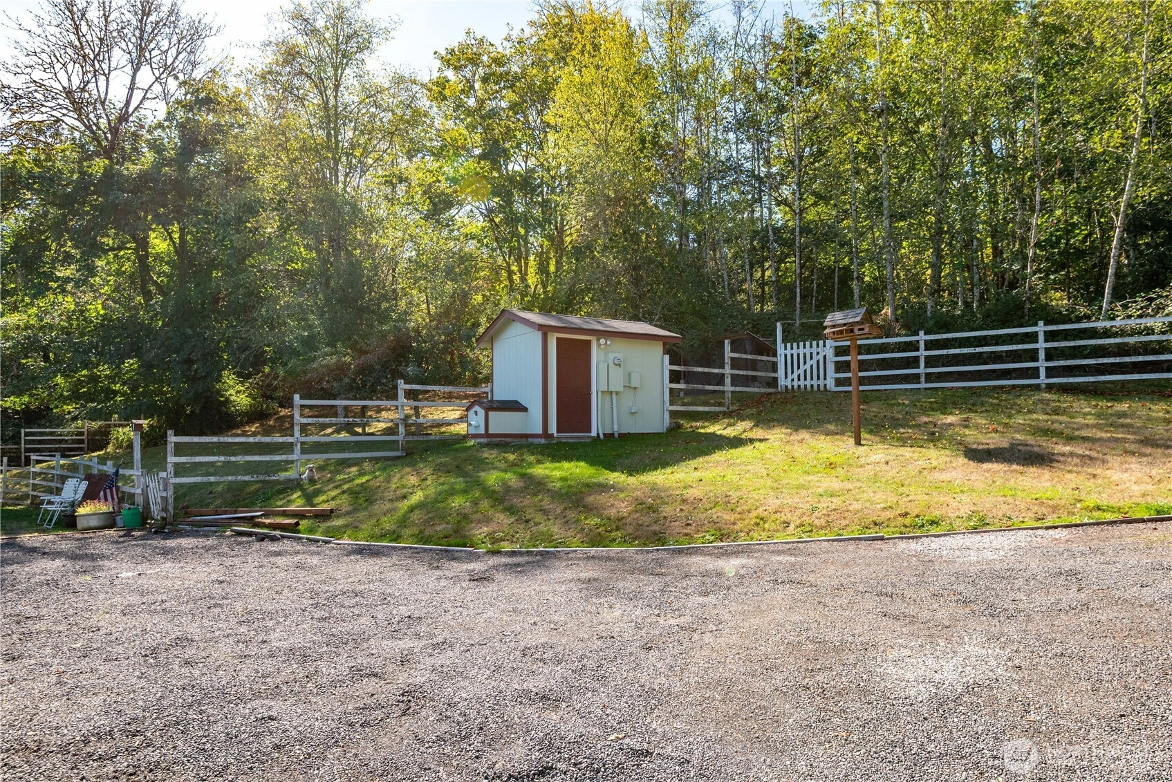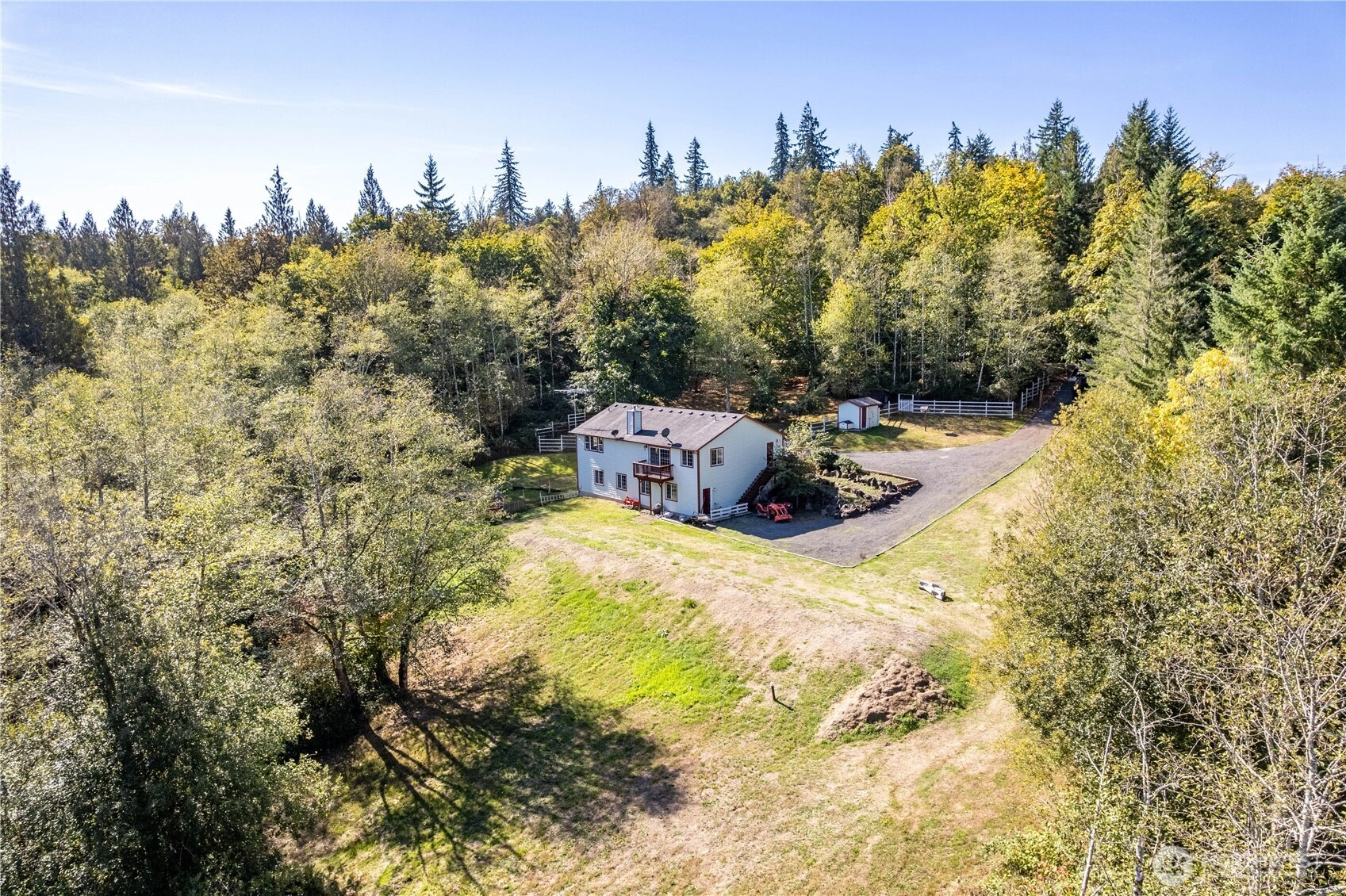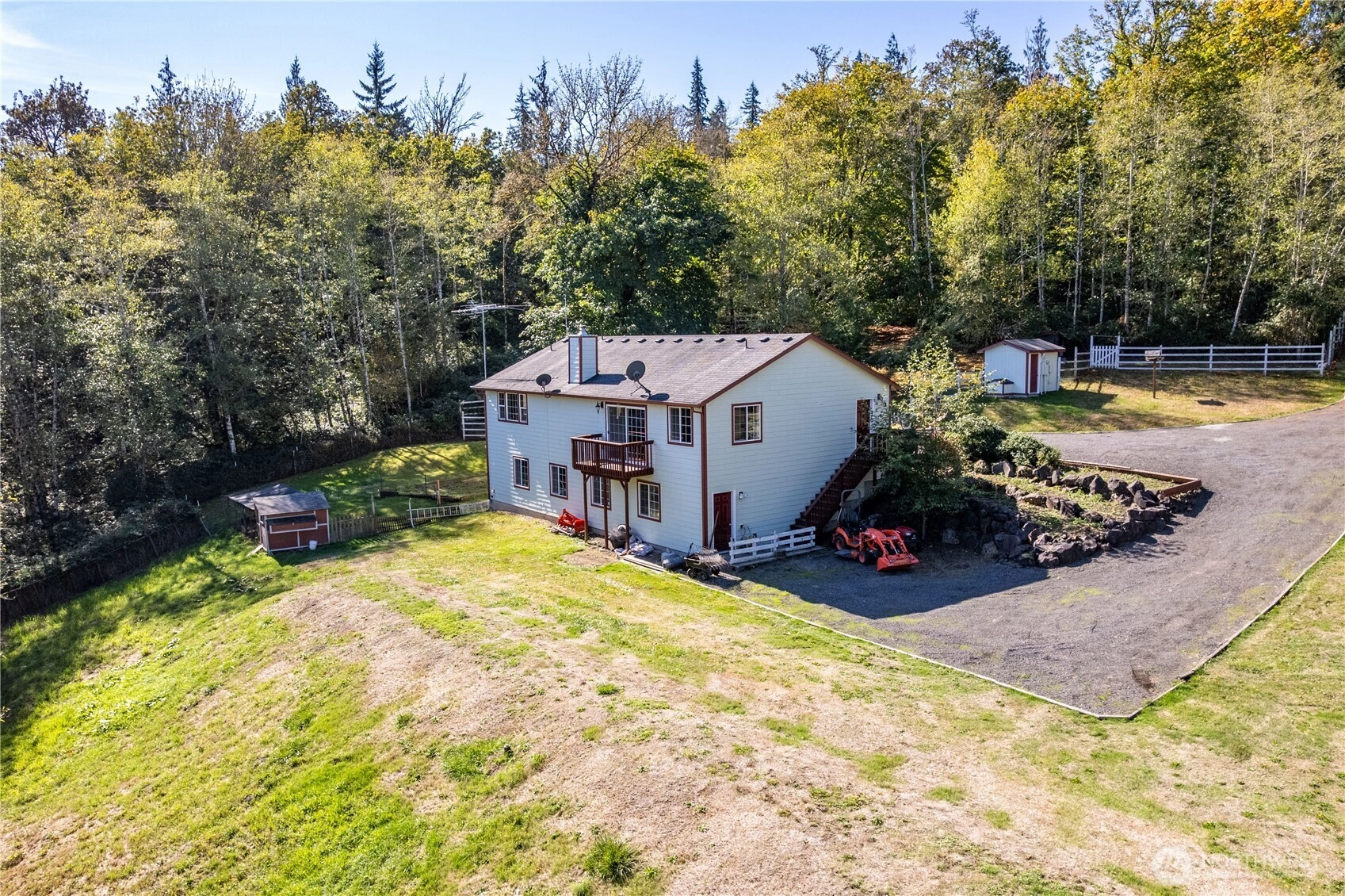 Enjoy peaceful country living with this well-maintained home situated on 5.67 acres. The spacious great room offers an open layout perfect for relaxing or entertaining, with direct access to a small patio and newly replaced deck. The primary suite features a walk-in closet and a jetted tub with all new components. The second bedroom is ideal for guests or office use.Downstairs, a full 1,440 sq ft high-ceiling basement offers endless potential—storage, workshop, or future living space. The home is set up for a heat pump with hookups ready for easy installation. Outside, enjoy garden space, fruit trees, and a chicken coop.